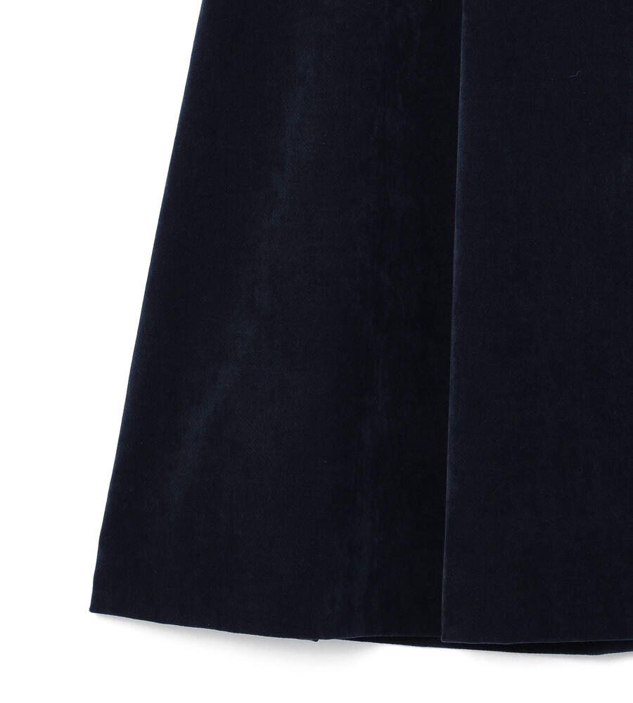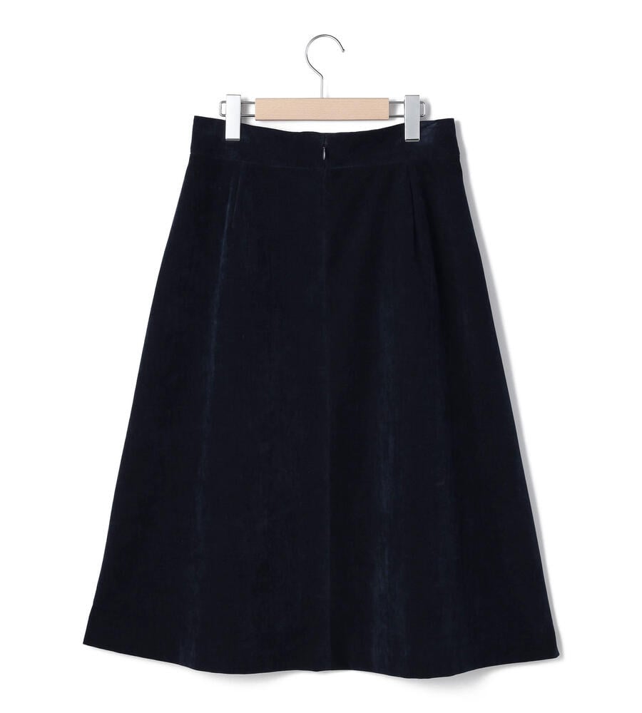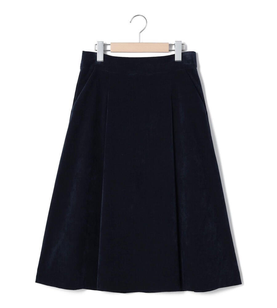 こっくりとした、深みのある風合いを持つ別珍素材のスカートです。裾に掛けて大きく広がる綺麗な台形シルエット。実際に着用することで、クラシカルな装いを楽しめます。膝が隠れる程度の着丈が、淑女の気品たっぷり。足元にブーツなどを合わせると、より季節感のある着こなしが完成します。