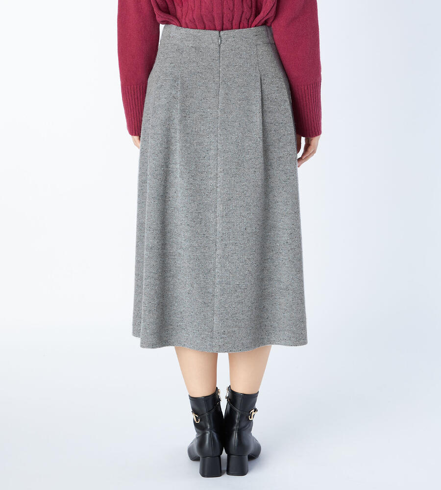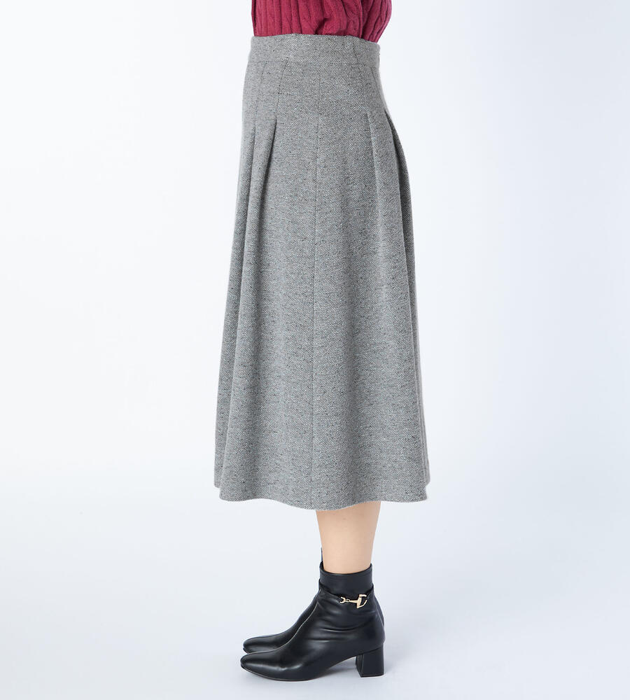 ネップの効いた暖かみのある表情が魅力のスカート。タックが施され、程よいフレアシルエットに仕上がっています。着丈は長めで上品な印象です。合わせるトップスやシューズによってキレイ目コーディネートにもデイリーカジュアルにも重宝。同素材のベストと合わせて統一感を出すのもおすすめのアレンジです。