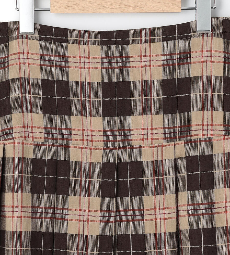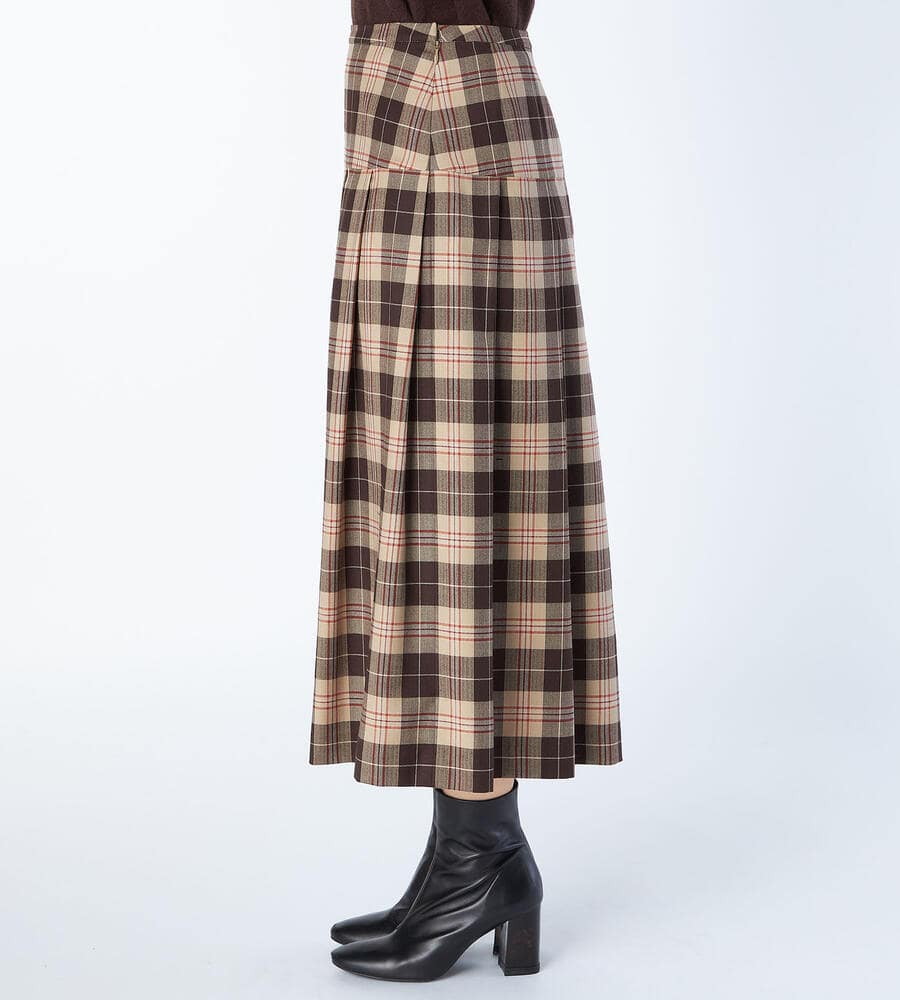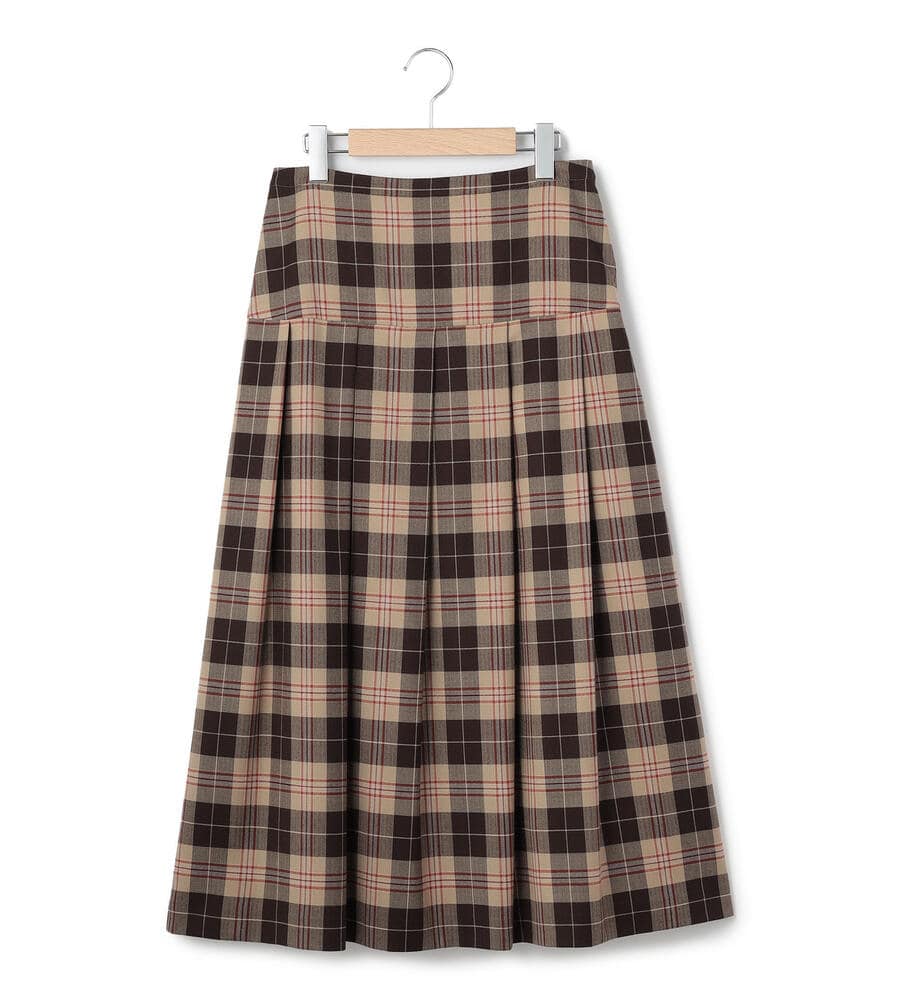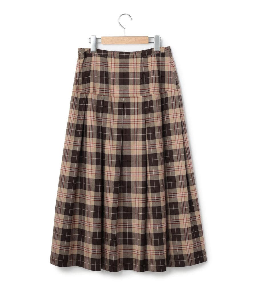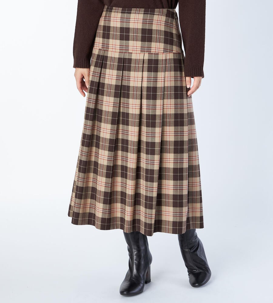 シーズンムード漂うシックなカラー使いのタータンがコーディネートのアクセントになるプリーツスカート。サイドファスナー仕様、ローウエストで切り替えたデザインがすっきりとした印象に。シューズと合わせやすいエレガントな丈感にこだわり仕上げています。