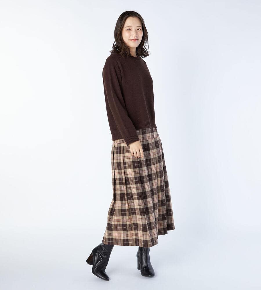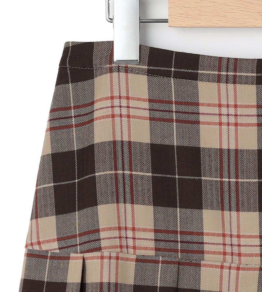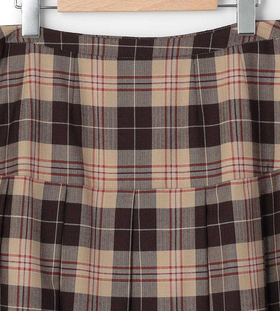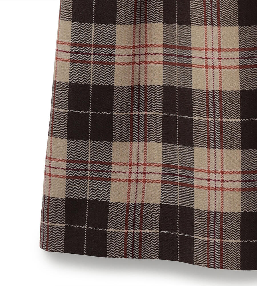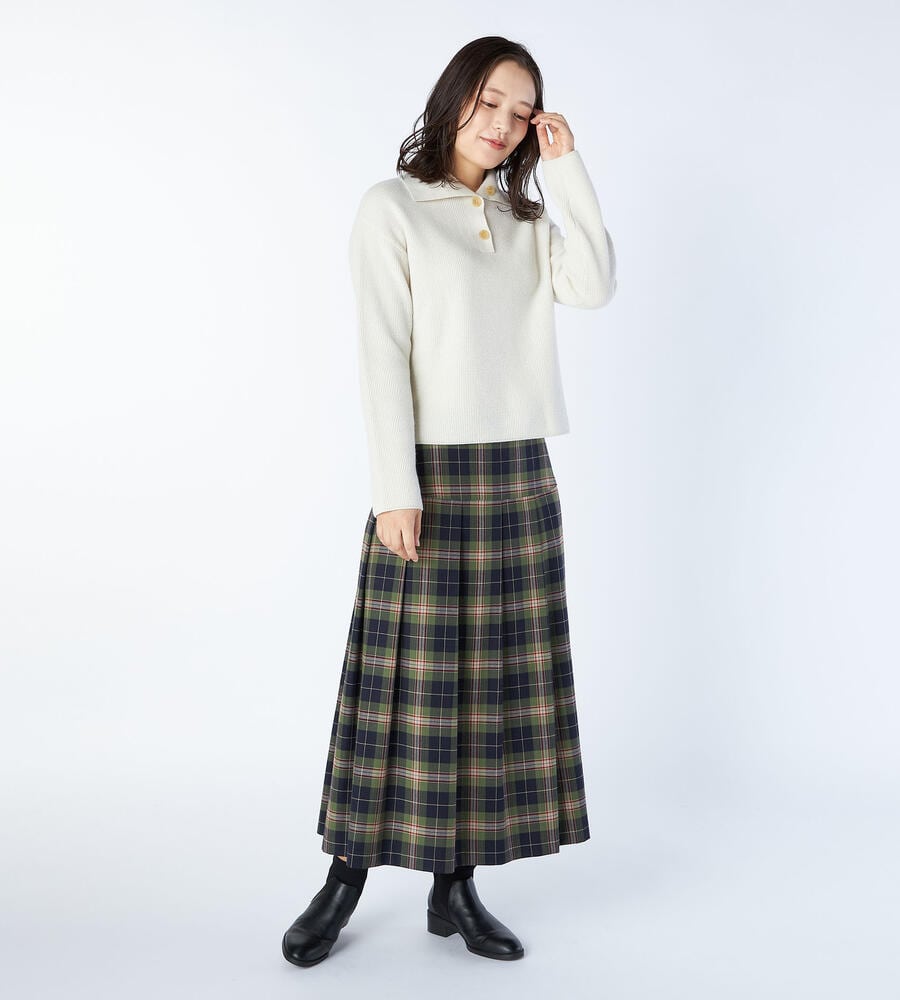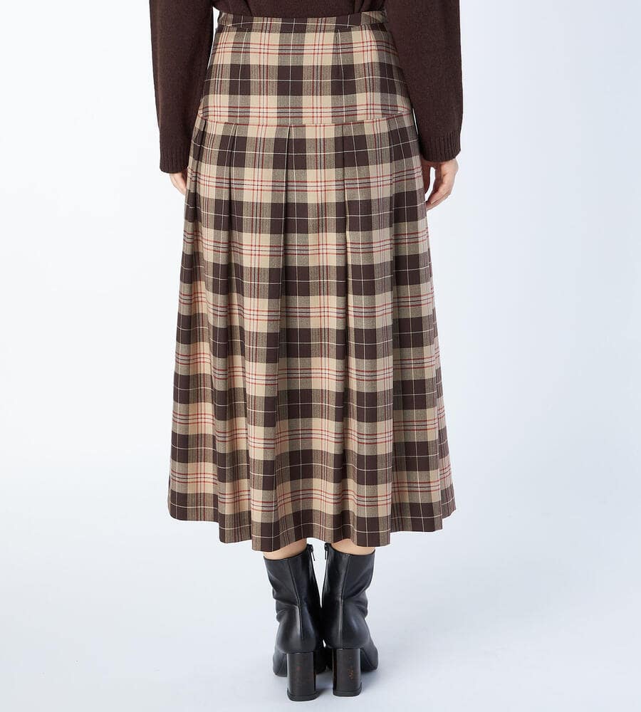 シーズンムード漂うシックなカラー使いのタータンがコーディネートのアクセントになるプリーツスカート。サイドファスナー仕様、ローウエストで切り替えたデザインがすっきりとした印象に。シューズと合わせやすいエレガントな丈感にこだわり仕上げています。