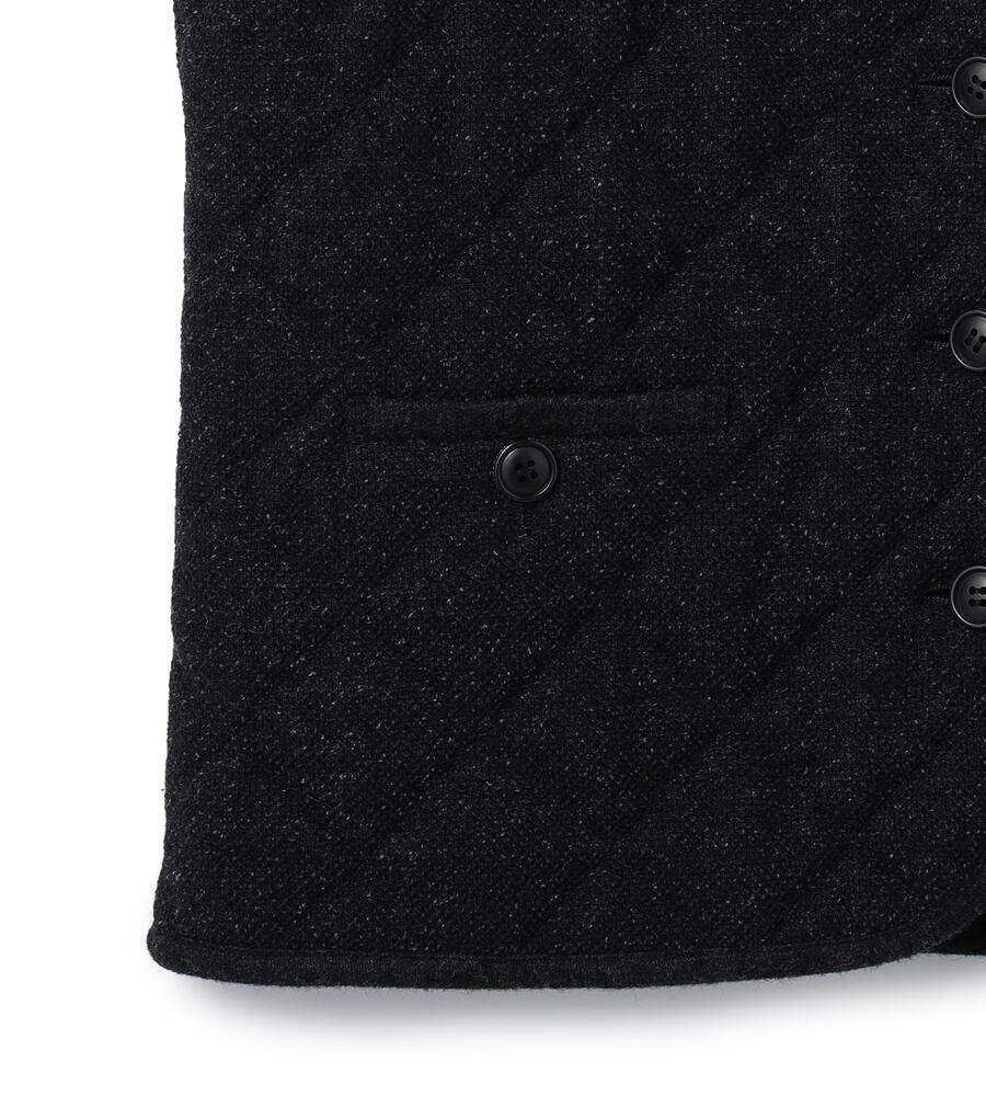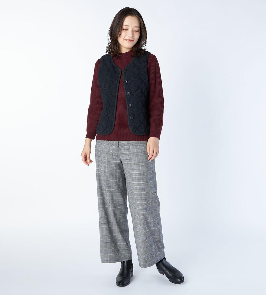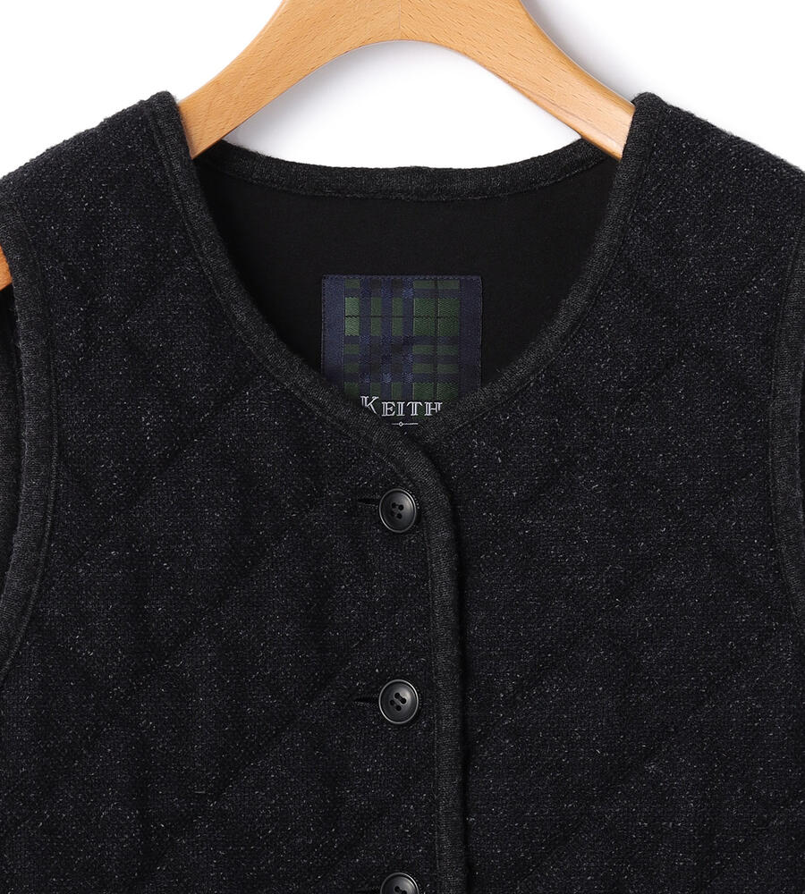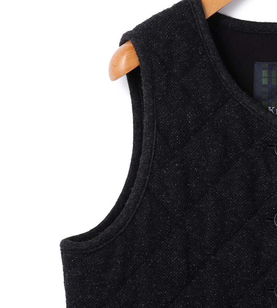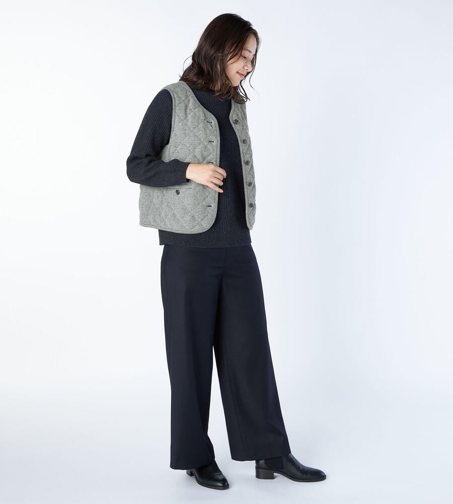 ネップ感のある表情豊かな生地を使用したベスト。程よく中わたが入り、見た目も着心地も暖かな1枚です。異素材のパイピングがアクセントとしても効いています。シンプルなシャツやタートルニットに重ねるのもおすすめのコーディネート。同素材のスカートと合わせるのも、統一感が出て素敵なアレンジです。