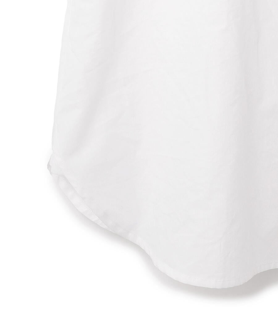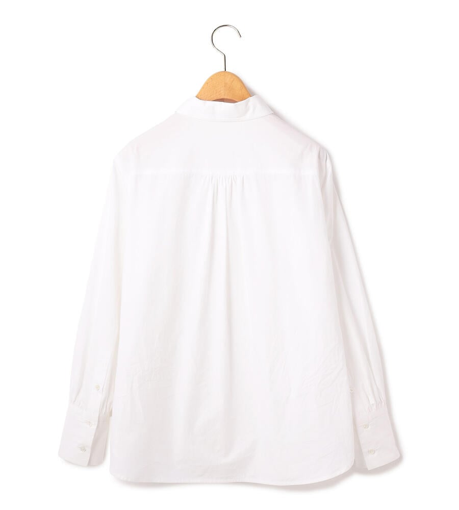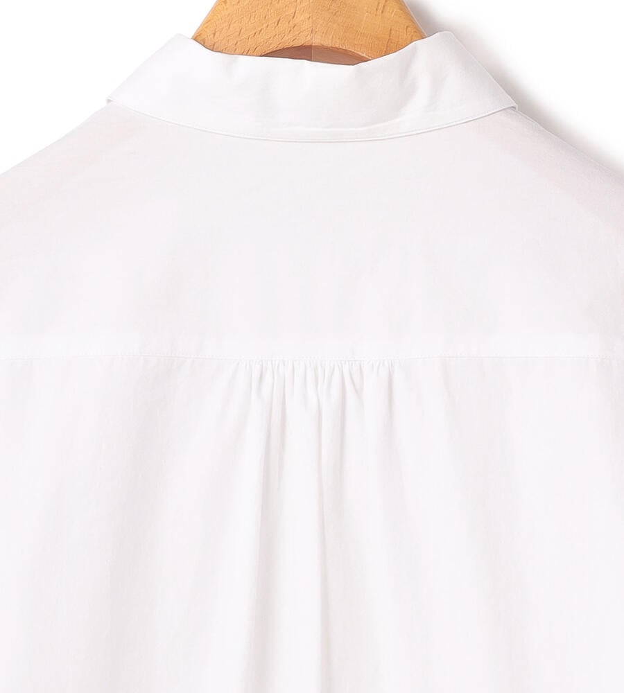 さっぱりとしたコットンのタイプライター素材を用いたブラウス。フロントヨークを切り替えることで、かっちりとした清楚さと上品さを備えた仕上がりになっています。カフスを長めに仕立てているのも、フォーマル度を高めるアクセント。裾をボトムスにインさせる着こなしも、バランスよくまとまります。