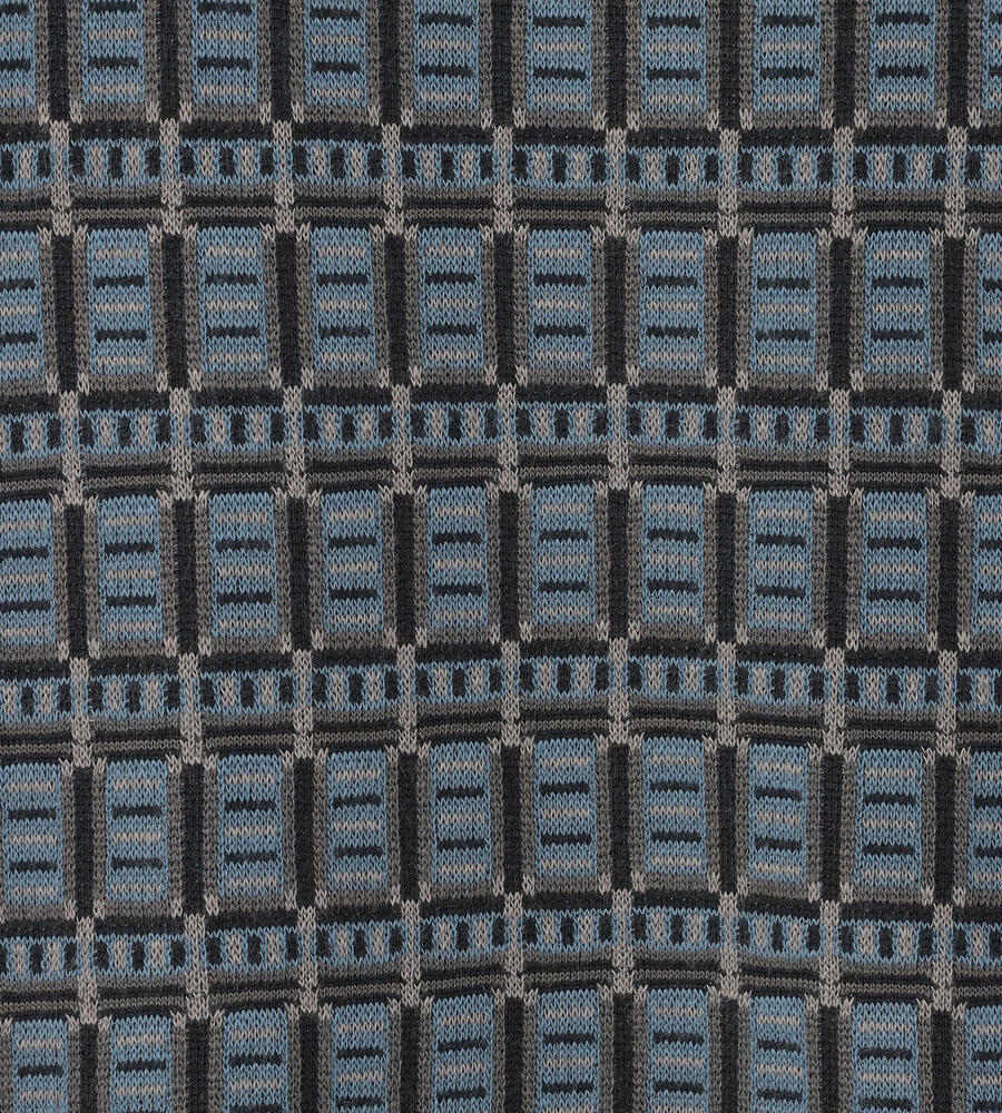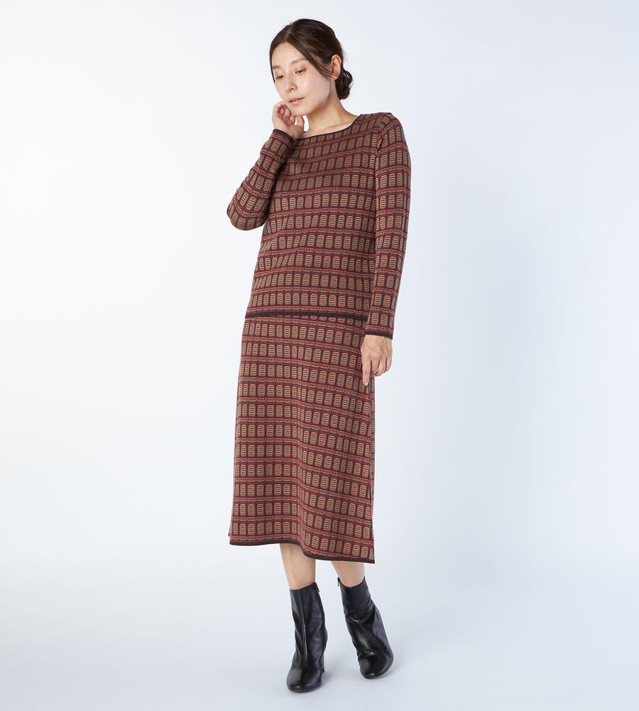 幾何学的な柄使いが印象的なジャカードニットを用いたトップス。スクエアネックを採用して、柄の美しさを引き立てる仕上がりになっています。袖口やネックライン、裾をトリミングしており、全体を引き締めているのもポイント。同素材のスカートを合わせたセットアップスタイルもお楽しみいただけます。