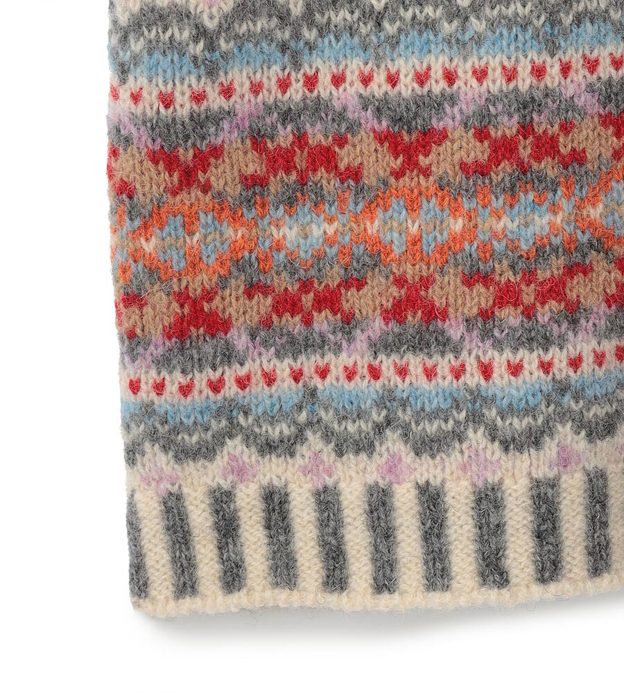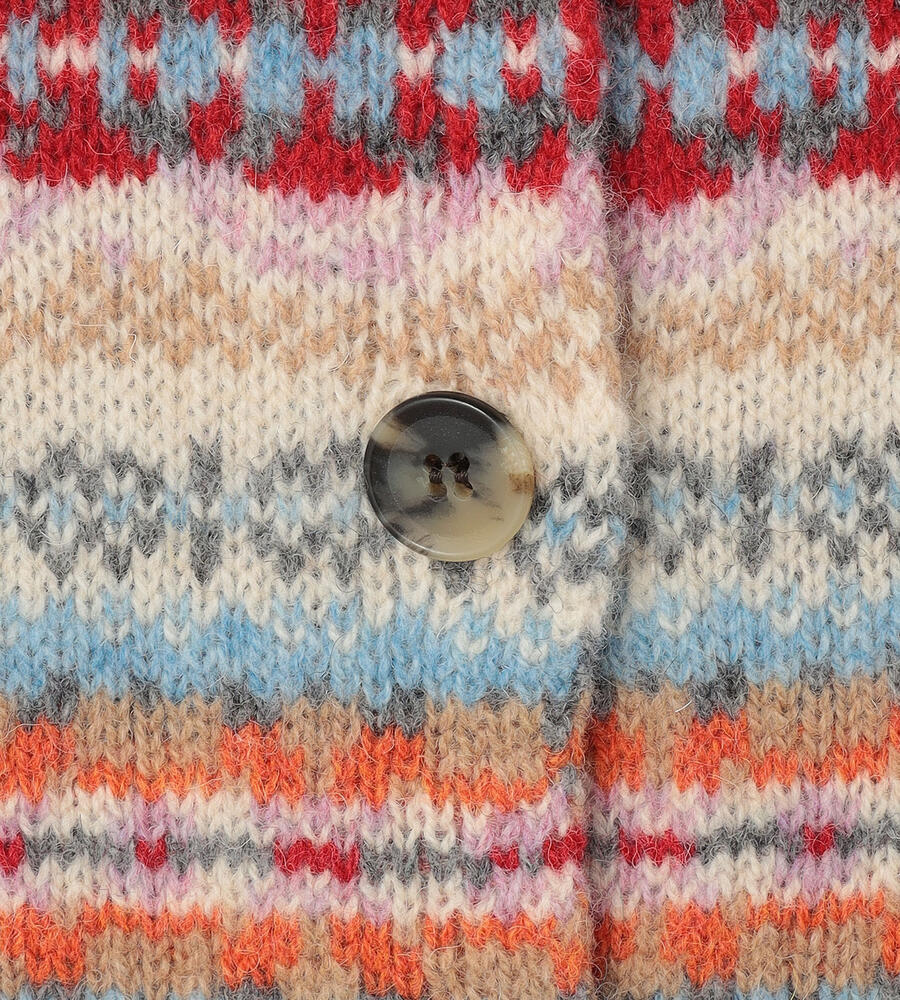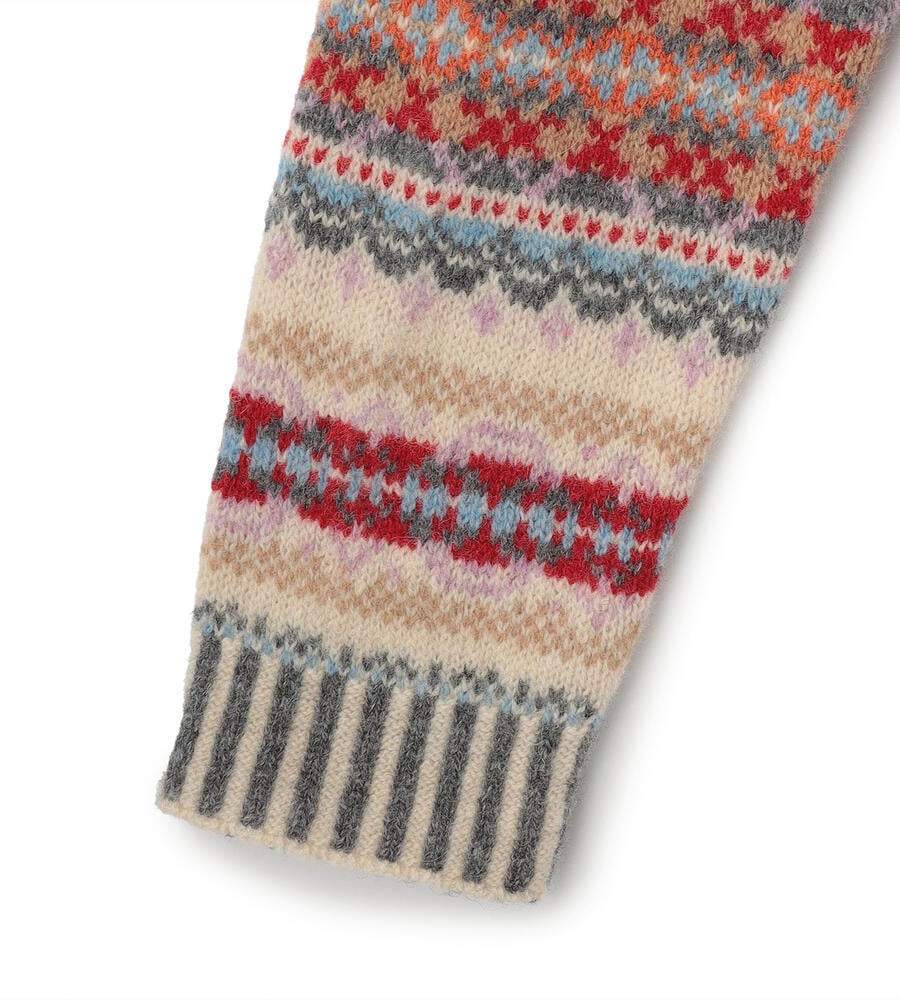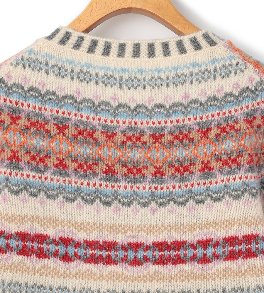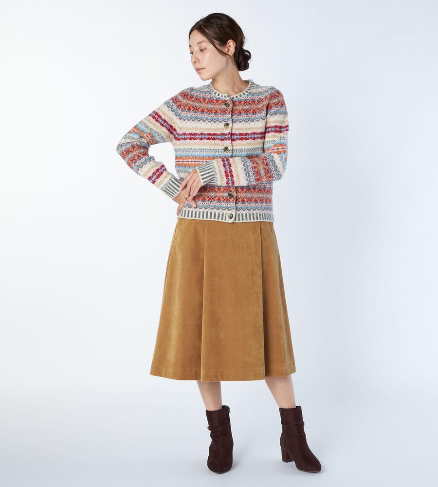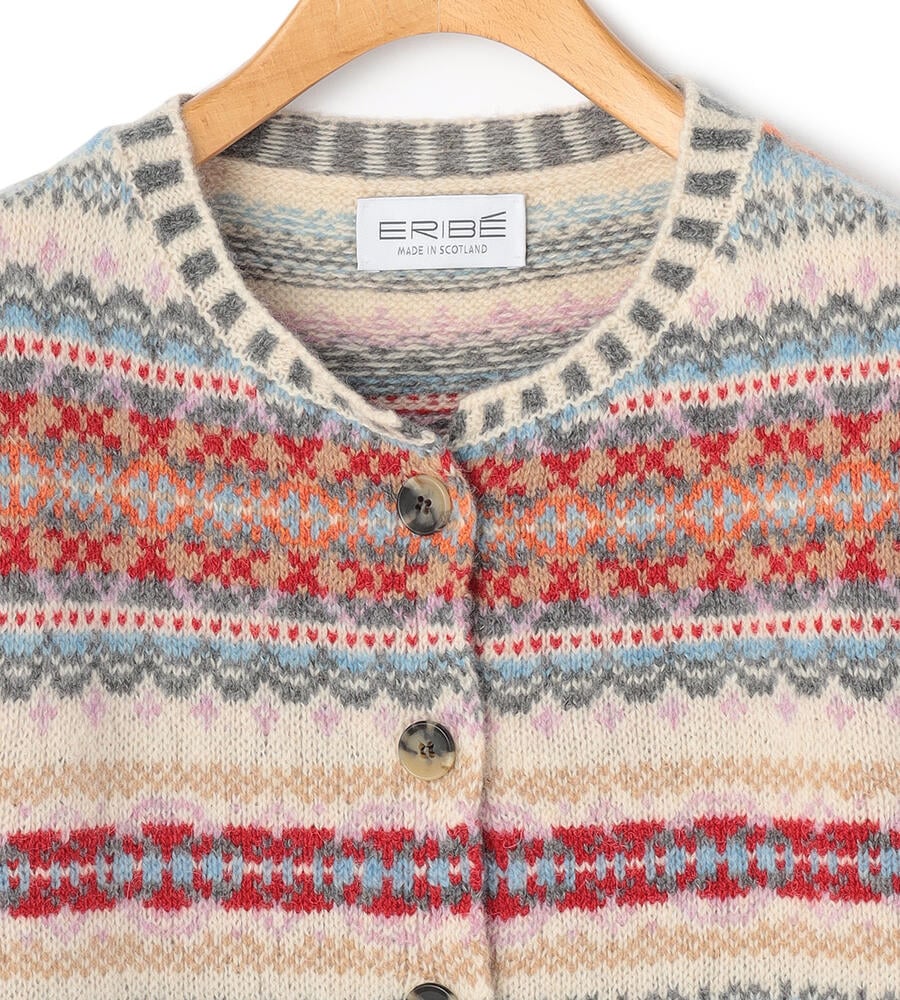 繊細な色使いと温もり溢れる柄使いに目を奪われるニットカーディガン。ウール100%を使用した、素朴ながらも上質なニットが、秋冬らしいクラシカルなスタイリングを実現します。すっきりとしたシルエットと着丈で、合わせるボトムスを選ばないのも特徴。1枚使いで見映えするため、他をシンプルに抑えても十分に着こなしの鮮度が高まります。