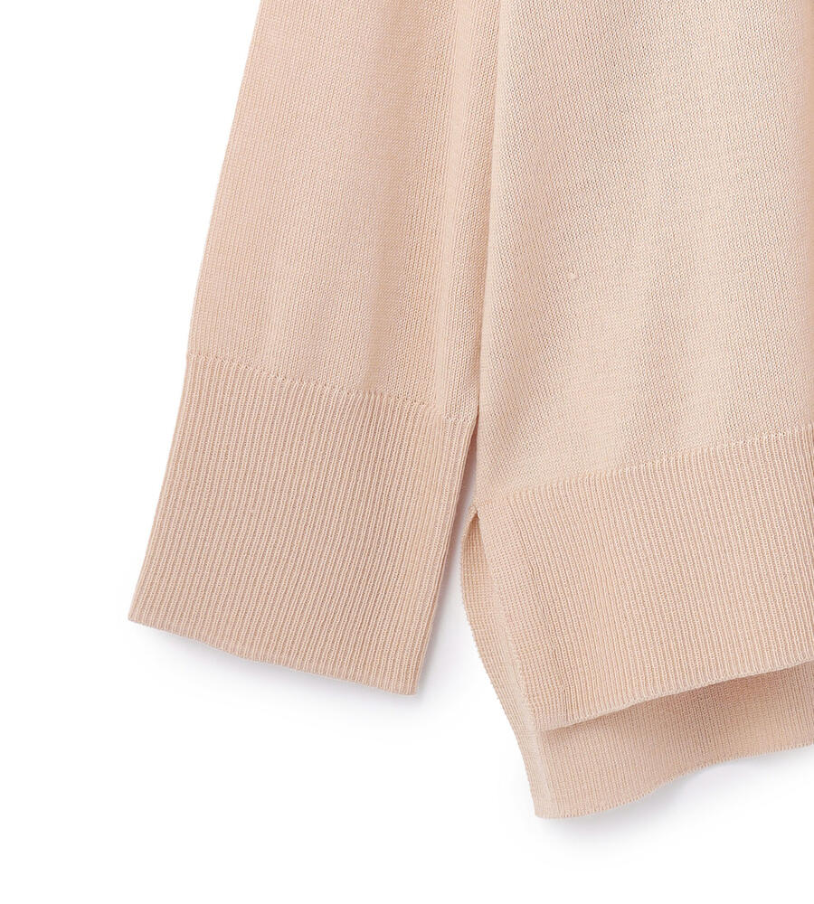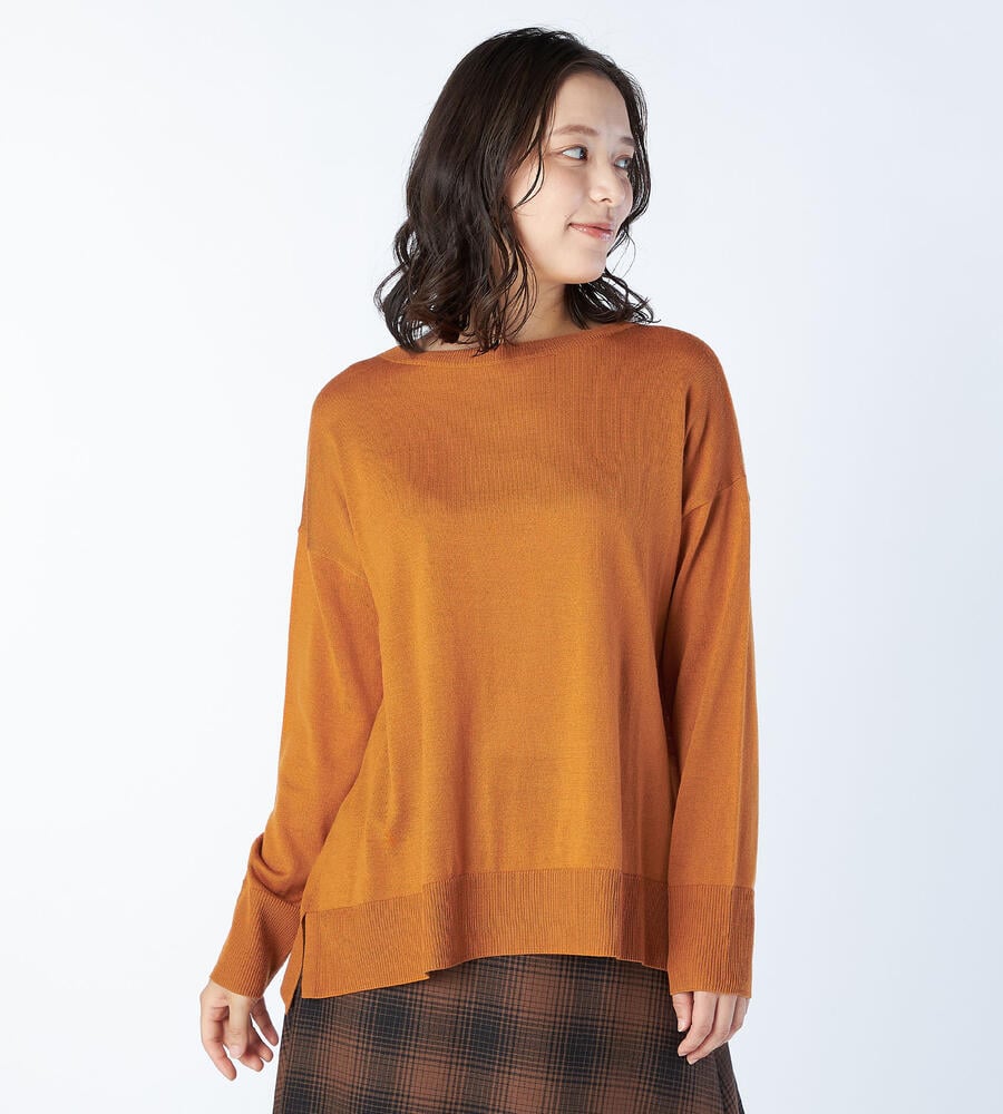 顔周りをすっきり見せてくれるボートネックのニットプルオーバー。薄手のハイゲージニット素材で、秋口から春先までロングシーズン着回しが可能です。ドロップショルダーや前後差のあるシルエットといったトレンドエッセンスをさりげなく取り入れた1枚。ジャケットやコートのインナーとしても活躍します。