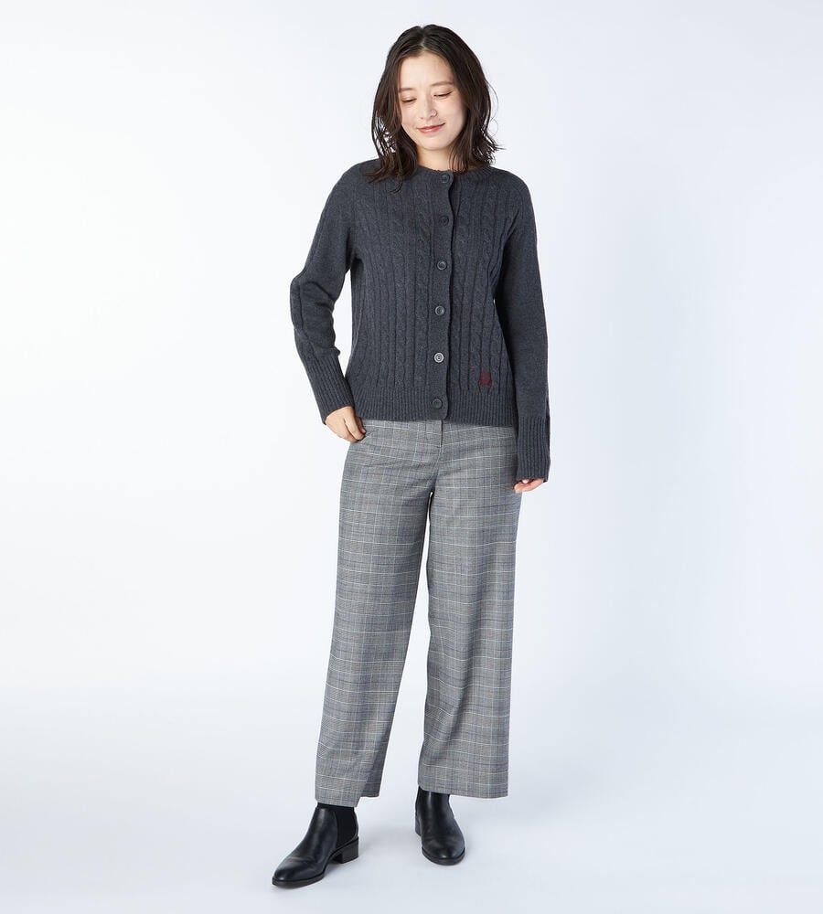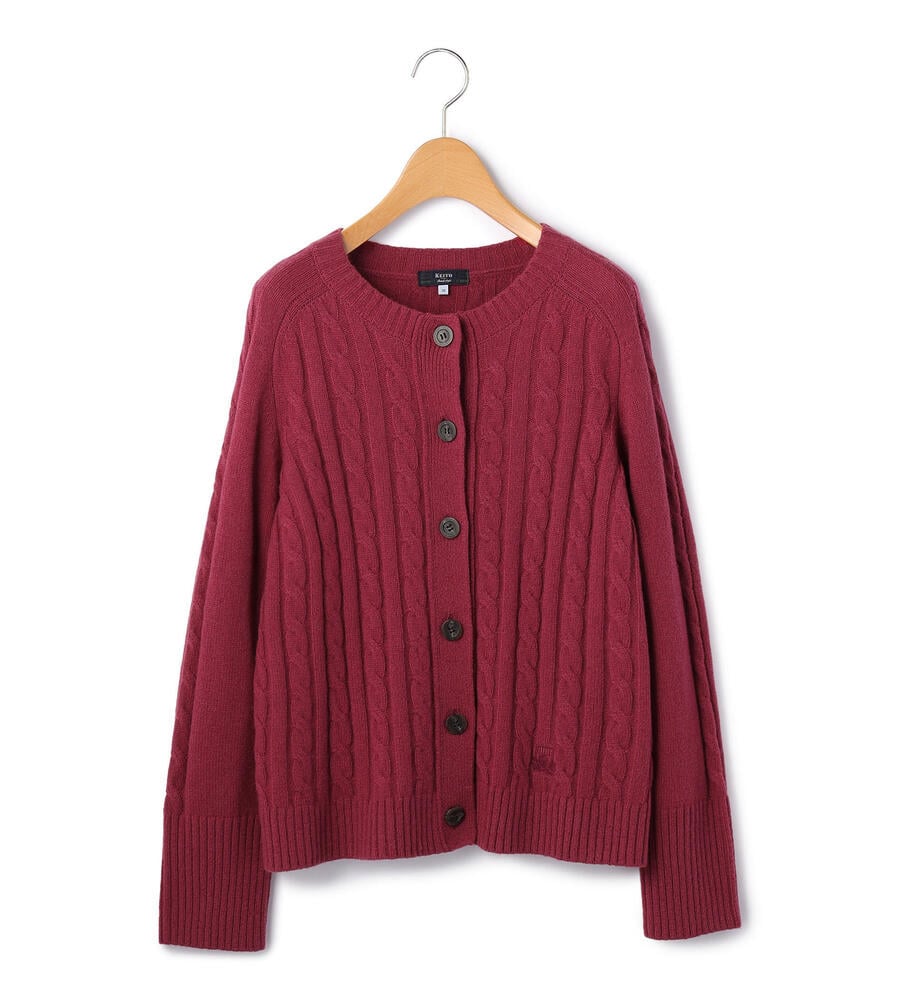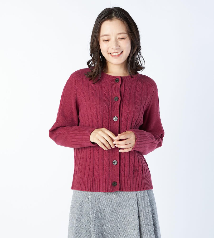 ケーブル編みが上品かつクラシカルな印象を与えるニットカーディガンです。ウールがベースのミドルゲージニットは保温性に優れ、気温が低い真冬まで活躍してくれます。左裾にあしらったエンブレムの刺繍が、品質の高さを物語るデザイン。豊富なカラーバリエーションからお好みの1着をお選びいただけます。