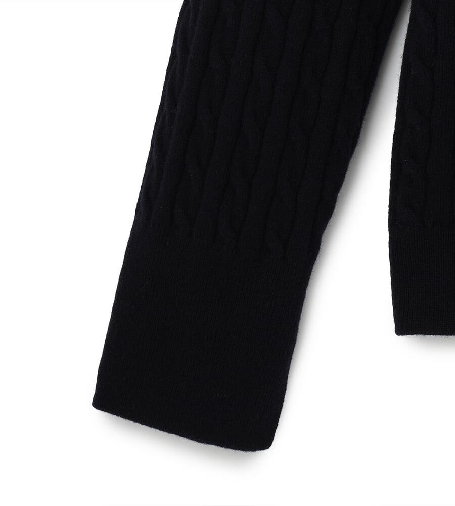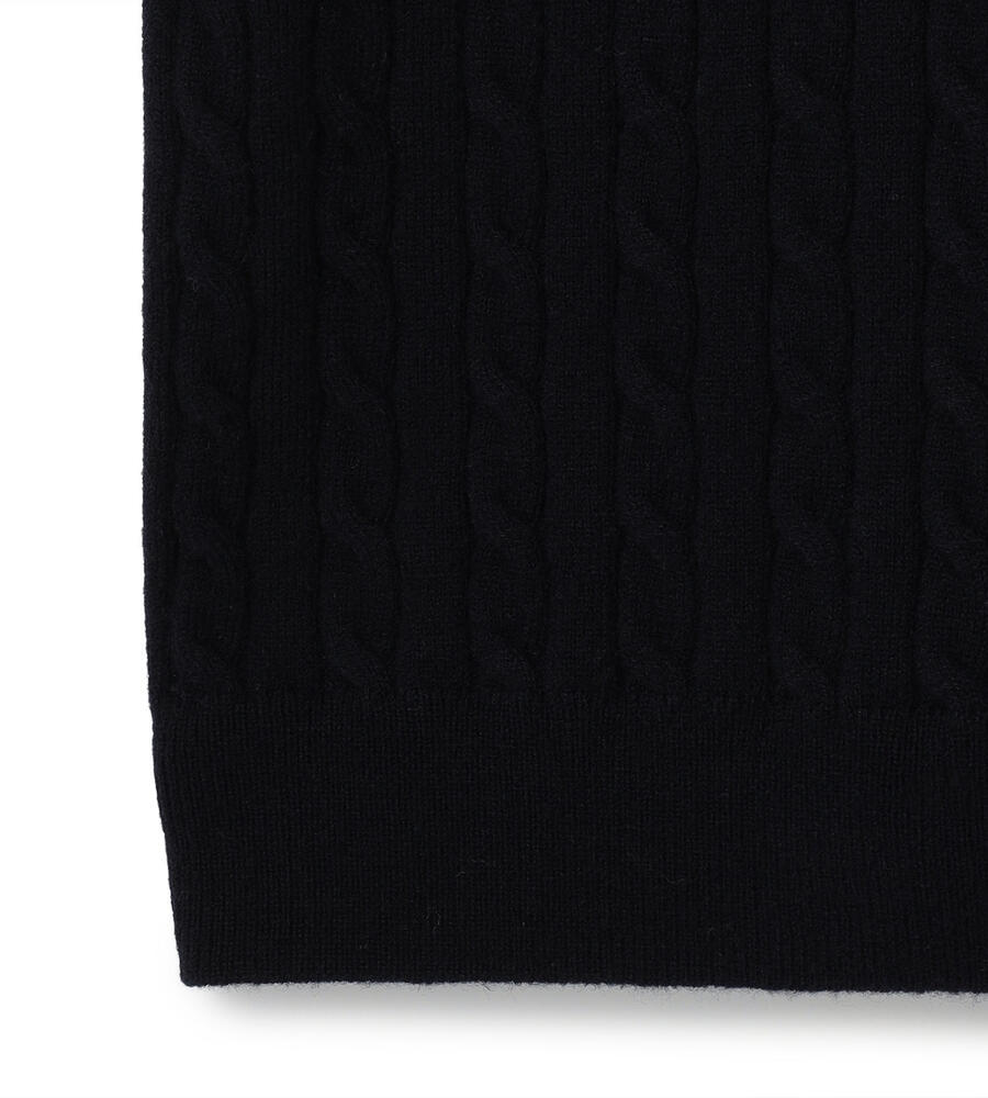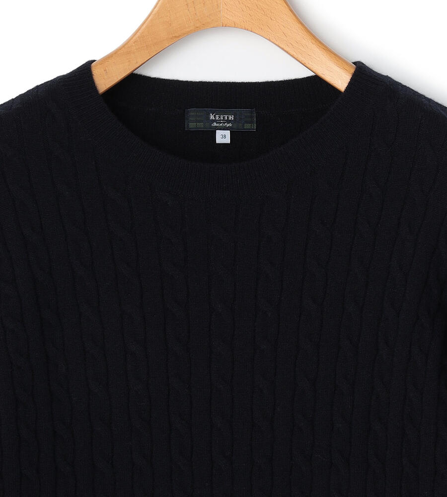 シンプルなルックスがデイリーに愛用できるニットトップス。上品な雰囲気を醸す細やかなケーブル編みから大人の余裕を感じられる1着。左裾にさりげなくエンブレム刺繍を添えたディテールへのこだわりもポイントです。