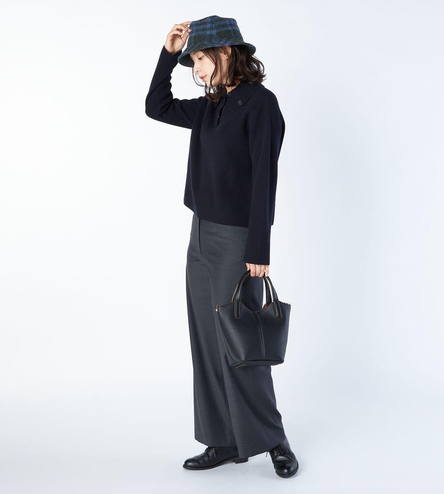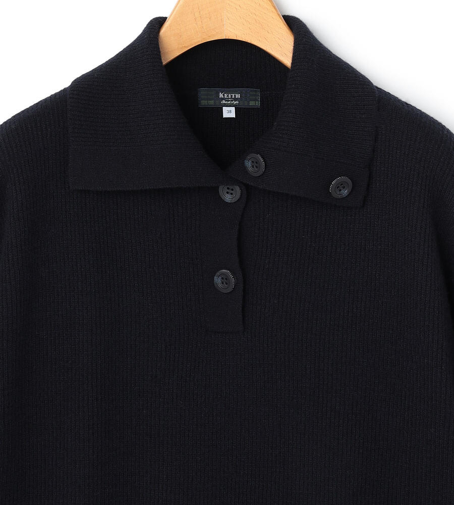 襟にあしらったボタンで個性をプラスしたロングスリーブニット。シンプルになりがちなニットにさりげなく遊び心をプラスしたアイテムです。毛100%素材を採用した暖かな風合いが快適な着心地。ロングスカートやワイドパンツとも合わせやすい軽やかな着丈がトレンドライクな表情に仕上げてくれます。