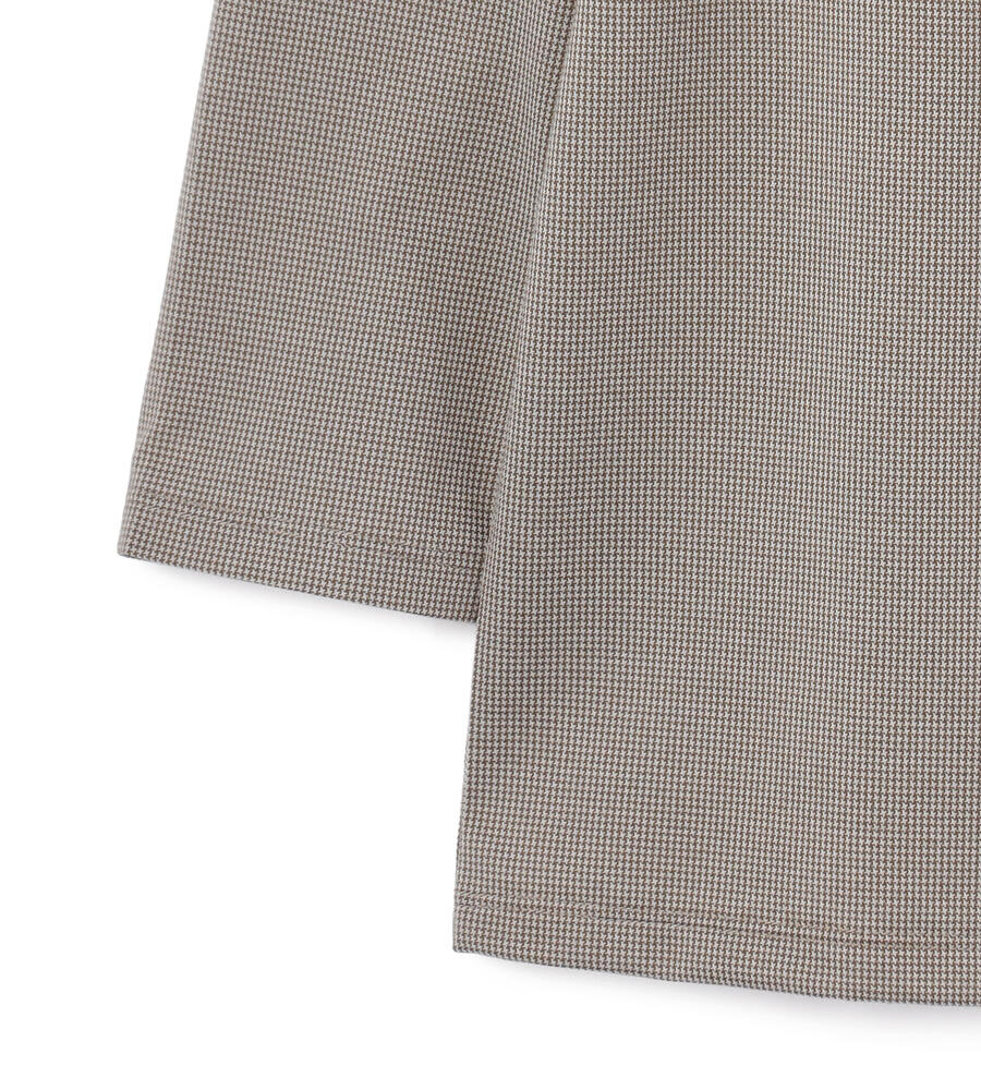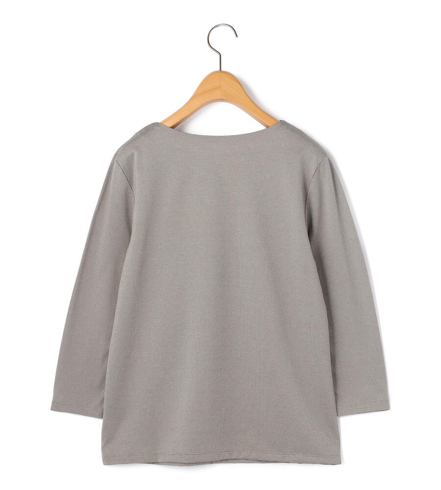 ハウンドトゥース柄がエレガントなムードの7分袖カットソー。ソフトな肌触りと快適な着心地が特徴のジャージー素材で仕立てた一枚。ゆとりのあるシルエット、シンプルなデザインでお手持ちのボトムにマッチします。デイリーからお出かけまで様々なコーディネートが決まる、汎用性の高いアイテムです。