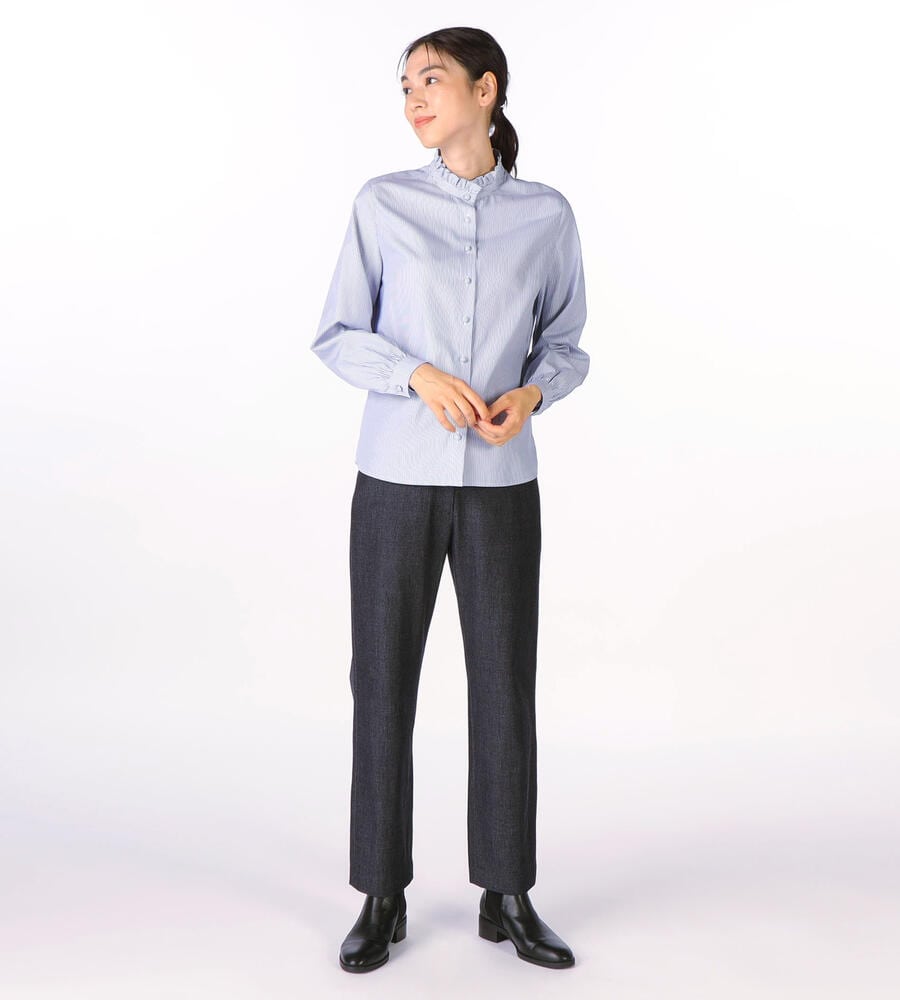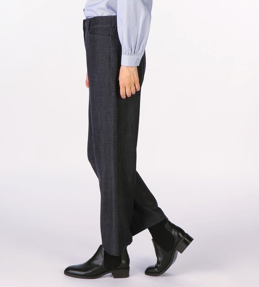 コーディネートのベーシックに着まわせるきれいめな印象のストレートシルエットパンツ。ストレッチ性を備えた素材でストレスフリーな履き心地を叶えました。サイドとバックにポケットを配置。シンプルなデザインが様々なスタイルにフィットします。