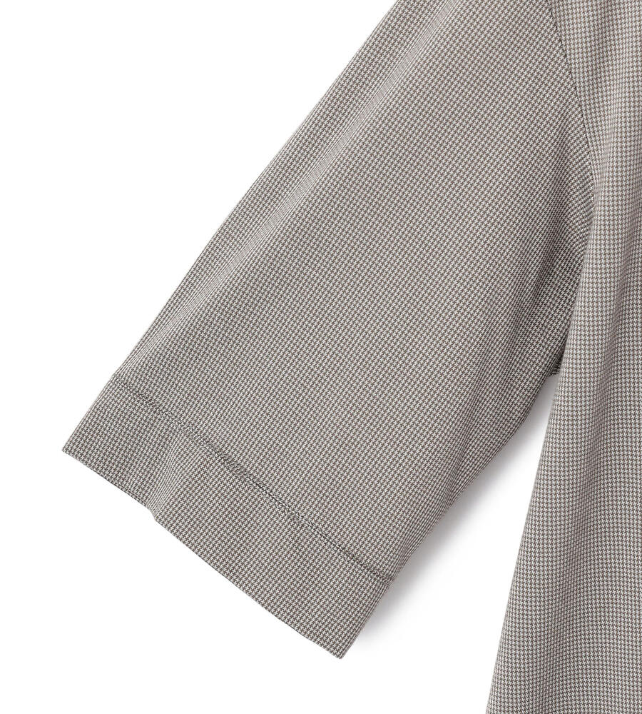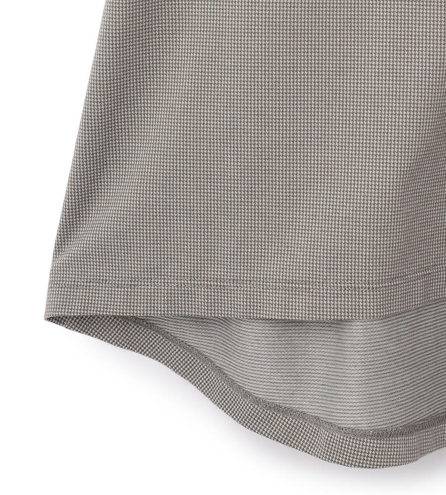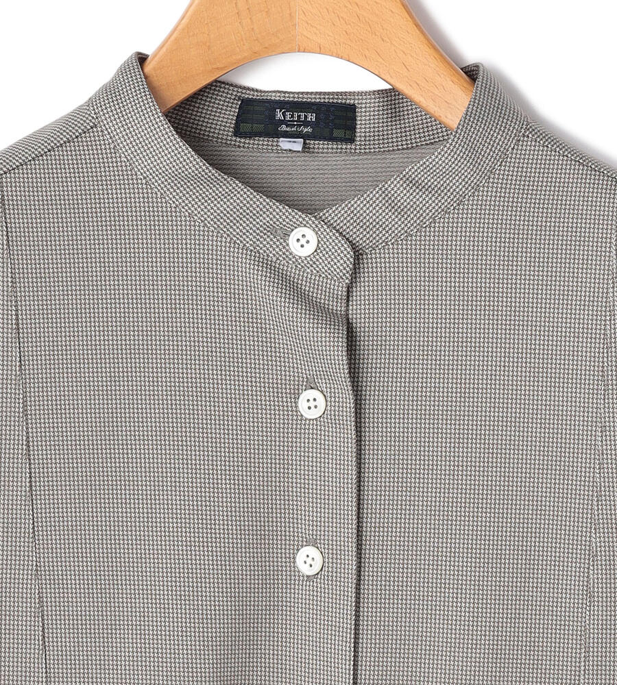 クラシカルながらも淡い色彩のハウンドトゥース柄を用いたカットソー。カットソー地ながらもきちんとした印象のバンドカラーを採用して、クリーンに仕上げています。フロントヨークをスクエア状に切り替えた、シャープな佇まい。大人のカジュアルスタイルにモダンなエッセンスを加える1点です。