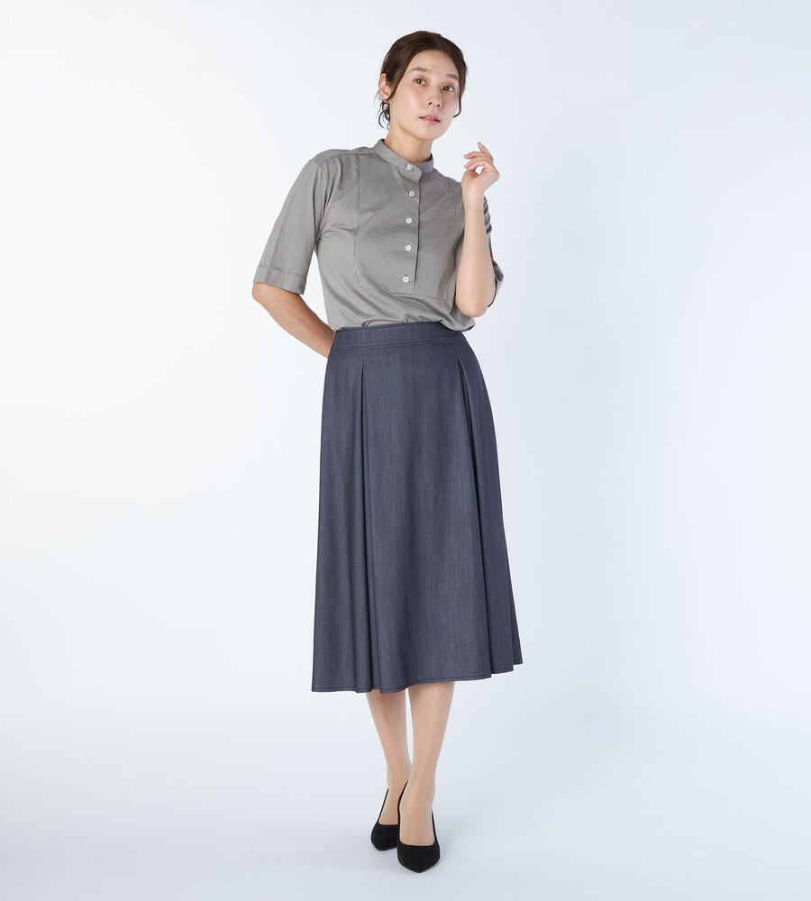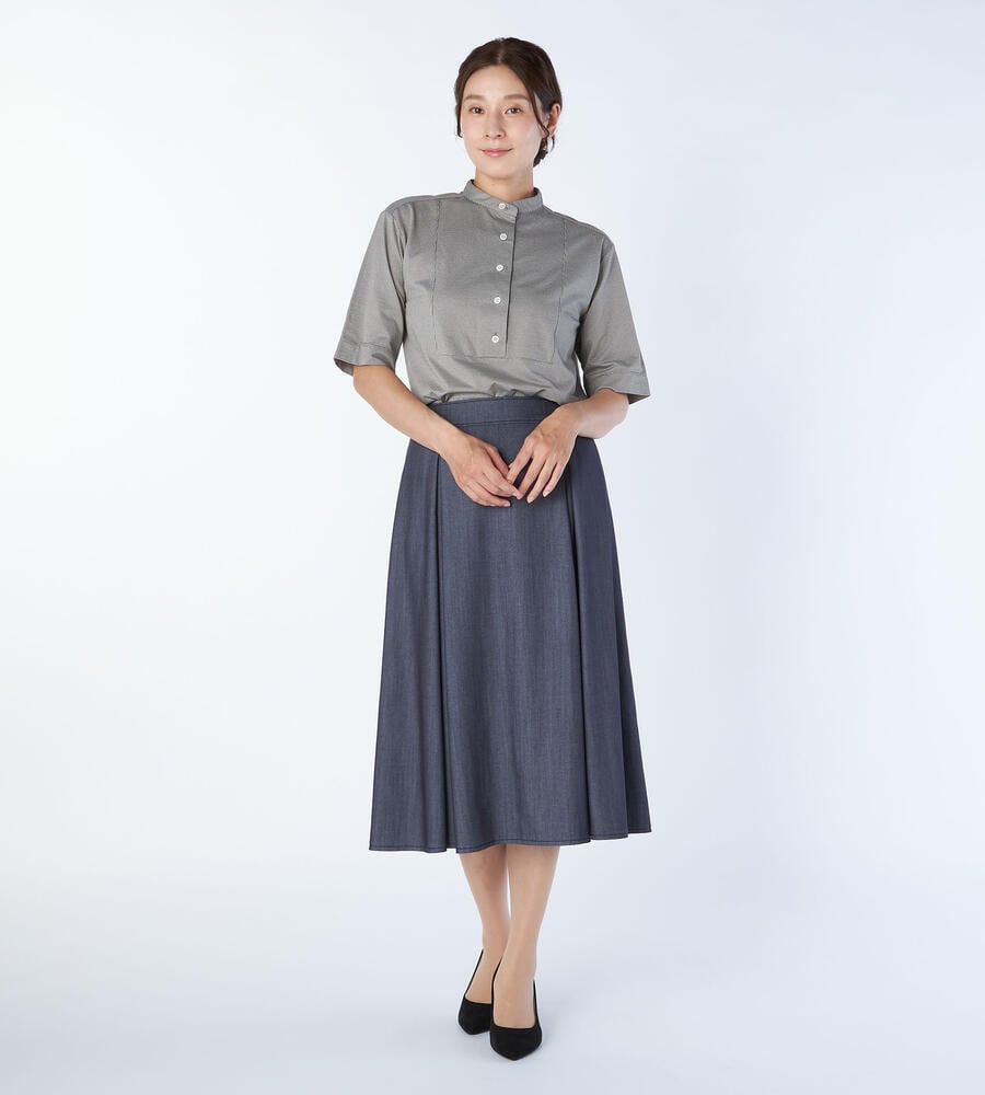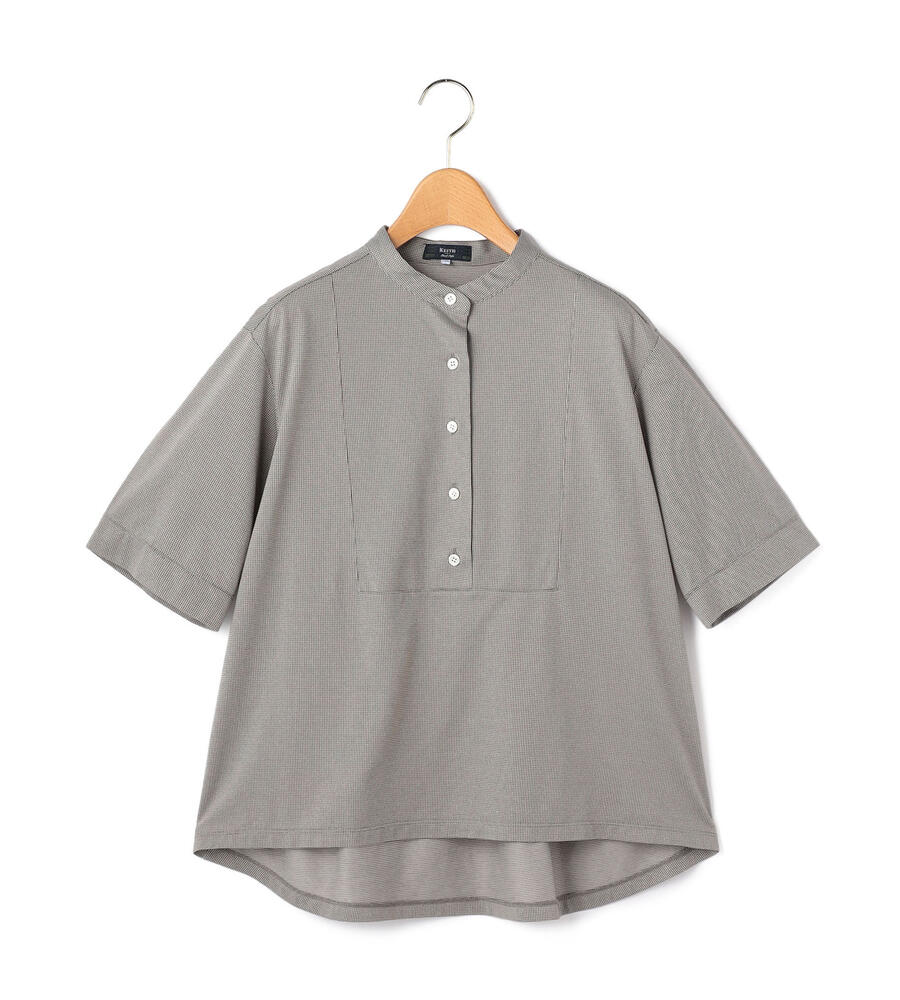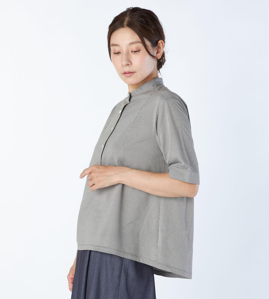 クラシカルながらも淡い色彩のハウンドトゥース柄を用いたカットソー。カットソー地ながらもきちんとした印象のバンドカラーを採用して、クリーンに仕上げています。フロントヨークをスクエア状に切り替えた、シャープな佇まい。大人のカジュアルスタイルにモダンなエッセンスを加える1点です。