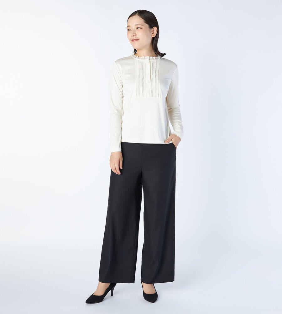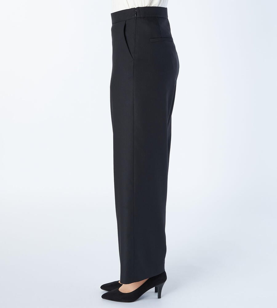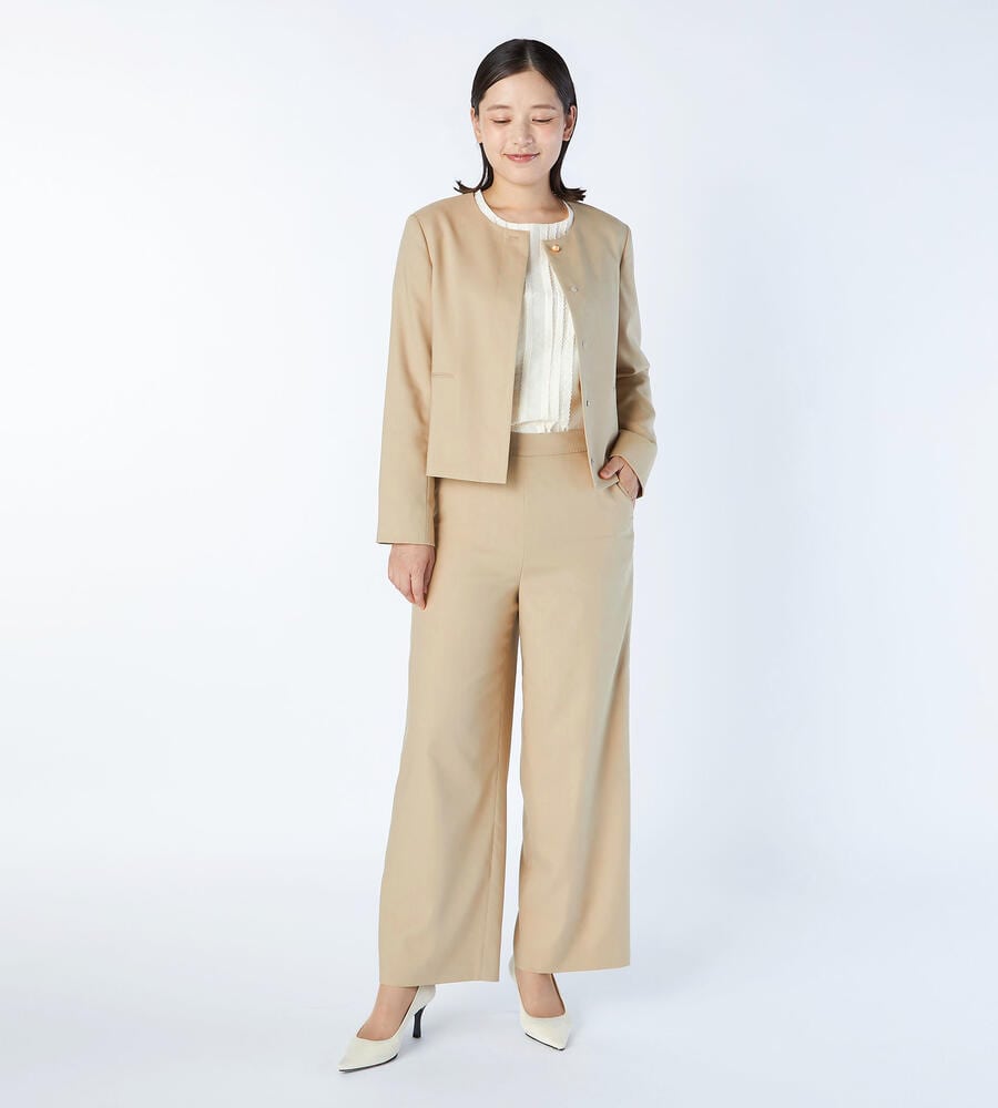 程よくゆとりのあるシルエットからコンフォートなムードが漂うパンツ。サイドにファスナーを配置することでフロントがすっきりとした印象に。ポケットはサイドとバックに配置し、フロントウエストにはステッチを施しました。同素材のジャケットとセットアップで着こなせるアイテムです。