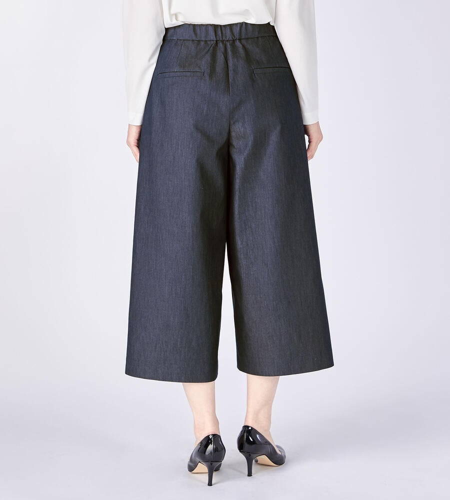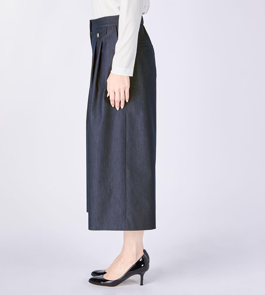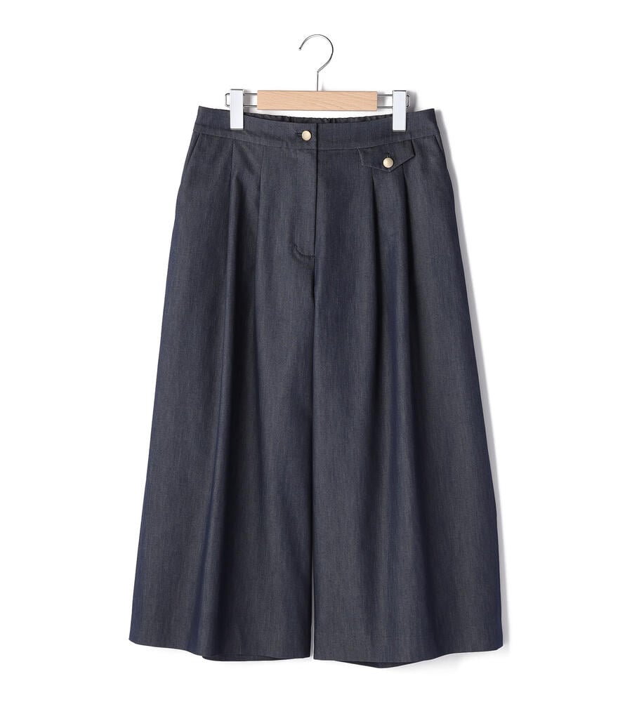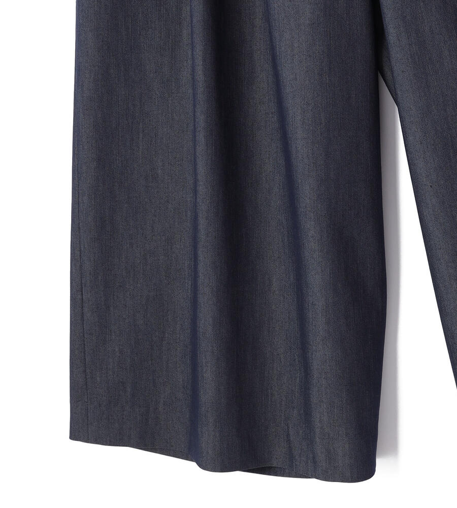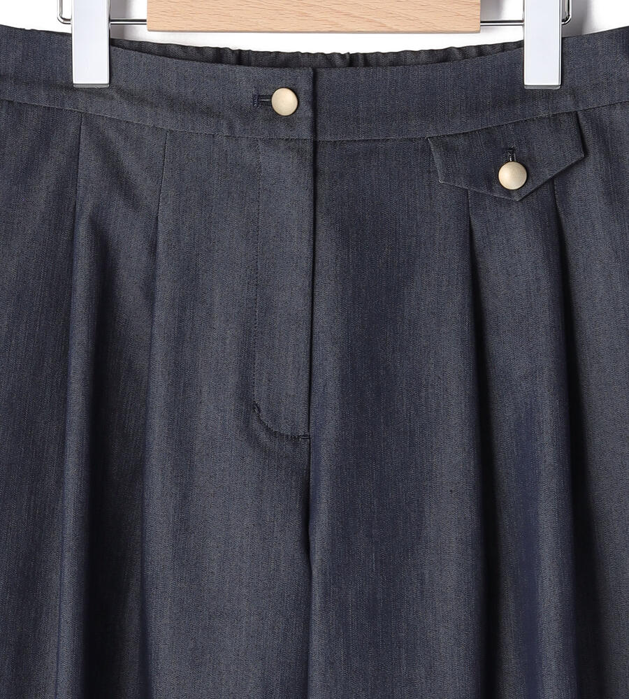 フロントタックで程よいゆとりをプラスしたクールデニムパンツ。きれいめな印象で着こなしたい大人のカジュアルスタイルにぴったりのアイテムです。ウエストにあしらったフラップディテールが遊び心溢れるワンポイントに。サイドとバックにはポケットを配置しています。バックウエストがゴム仕様になった快適な着心地も嬉しい。