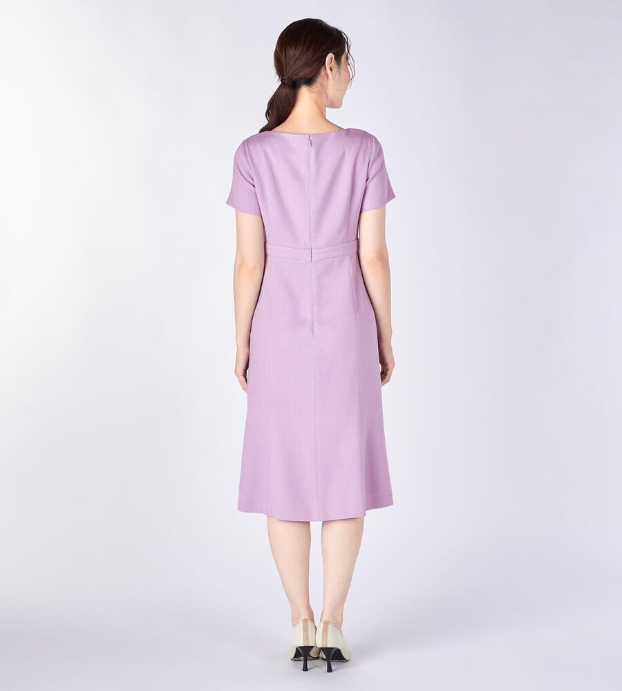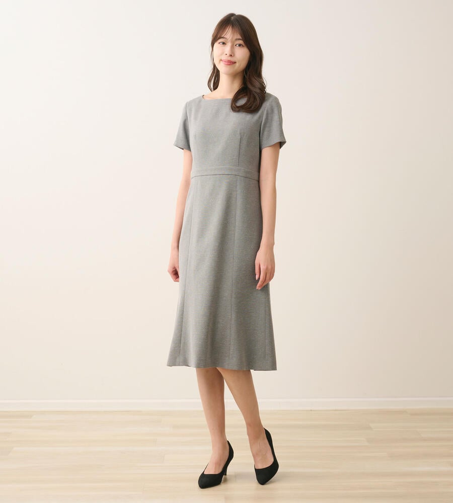 しなやかなオックス生地で仕立てた半袖ワンピース。ウエスト高めの位置に切り替えのアクセントで、スタイルよく着こなせます。バックジップ仕様でフロントはすっきりとしたデザイン。フレアで適度なドレープ感のあるスカートがフェミニンなポイント。おしゃれなお出かけコーディネートが完成するアイテムです。