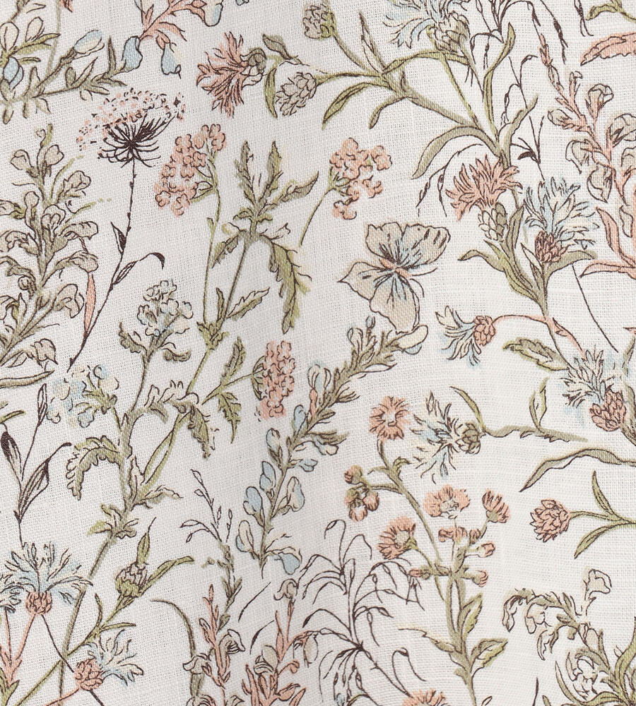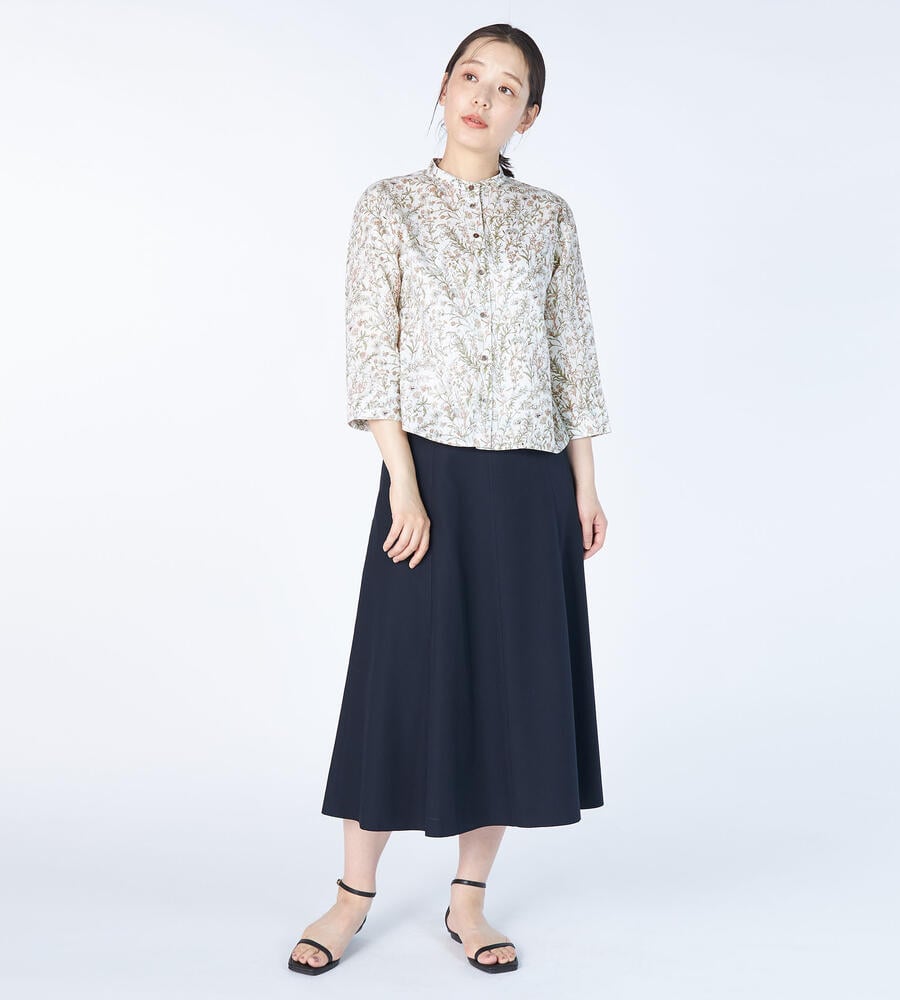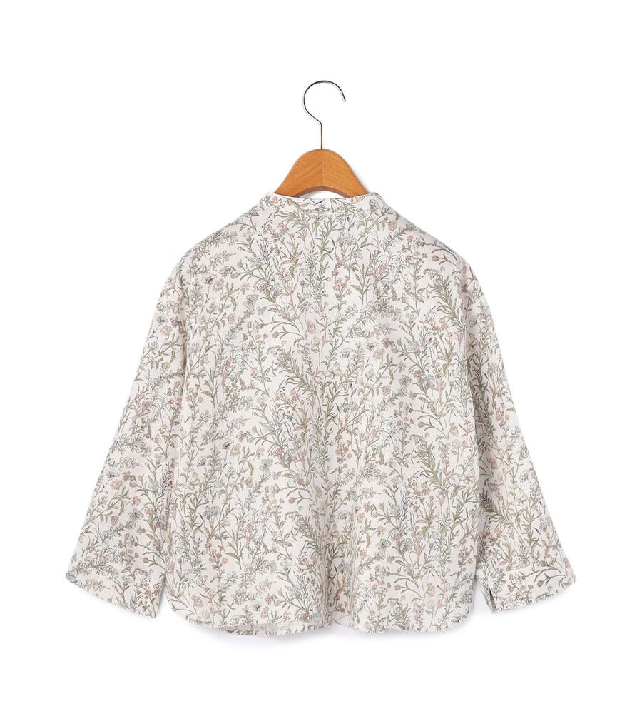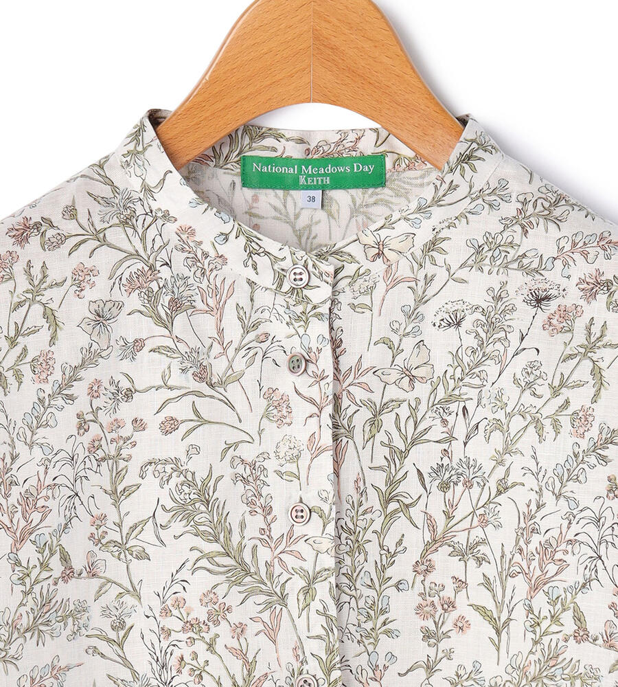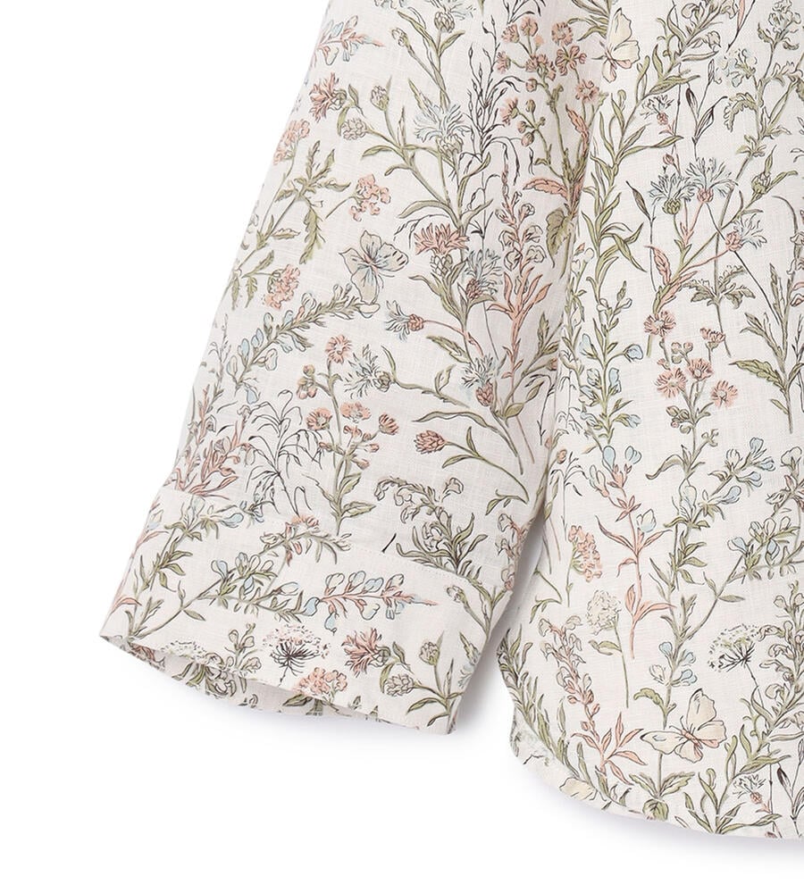 肌当たりが良く涼やかな印象の麻素材を用いたブラウス。蝶が草花の中で舞うボタニカルなプリントが、着こなしを爽やかに映し出します。着丈は短めで袖も8分丈程度。ゆとりのあるシルエットながらもバランスのとれたスタイリングを後押しします。ワイドなシルエットのボトムスを合わせた、リラックス感のあるコーディネートもおすすめです。