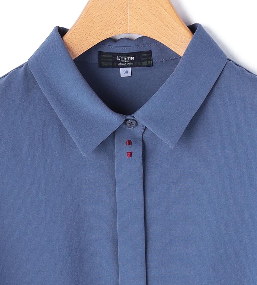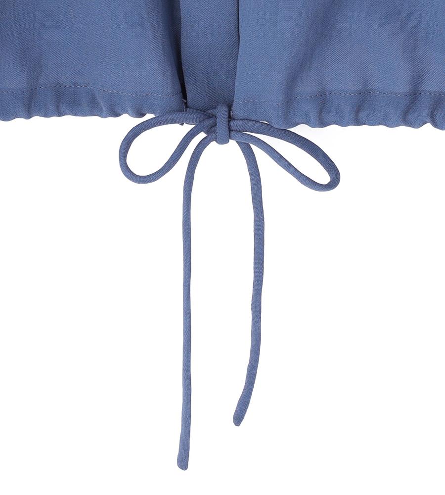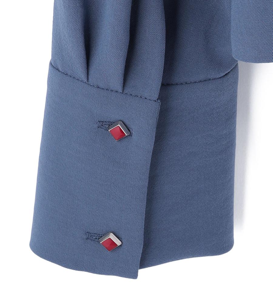 軽やかで落ち感のあるライトポプリン生地のブラウス。スクエア型の配色ボタンが品のよいアクセントになっています。フロントは比翼仕立て、裾は調整可能なドローストリング仕様に。一枚でトップスとしても、前ボタンを開けて羽織りとして着こなすのもおすすめ。同生地のスカートを合わせるとワンピース風のセットアップスタイルも楽しめます。