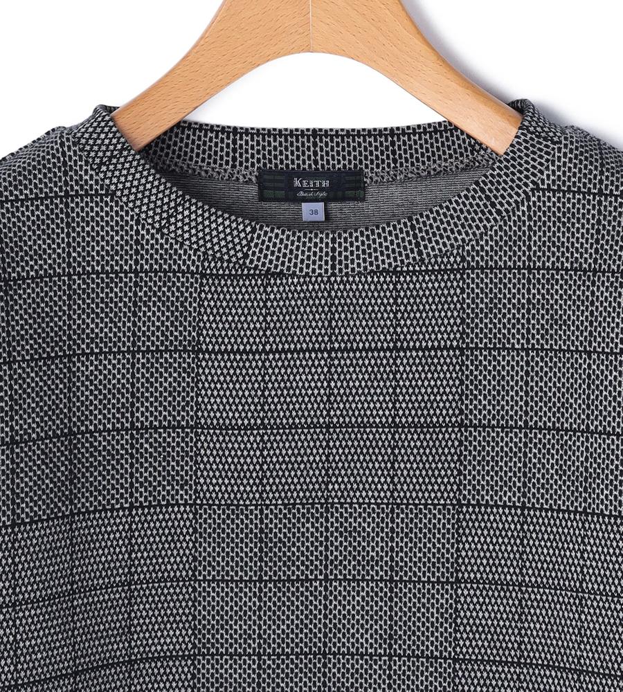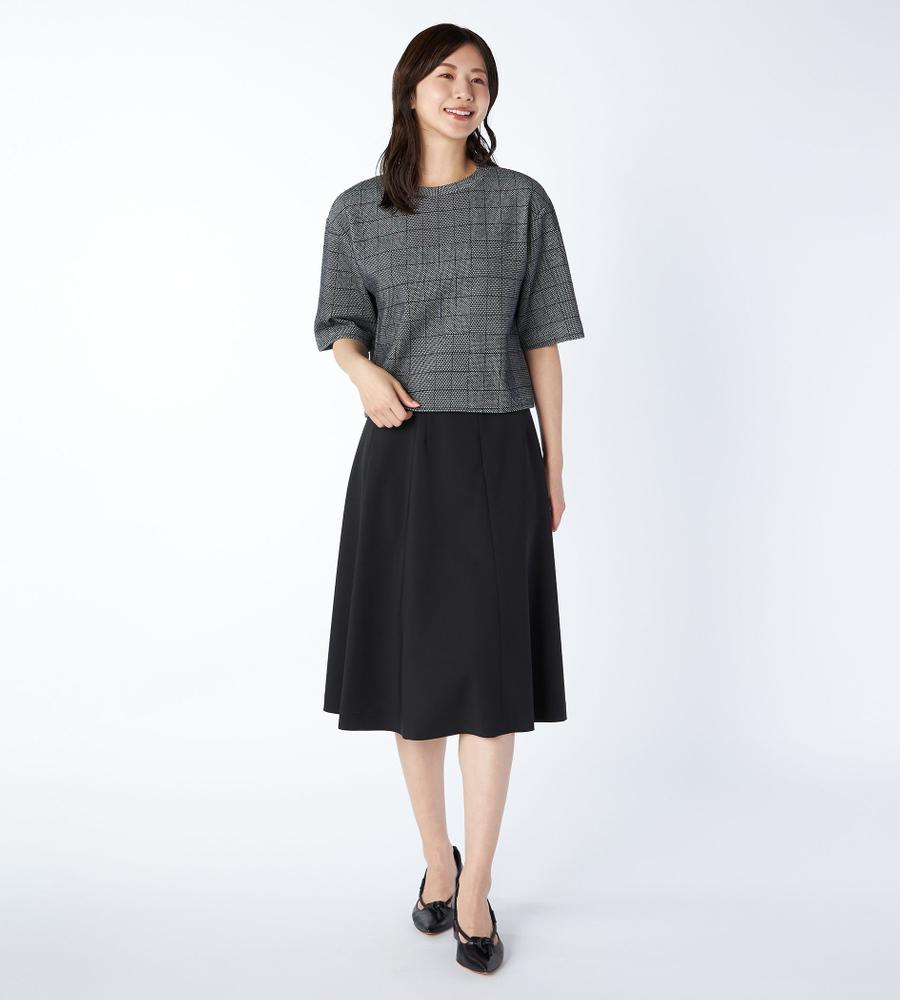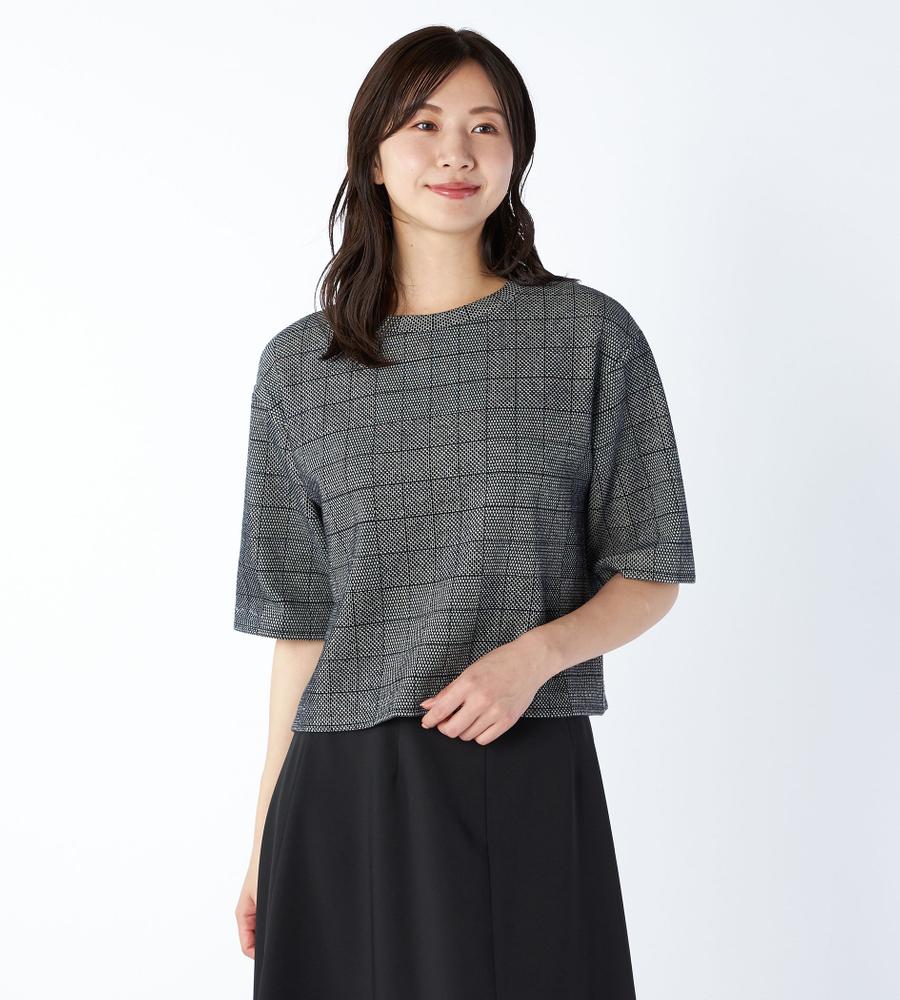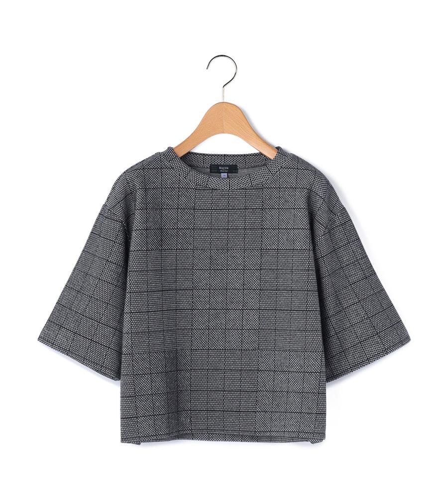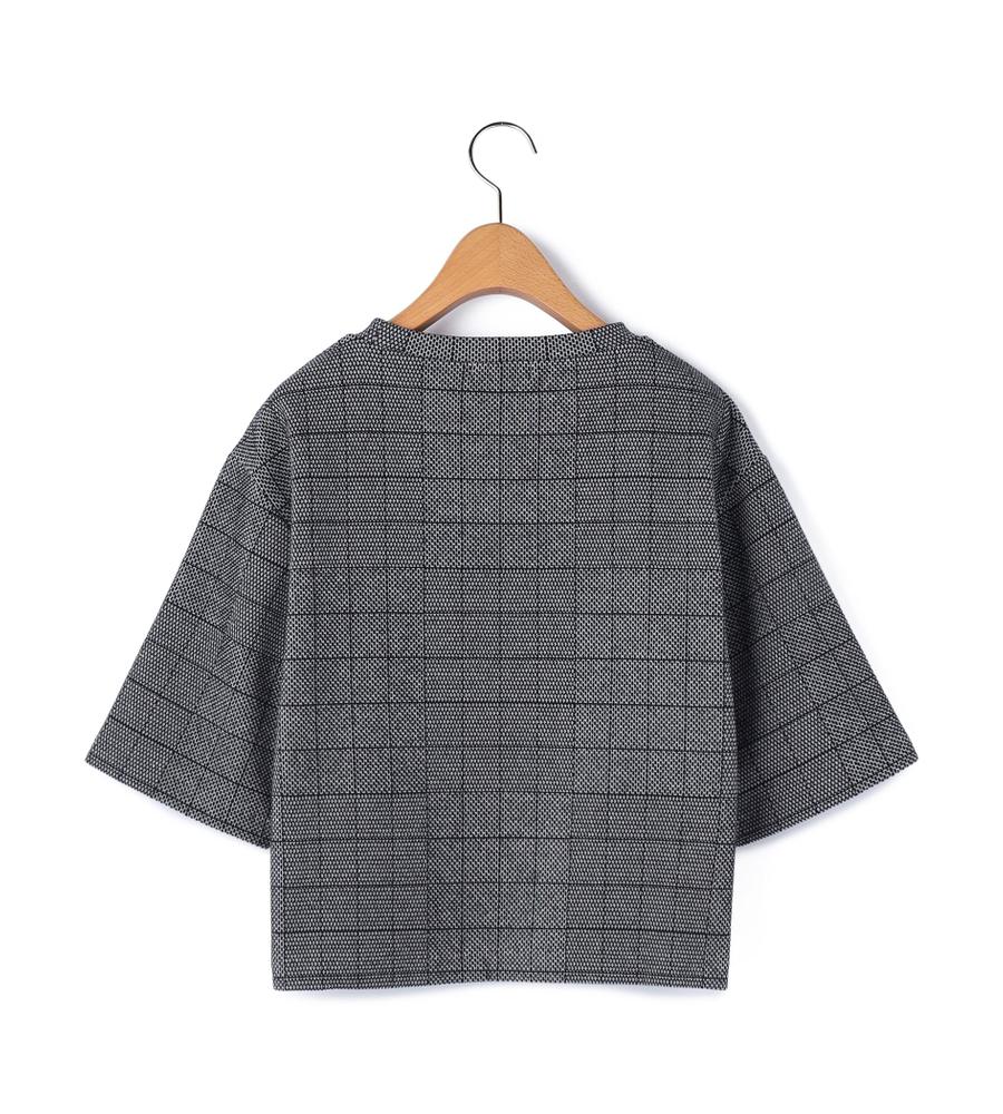 チェック柄のジャカードジャージー生地を使用したクルーネックカットソー。ソフトな風合いで、上品な印象ながらもリラックスして着こなせるアイテムです。ゆったりしたシルエットと短めの着丈のバランスは、コーディネートを旬な雰囲気に演出。パンツ、スカート問わず、様々なボトムと相性よく決まります。