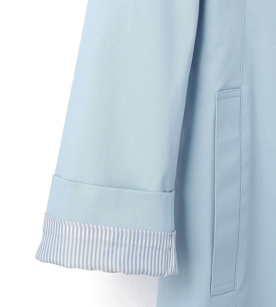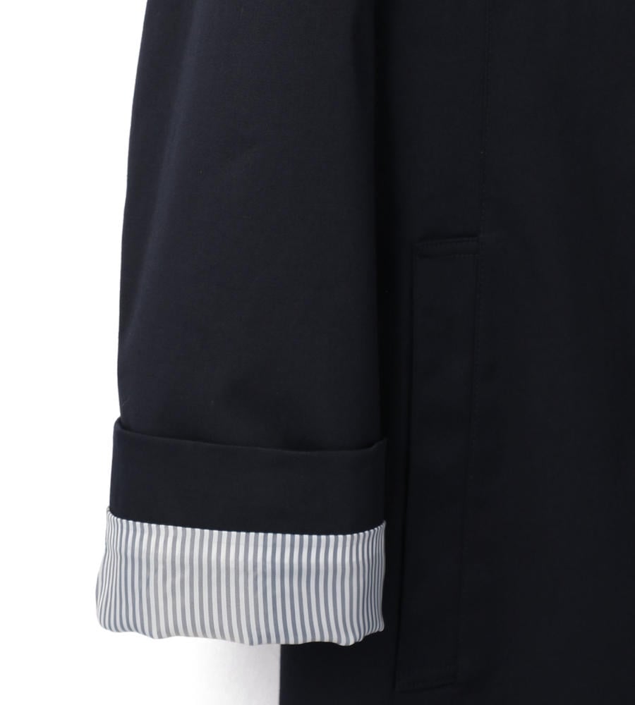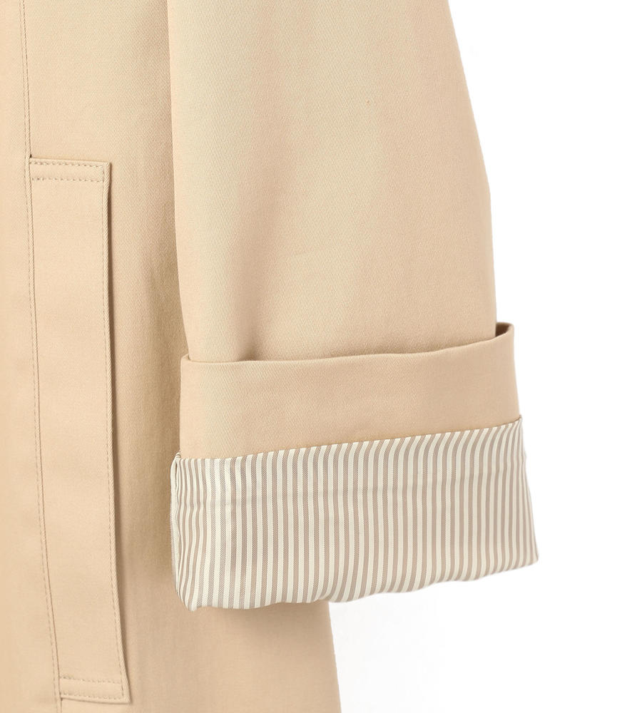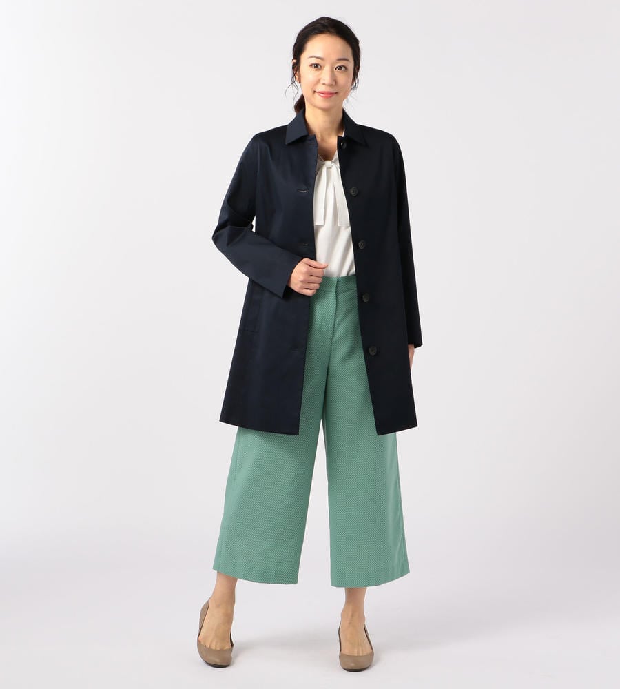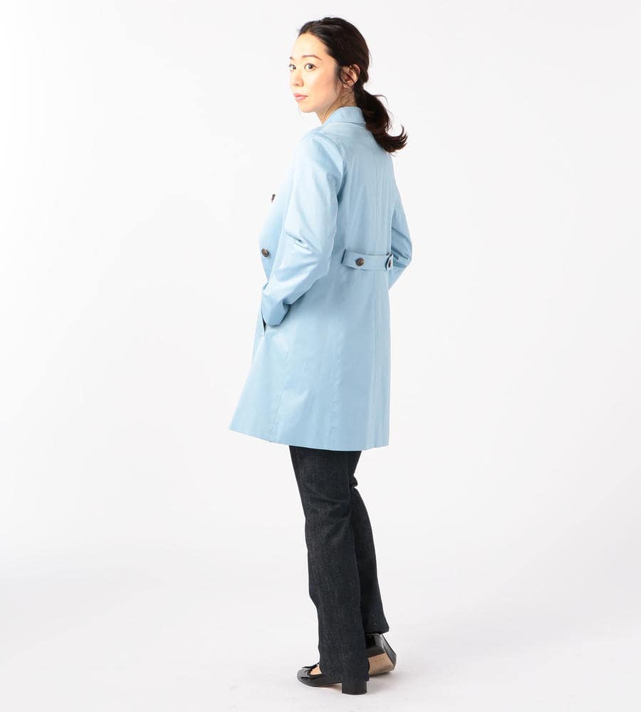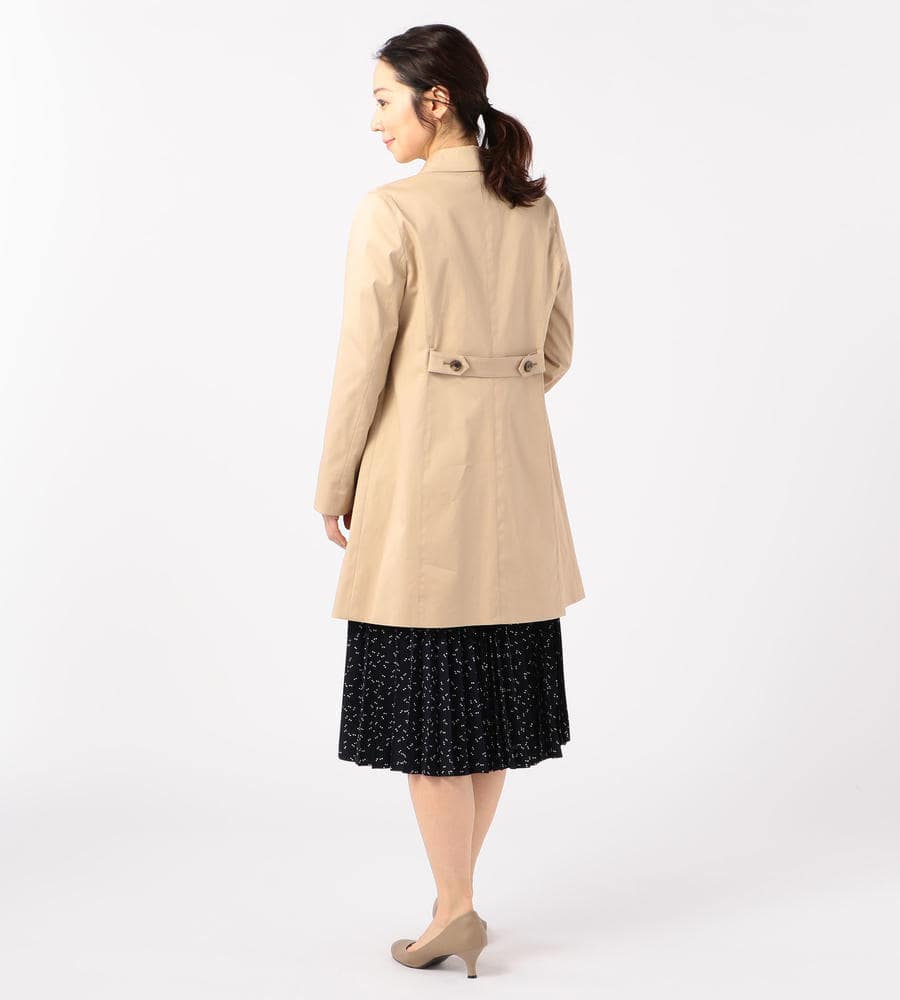 シンプルで洗練されたデザインが幅広いコーディネートに活躍するコート。ストレッチ性を備えたコットンツイル地は快適な着心地。フロントは5つボタン、サイドにポケットを配置。バックウエストにはベルトをあしらい、腰位置を高く見せるアクセントに。裾広がりのAラインシルエットでエレガントに仕上げています。