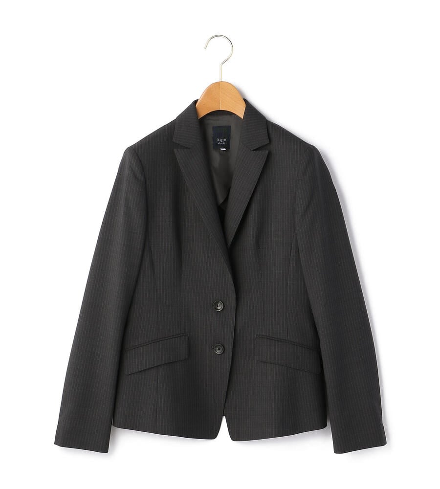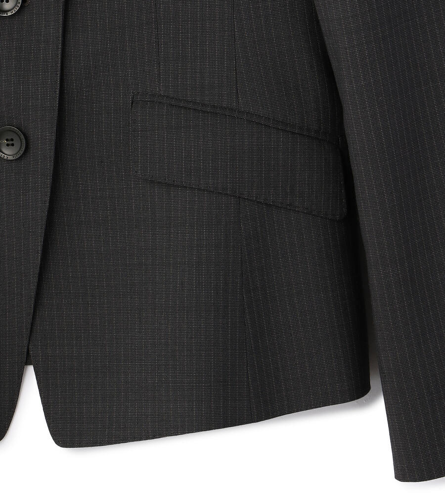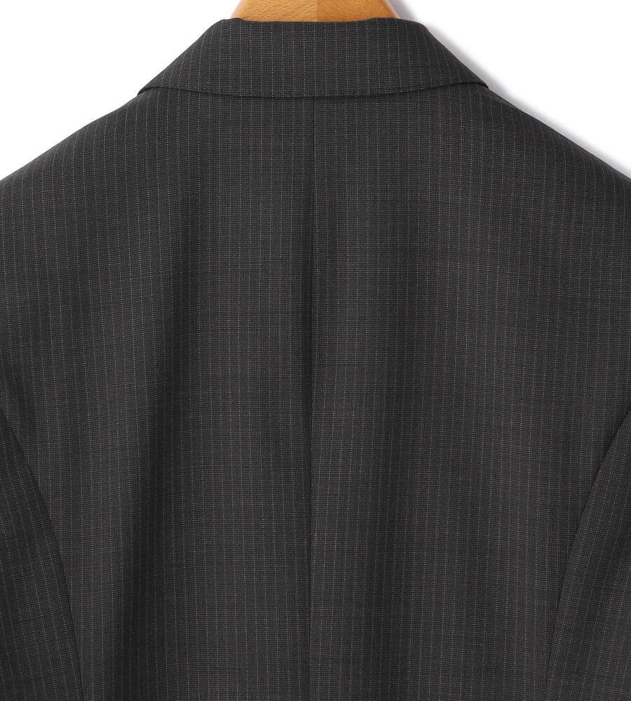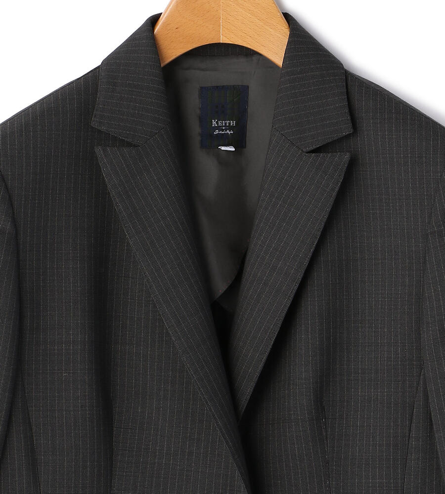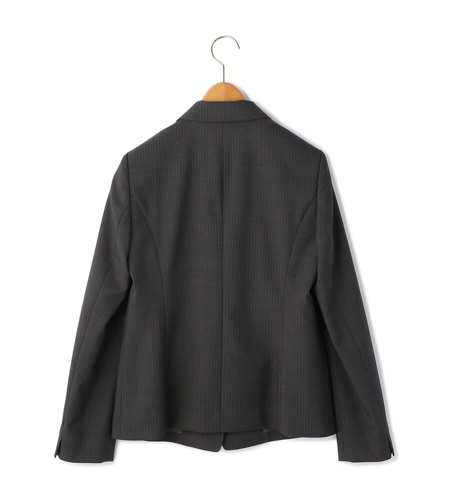マニッシュなムード漂うストライプ柄のテーラードジャケット。フロントは2つボタン、フラップポケットを斜めに配置し、左胸内側にもポケットを備えたデザイン。軽やかな半裏仕立て、袖先にはベンツをほどこしました。腰まわりをカバーする着丈で正統派なスタイルに仕上がっています。