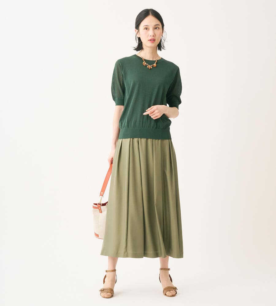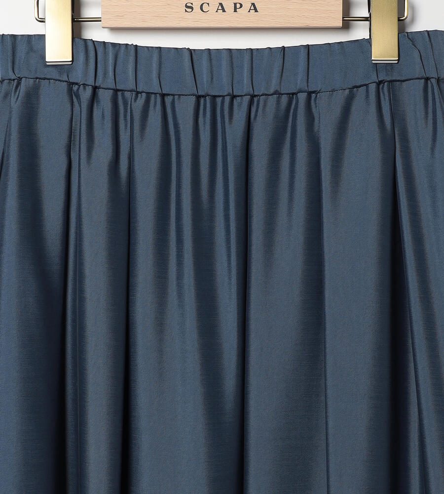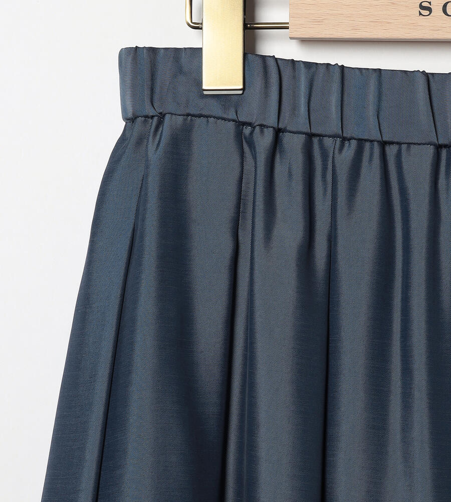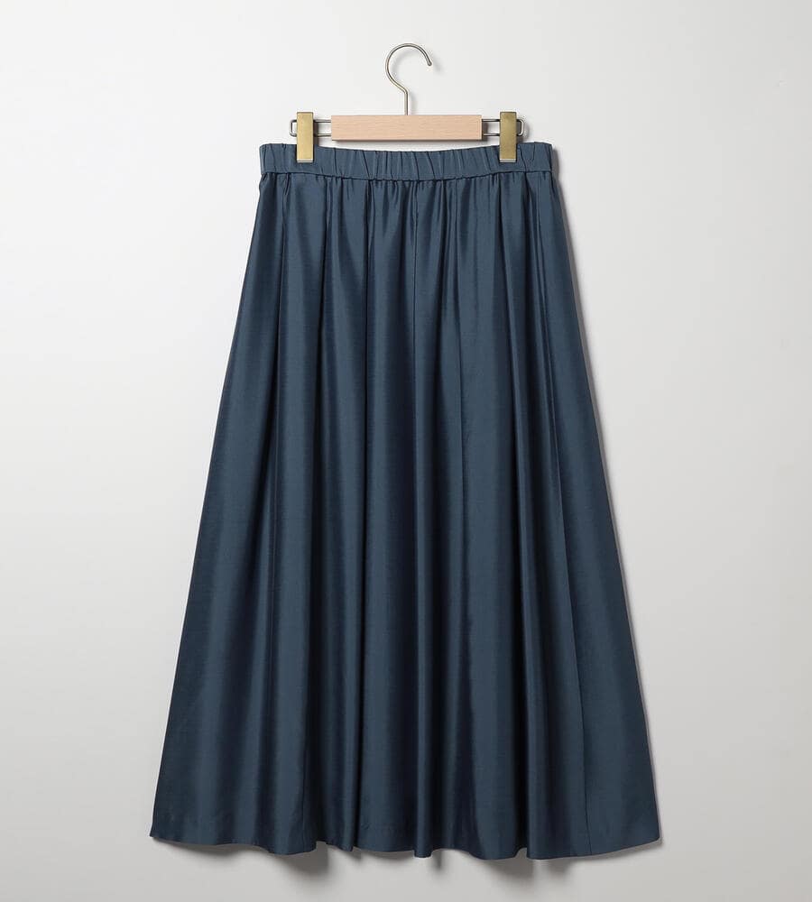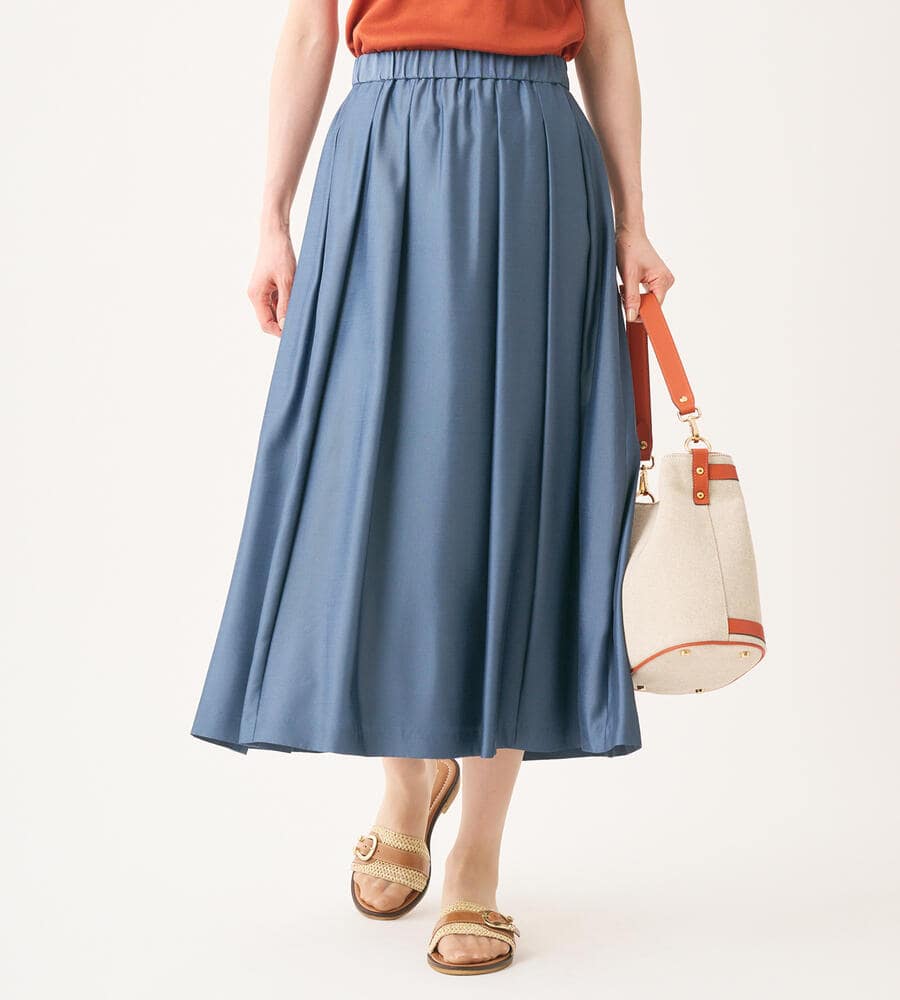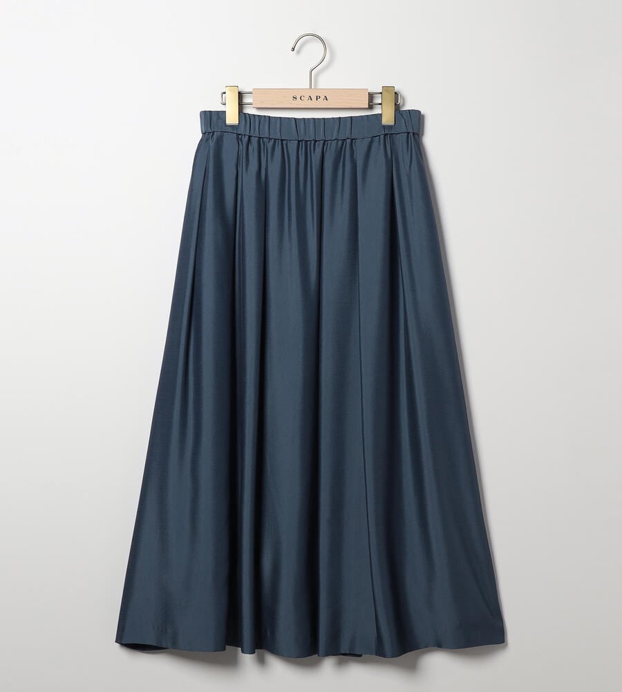 独特の光沢を持つスムース素材を用いたスカート。こまやかに揺れるドレープで、歩く姿を軽快かつ優美に映し出すアイテムです。ウエストをゴム仕立てにしており、リラックス感のある穿き心地を味わえるのも魅力。ふんわりとしたトップスの裾をインさせると、よりバランスの取れた着こなしを楽しめます。膝が隠れる程度の着丈で、エレガントに仕上げています。