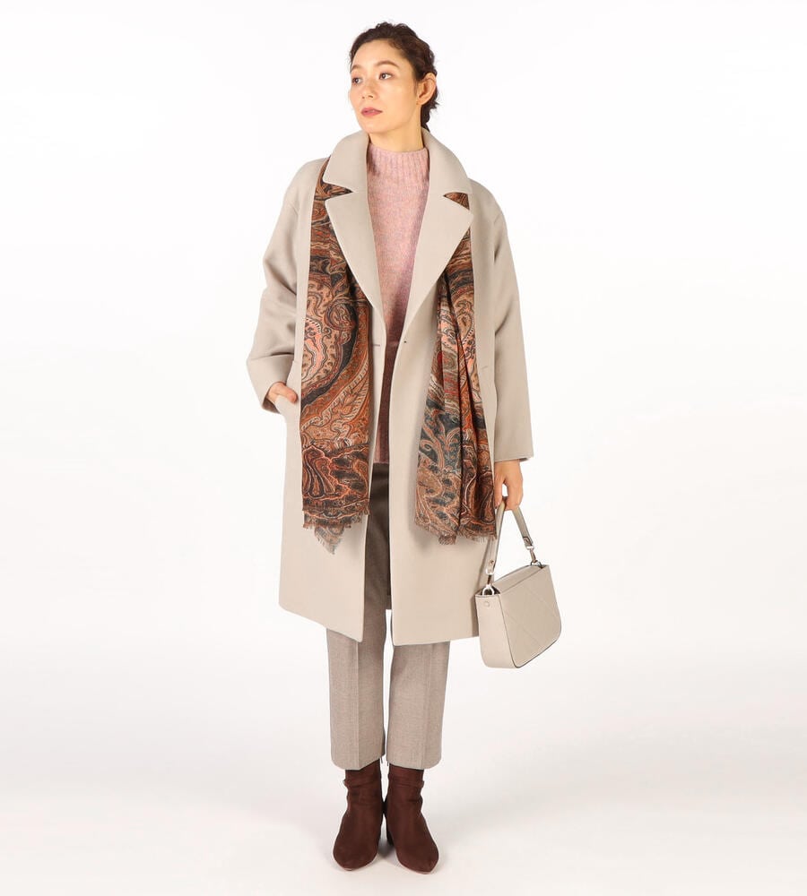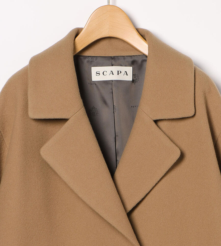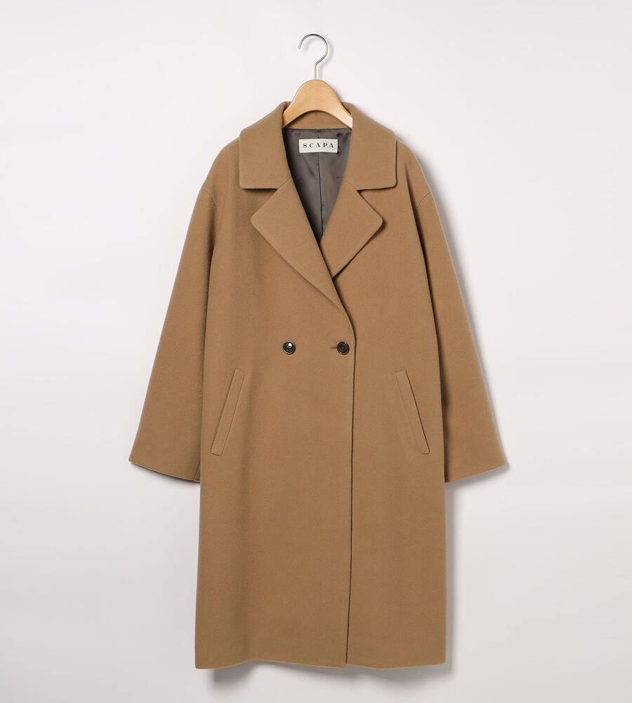 大きめシルエットがトレンド感あるシルエットのコート。フェルトの様にやわらかで、保温性の高いメルトンウール生地で仕立てた秋冬シーズンらしいあたたかな素材感。ブランドロゴ入りのボタンなど細部までこだわりを感じるデザインディテール。スタイリッシュで旬なお出かけコーディネートが完成するアイテムです。