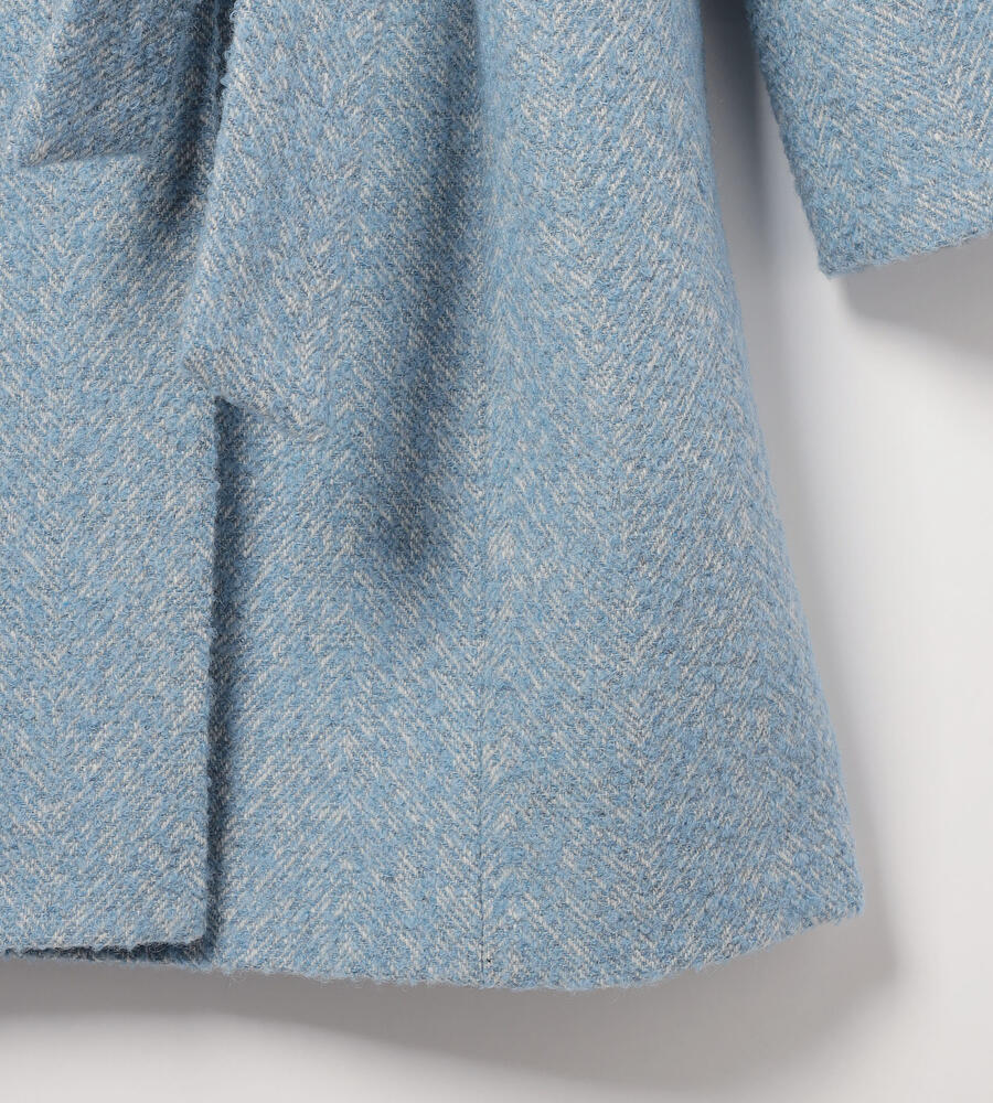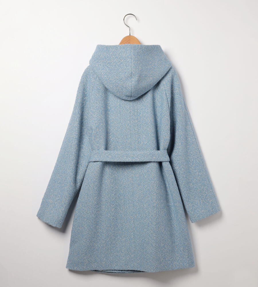 エアリーヘリンボーンの生地感と淡いカラー使いでクラシックモダンな雰囲気を醸したフーデットガウンコート。さらりと羽織れるゆとりのあるシルエットからコンフォートなムードが漂います。お好みでウエストベルトをきゅっと結べばメリハリのあるスタイリングが完成。