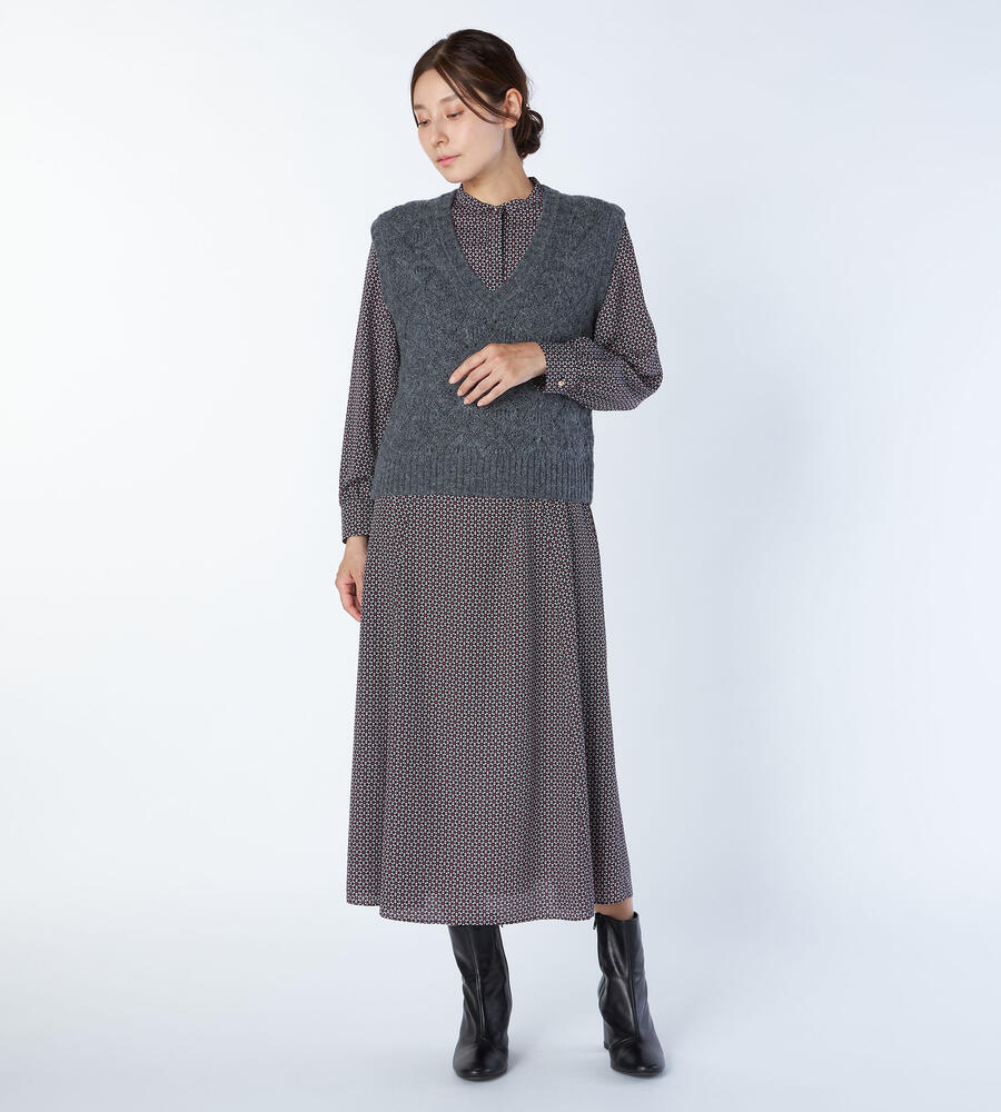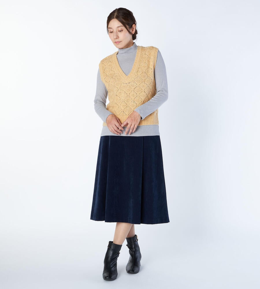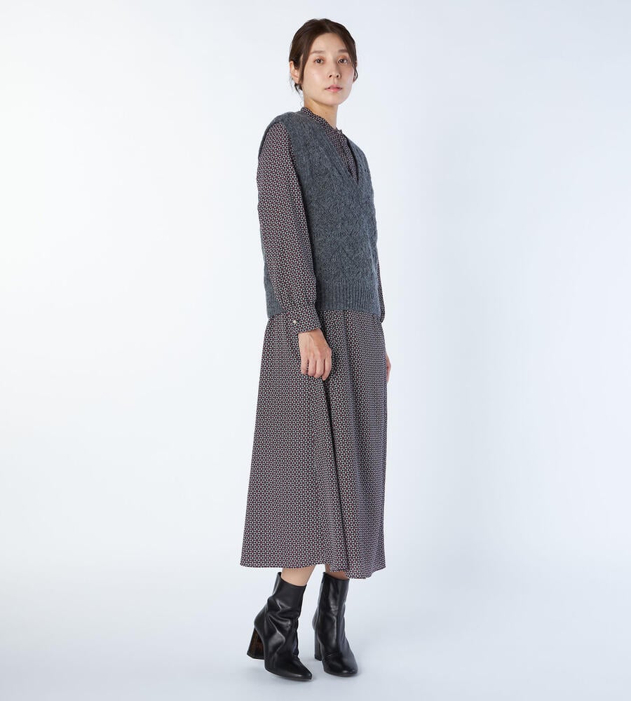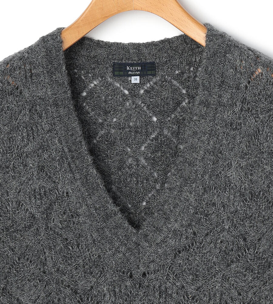 ナイロンをベースにアルパカやウールなどを織り交ぜ、温もりたっぷりに仕上げたニットベスト。レースのような繊細でロマンティックな柄使いで、着こなしをフェミニンに彩ります。インに合わせるトップスが映える、コンパクトなサイジング。シンプルなスタイリングに合わせるだけで、季節感たっぷりの愛らしいコーデが完成します。