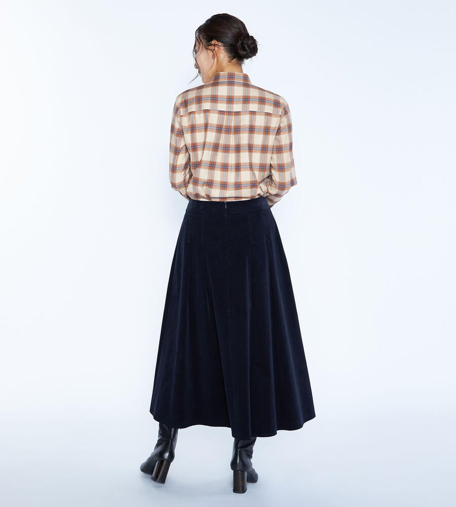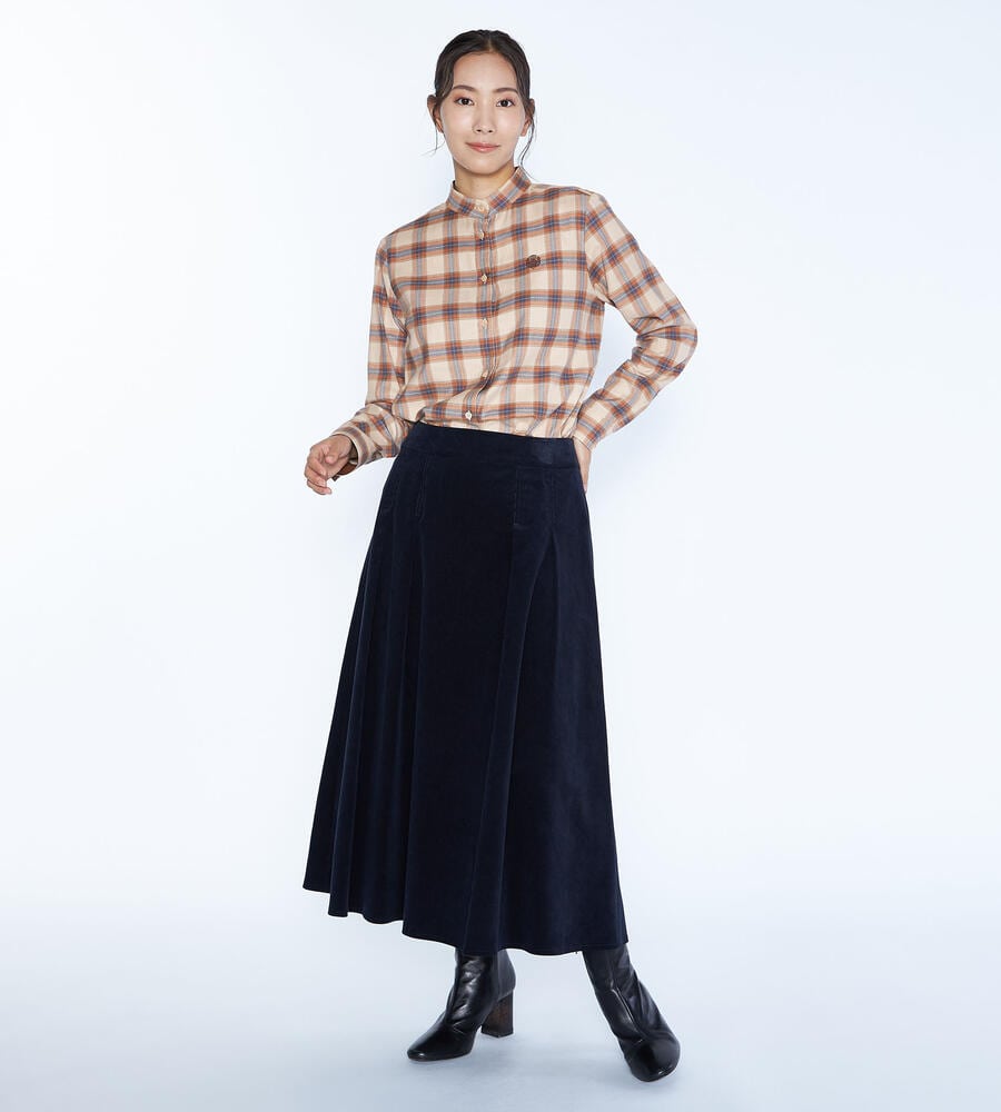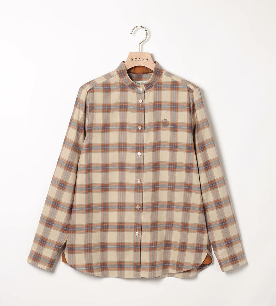 優しい風合いを持つコットンのネル風素材を用いたブラウス。クラシカルなチェック柄を載せて、素朴な温もりがあふれる空気感に仕上げています。幅の広いバンドカラーを採用することで、カジュアルながらもきれいめな印象に。ロングスカートなどを合わせると、より今年らしい着こなしを楽しめます。
