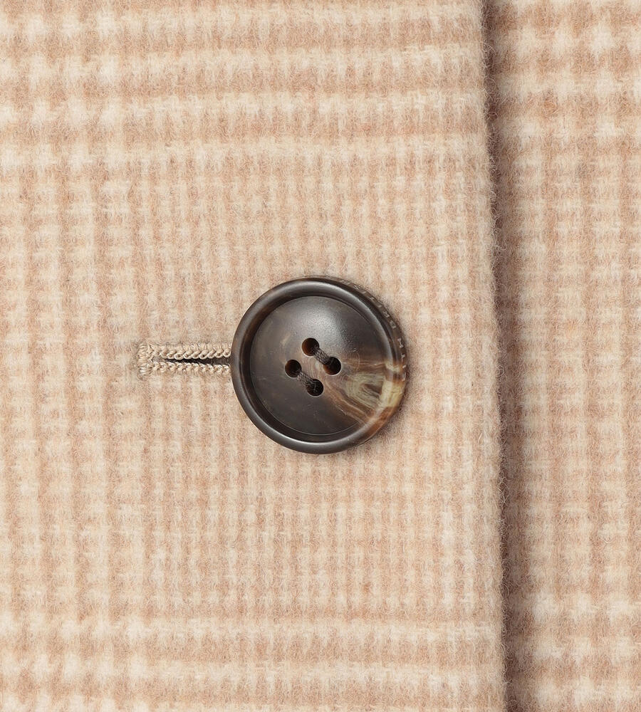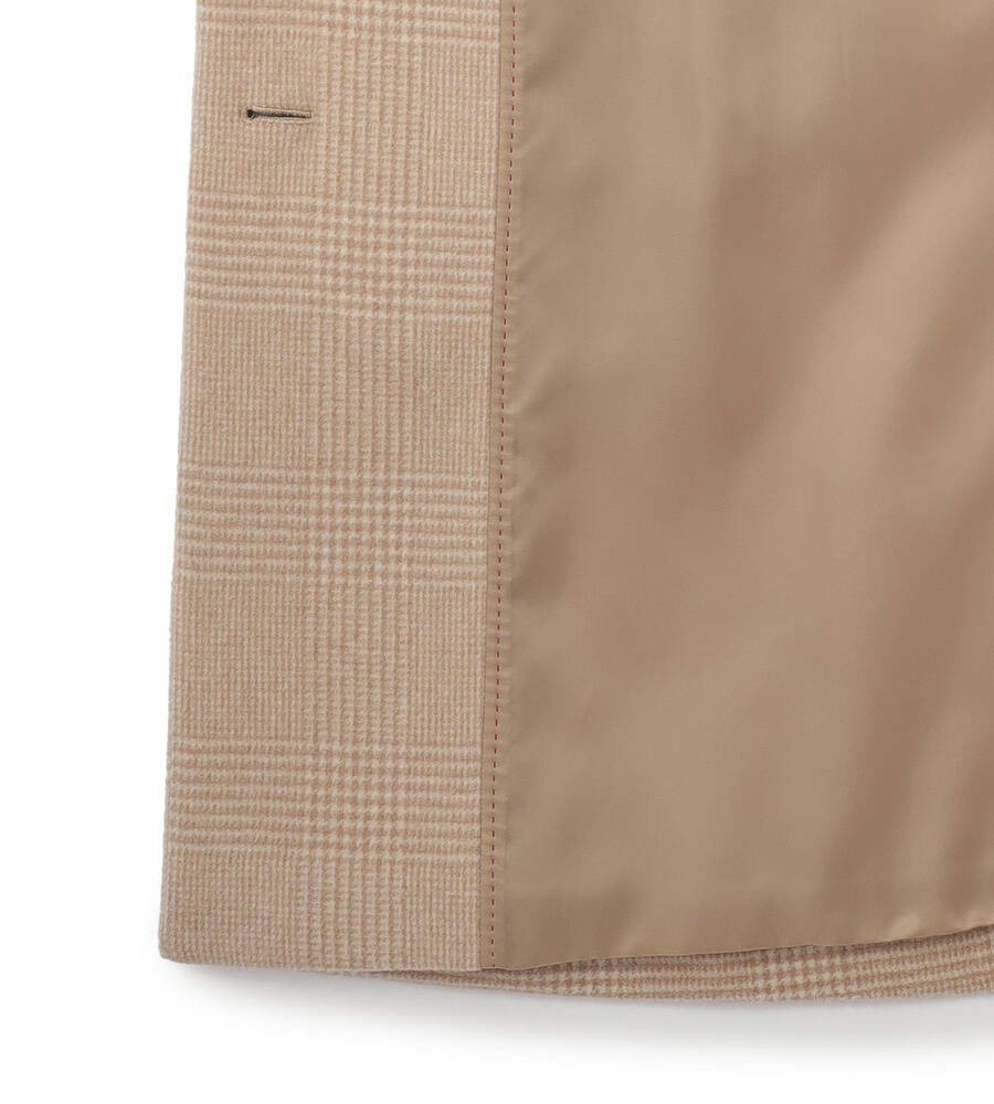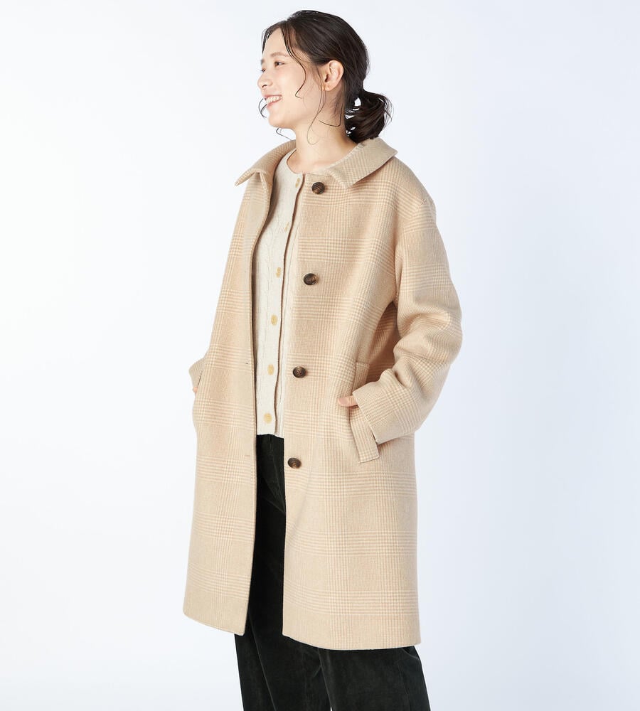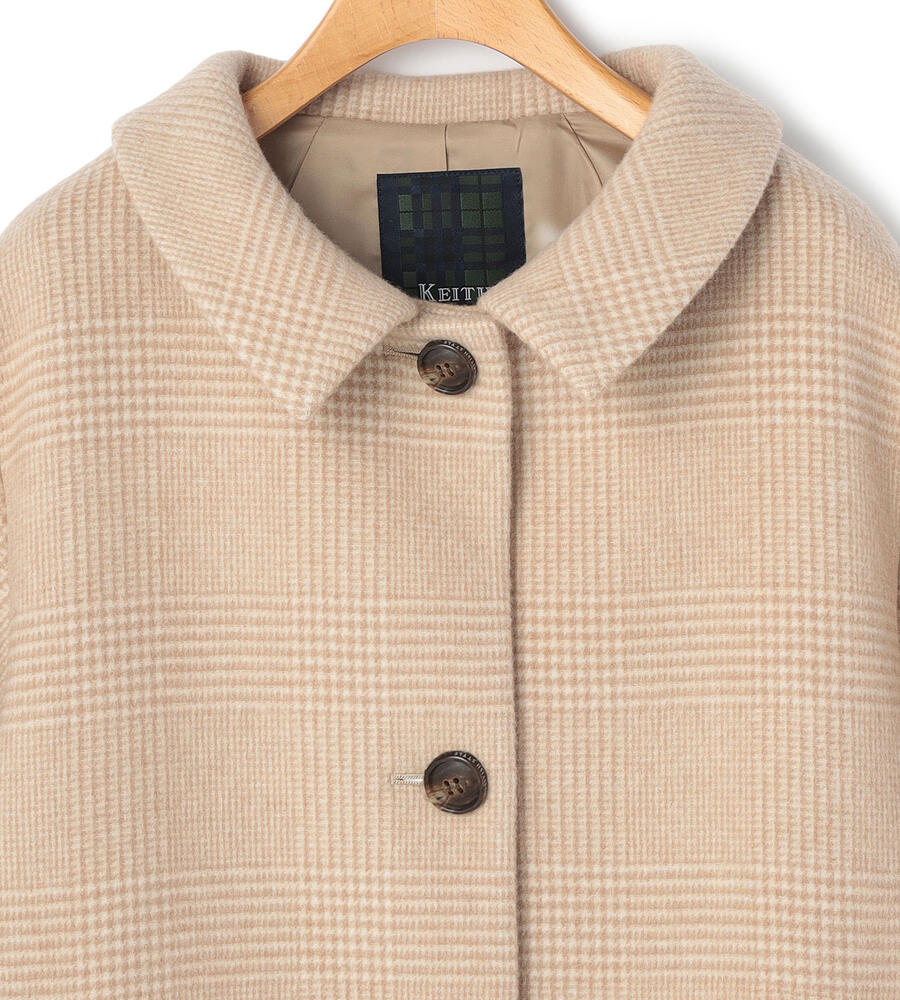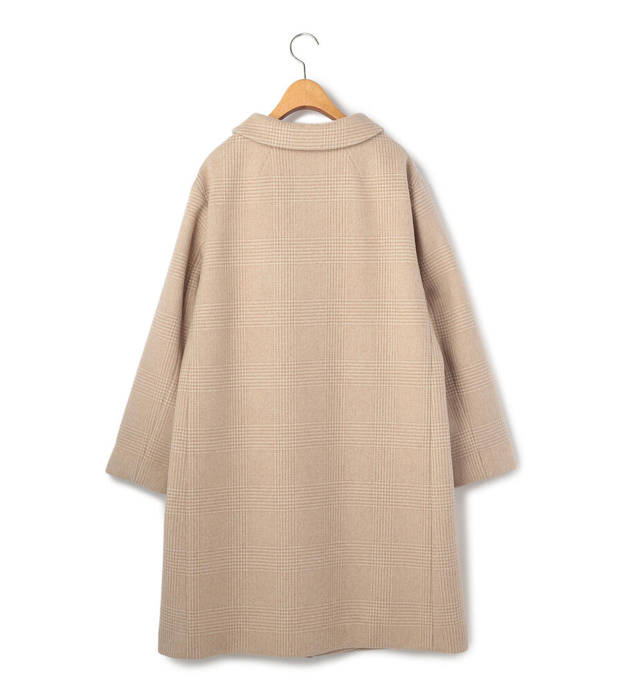 トラッドなチェック柄でシーズンムードを高めたジーロンラムコート。大人フェミニンなムード漂う衿のデザインがポイント。腰まわりをカバーする着丈、やわらかな素材感で暖かく包み込んでくれるコンフォートな着心地も魅力です。左右にポケットを配置、ボタン側面にはさりげなく刻印がほどこされています。