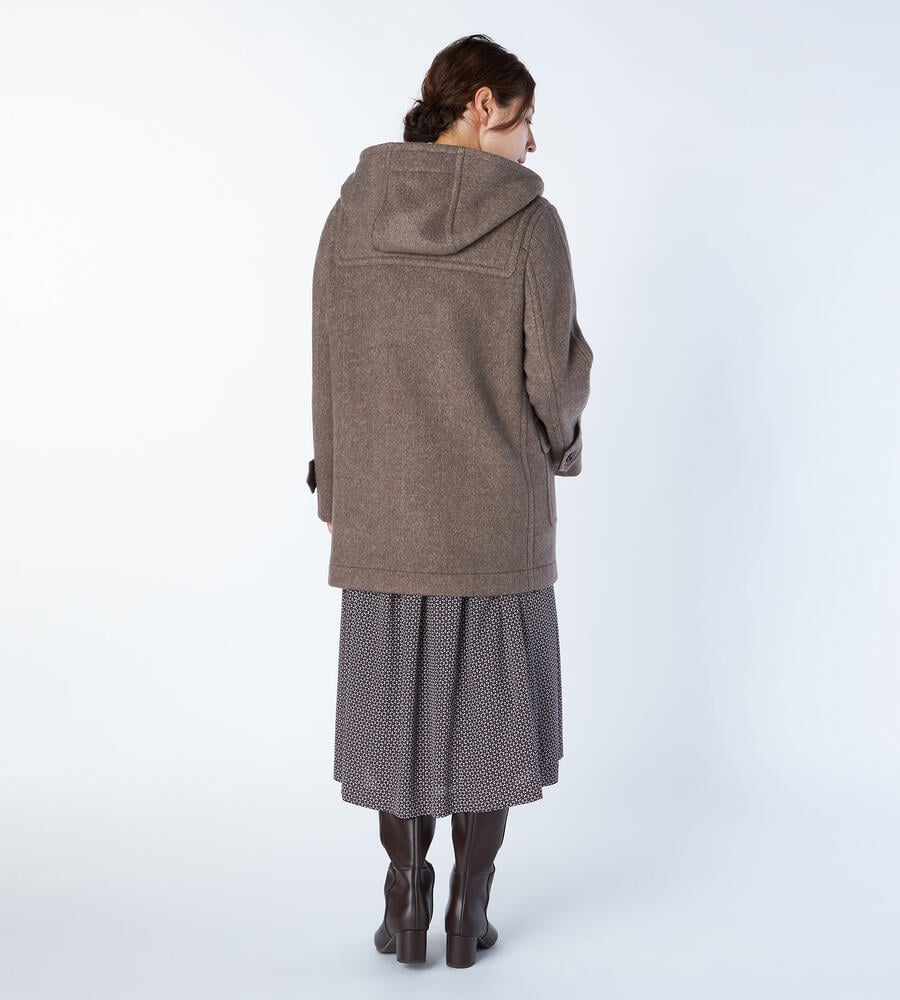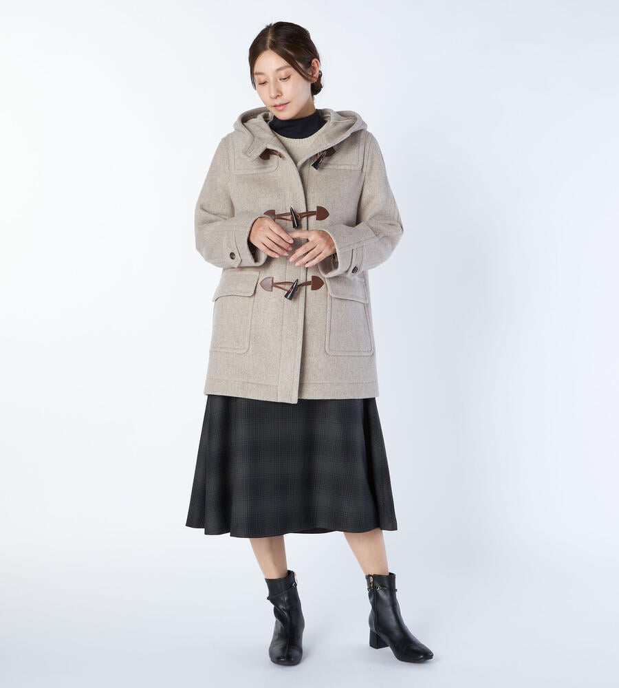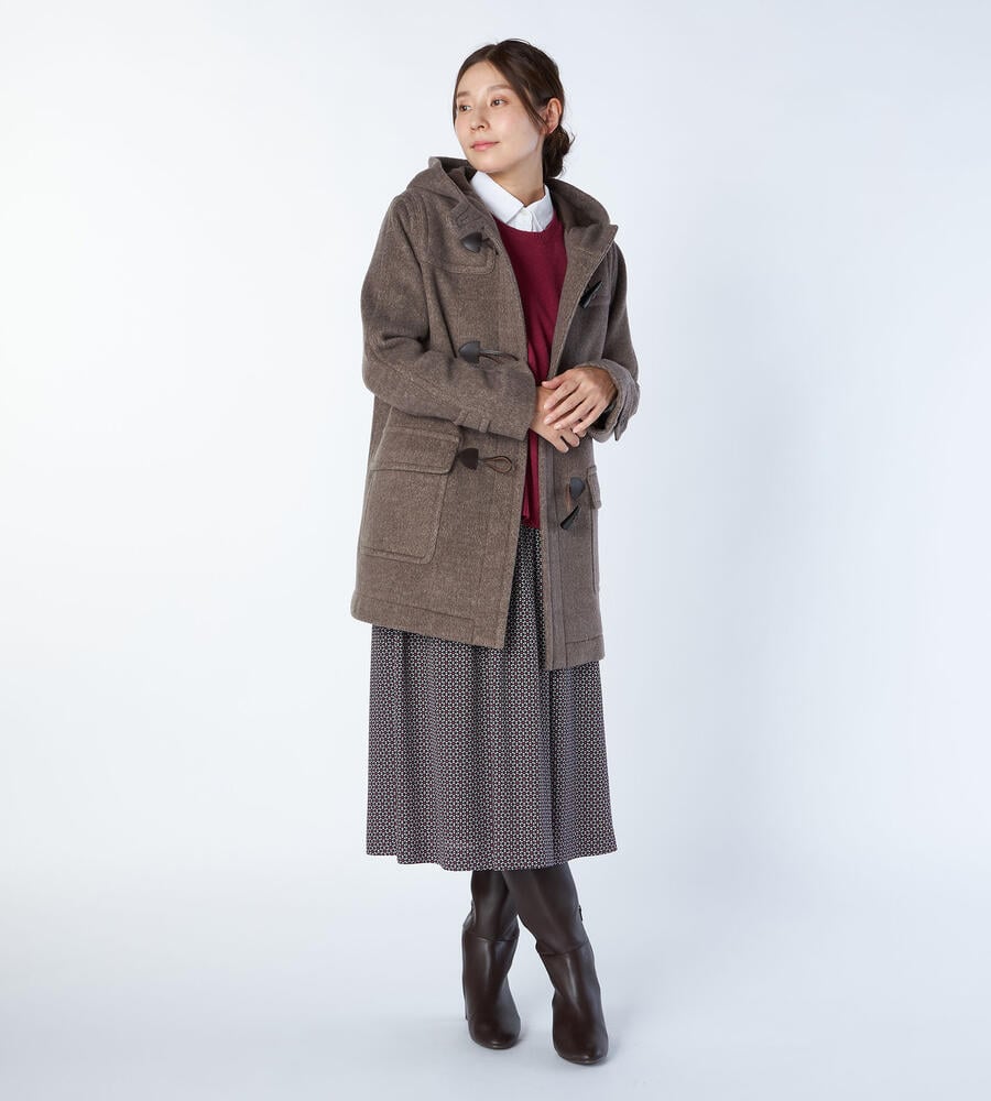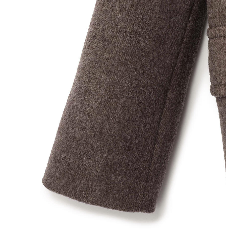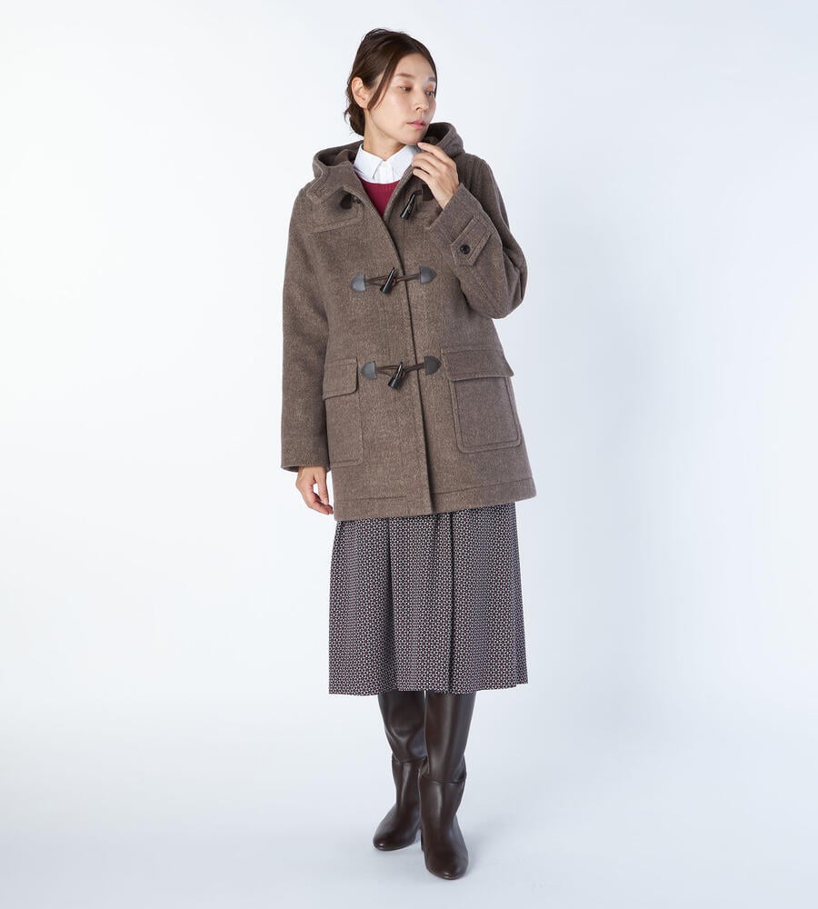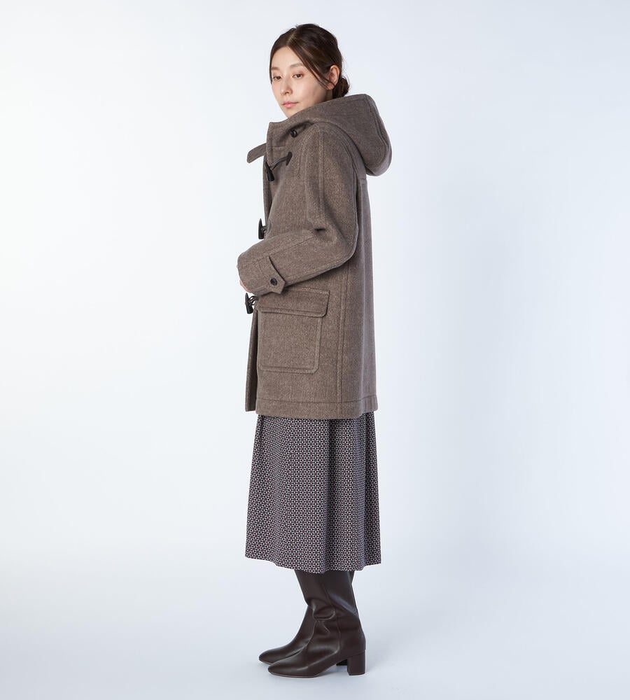 秋冬シーズンに愛用したくなるクラシックなデザインのダッフルコート。表情豊かなヘリンボーン柄でエレガントに仕上げたアイテムです。腰まわりをカバーする着丈が暖かく、コーディネートバランスの取りやすいシルエット。左右に配置したフラップポケットがアクセントになっています。