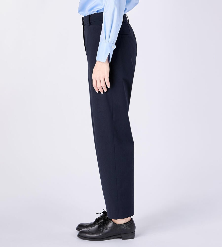 適度なハリ感としなやかな生地感が魅力のステートリーサージ パンツ。履きこなしやすいシンプルなストレートシルエット。上質さとカジュアルさを併せ持ち、様々な着こなしにマッチする、オン・オフ問わない汎用性の高いデザイン。きちんと感がありながらウエスト後ろはゴム仕様で履き心地楽なのもポイントです。