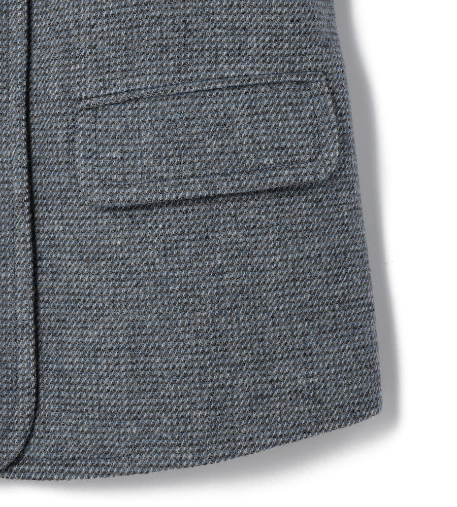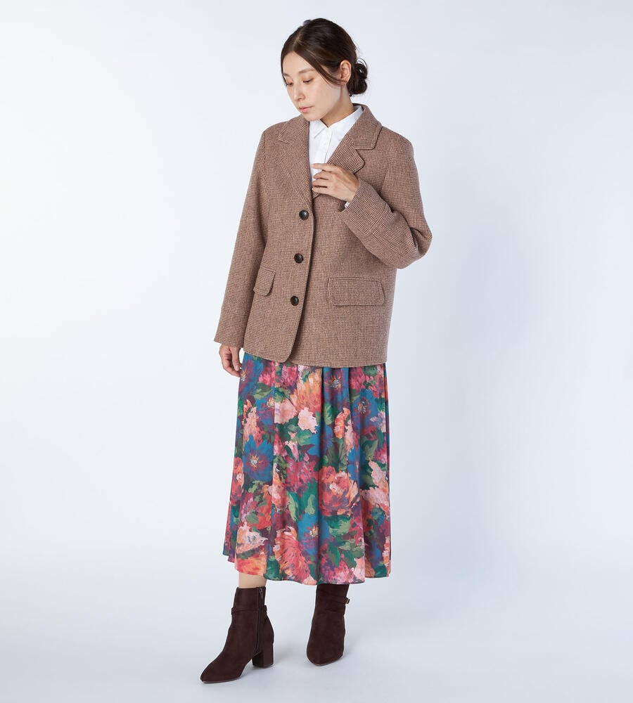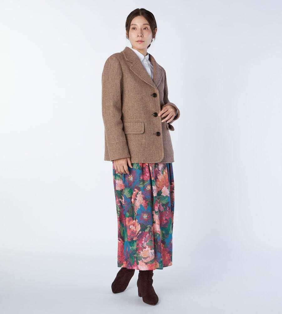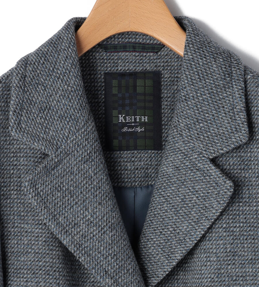 ブリティッシュウールを使用した、正統派の風格溢れるツイード素材のジャケット。ピーコートを思わせる広いラペルで、ジェントルな印象を備えた1点です。しっかりとした地厚の生地は、冬のアウターとして十分な暖かさ。同素材のスカートを合わせたセットアップスタイルもお楽しみいただけます。