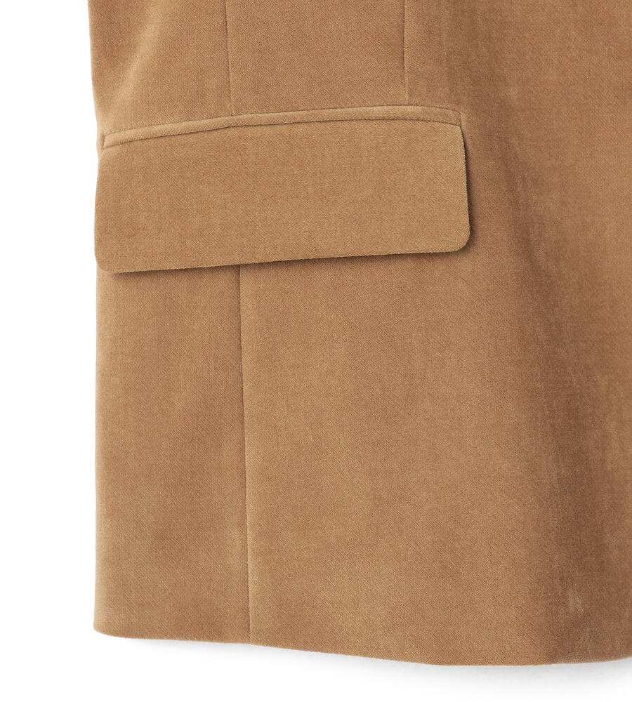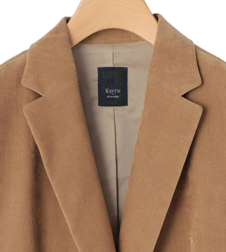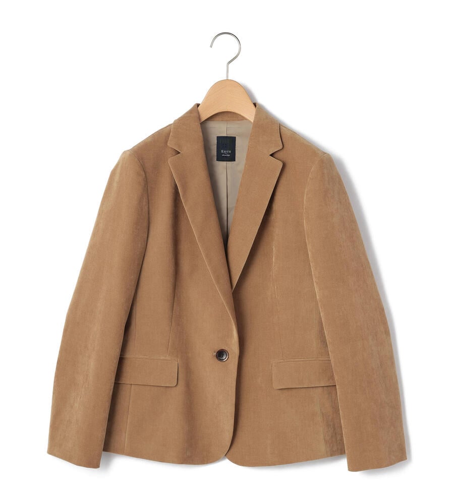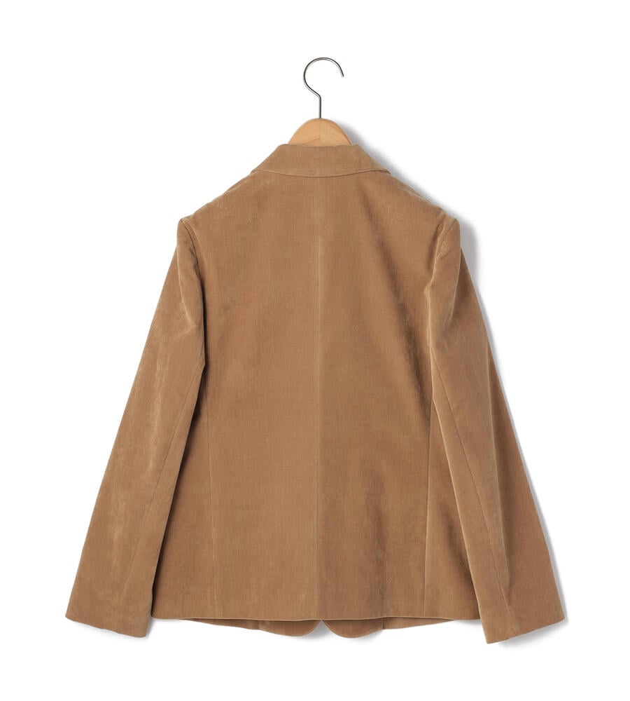 上品な起毛感と光沢感を併せ持つ別珍素材のジャケット。ノッチドラペルを採用したワンボタンタイプで、クラシカルな装いを演出します。少し着丈が短めで、バランスの取れた着こなしを楽しめるシルエット。装いに秋冬らしい深みをもたらすアイテムです。フロントを開けてラフに羽織るスタイルがおすすめです。
