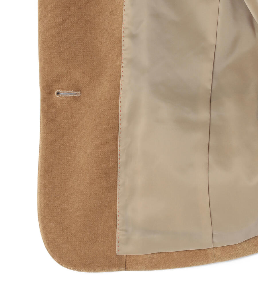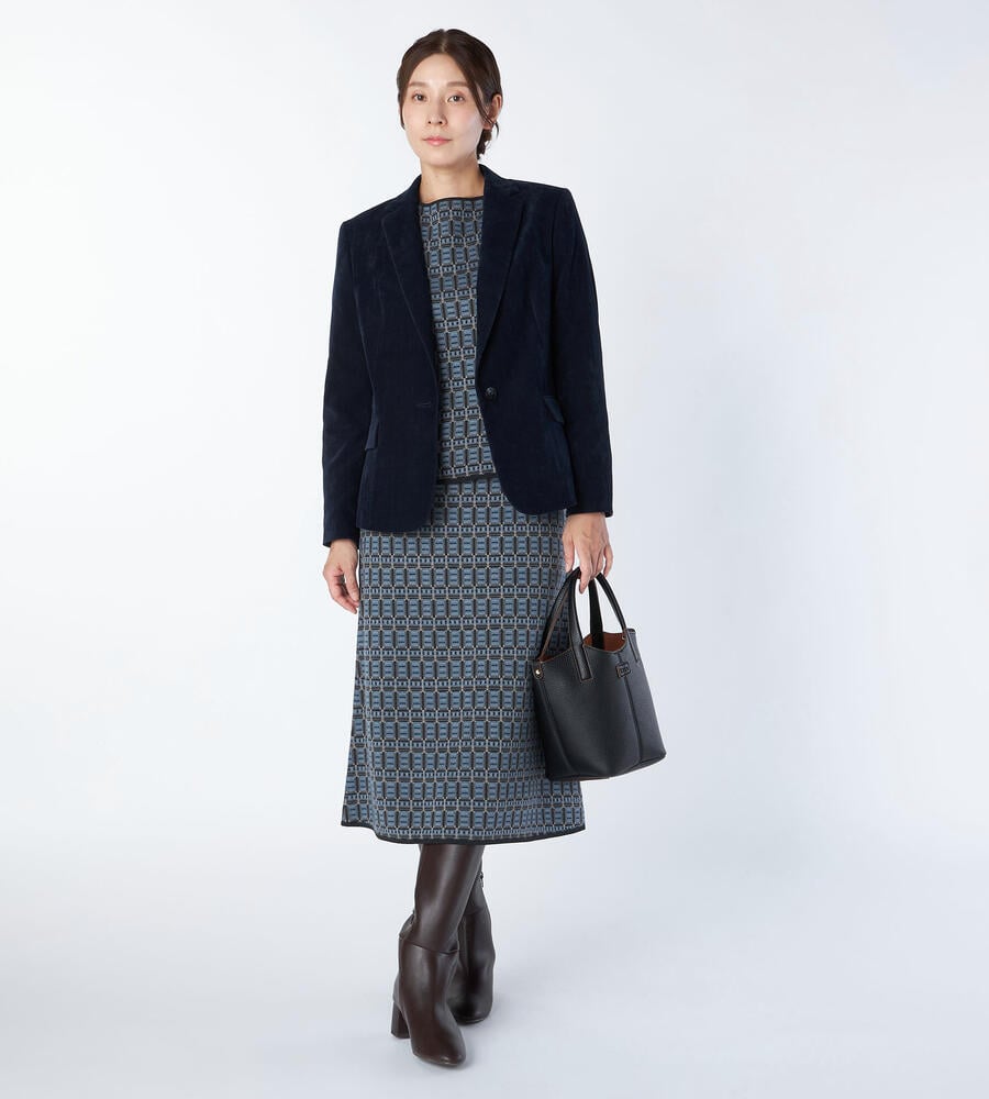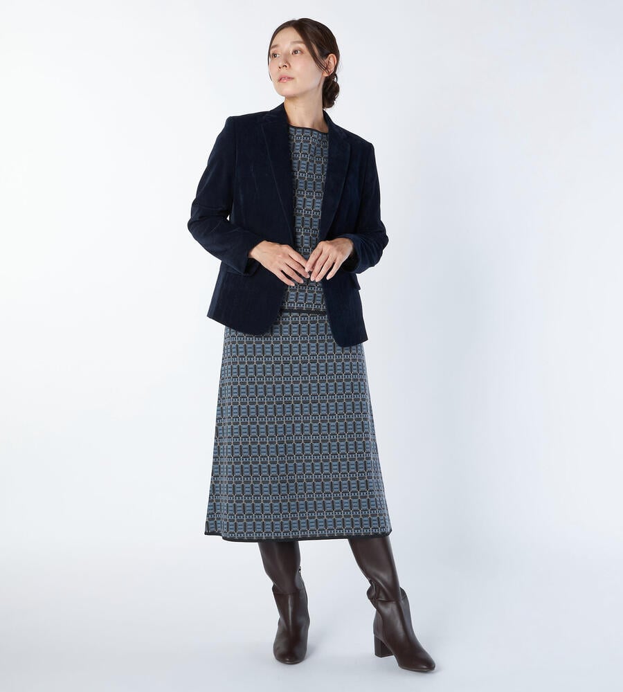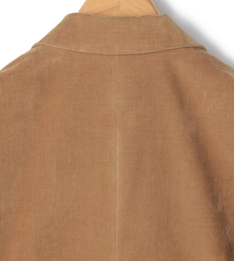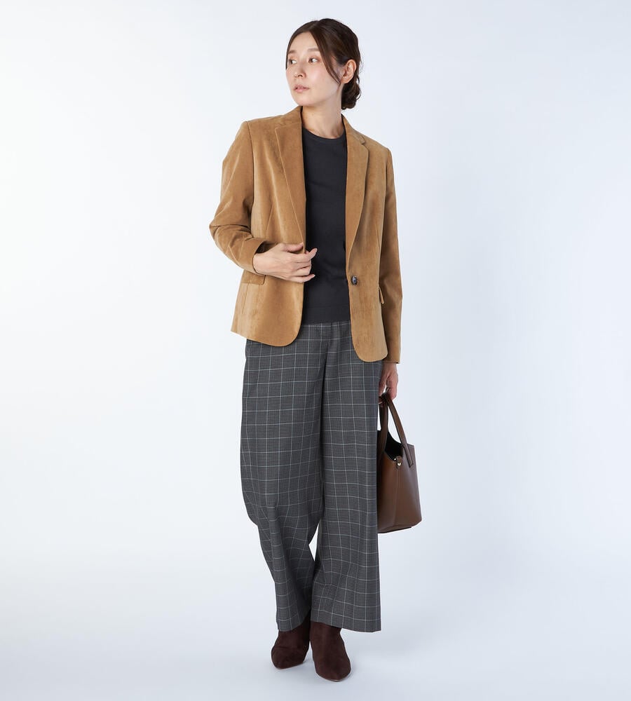 上品な起毛感と光沢感を併せ持つ別珍素材のジャケット。ノッチドラペルを採用したワンボタンタイプで、クラシカルな装いを演出します。少し着丈が短めで、バランスの取れた着こなしを楽しめるシルエット。装いに秋冬らしい深みをもたらすアイテムです。フロントを開けてラフに羽織るスタイルがおすすめです。