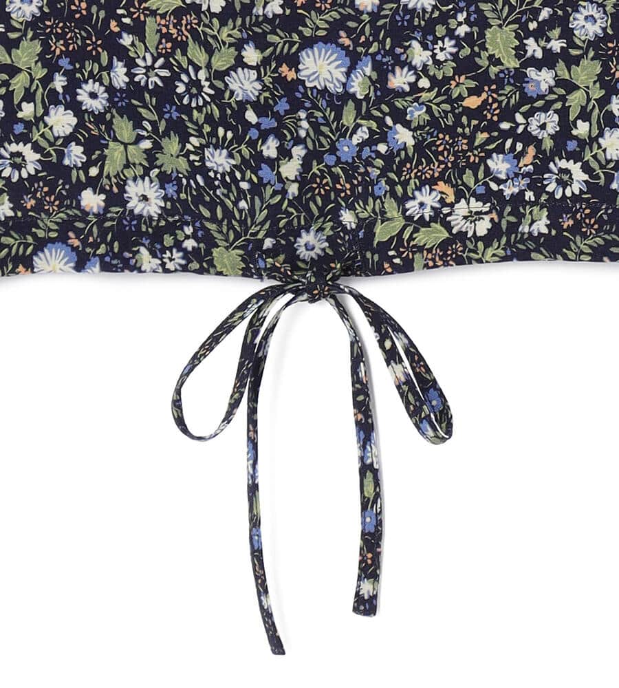 キュプラ×レーヨンのジャージー素材を用いたブラウス。花咲く庭園のような華やかさを持つ小花柄が目を引くアイテムです。裾をドローコードで絞れるタイプで、バランスの取れた着こなしを演出。袖丈も長すぎないため、すっきりとしたスタイリングを楽しめます。小花柄の甘さを程よく抑えるバンドカラーもポイント。