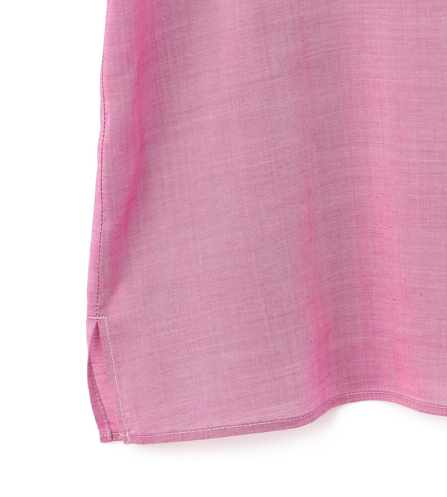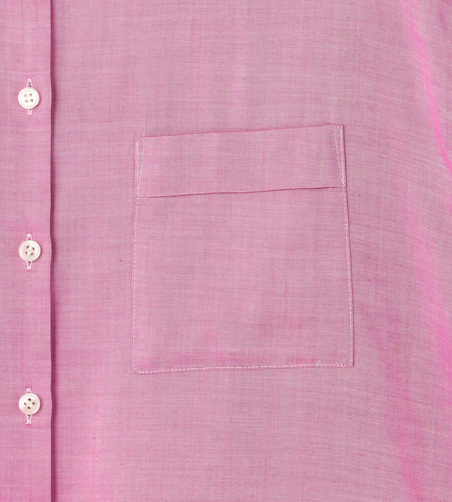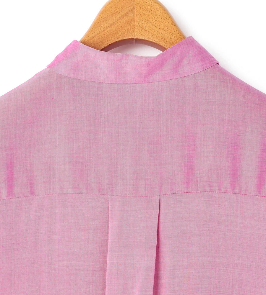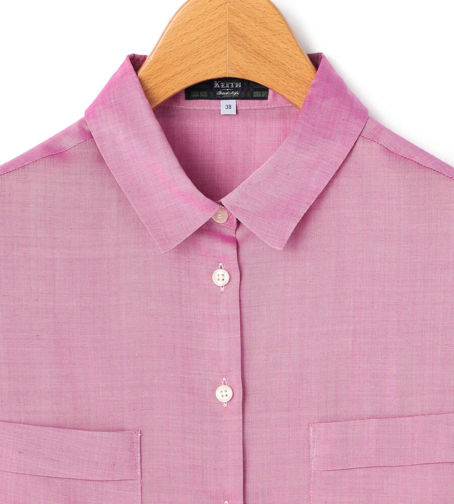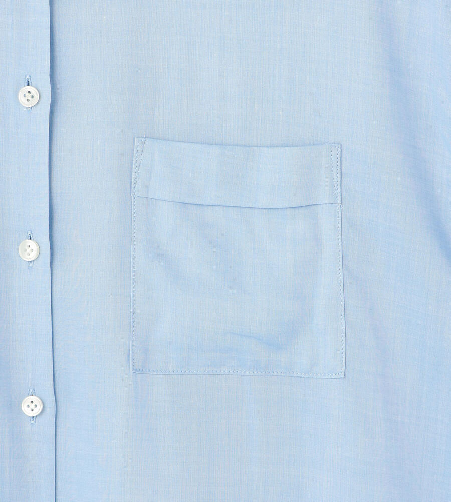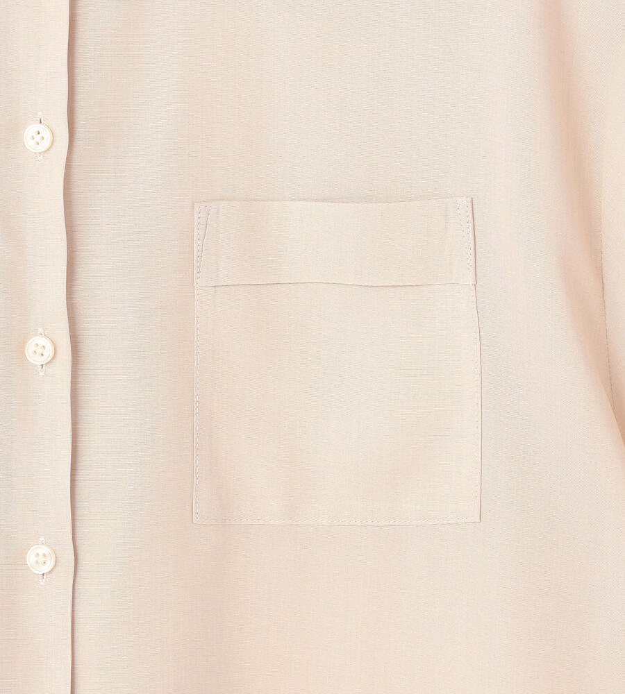 トレンドライクなバランスで着こなせる、すっきりコンパクトな着丈のキュプラブラウス。小ぶりなホワイトボタンが軽やかさをプラスし、胸もとに配置したポケットがアクセントに。裾サイドにあしらったスリットで抜け感を与えています。ご自宅でお手入れのできるウォッシャブル仕様です。