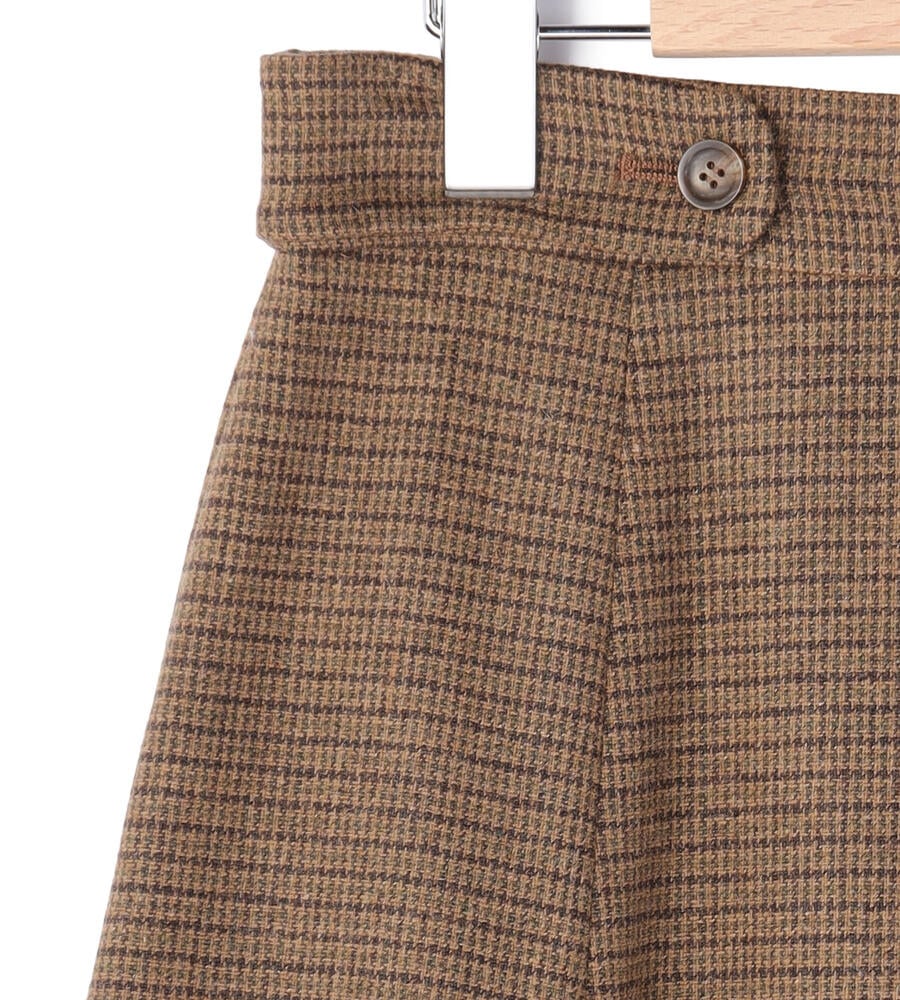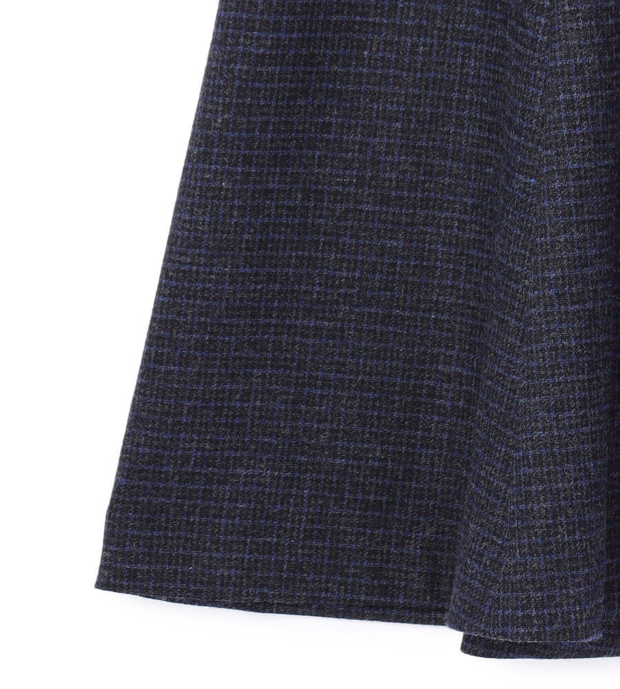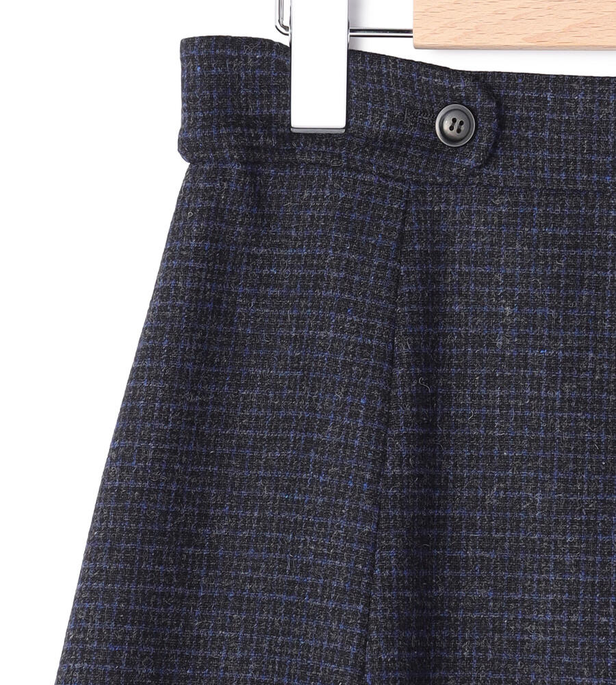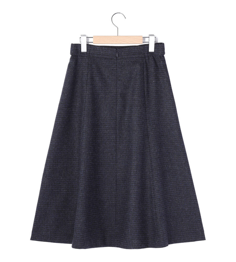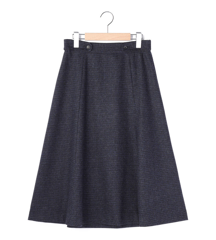 ウール混合生地で仕立てた暖かな風合いのミディ丈スカート。クラシカルなムードのガンクラブチェック柄がスタイリッシュなデザイン。ボタン付きのサイドベルトもおしゃれなアクセント。フレアに広がるシルエットとドレープ感がフェミニンなデザインポイント。毎日の秋冬コーディネートで活躍するアイテムです。
