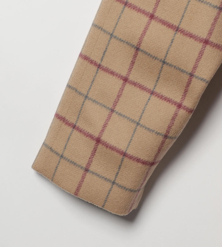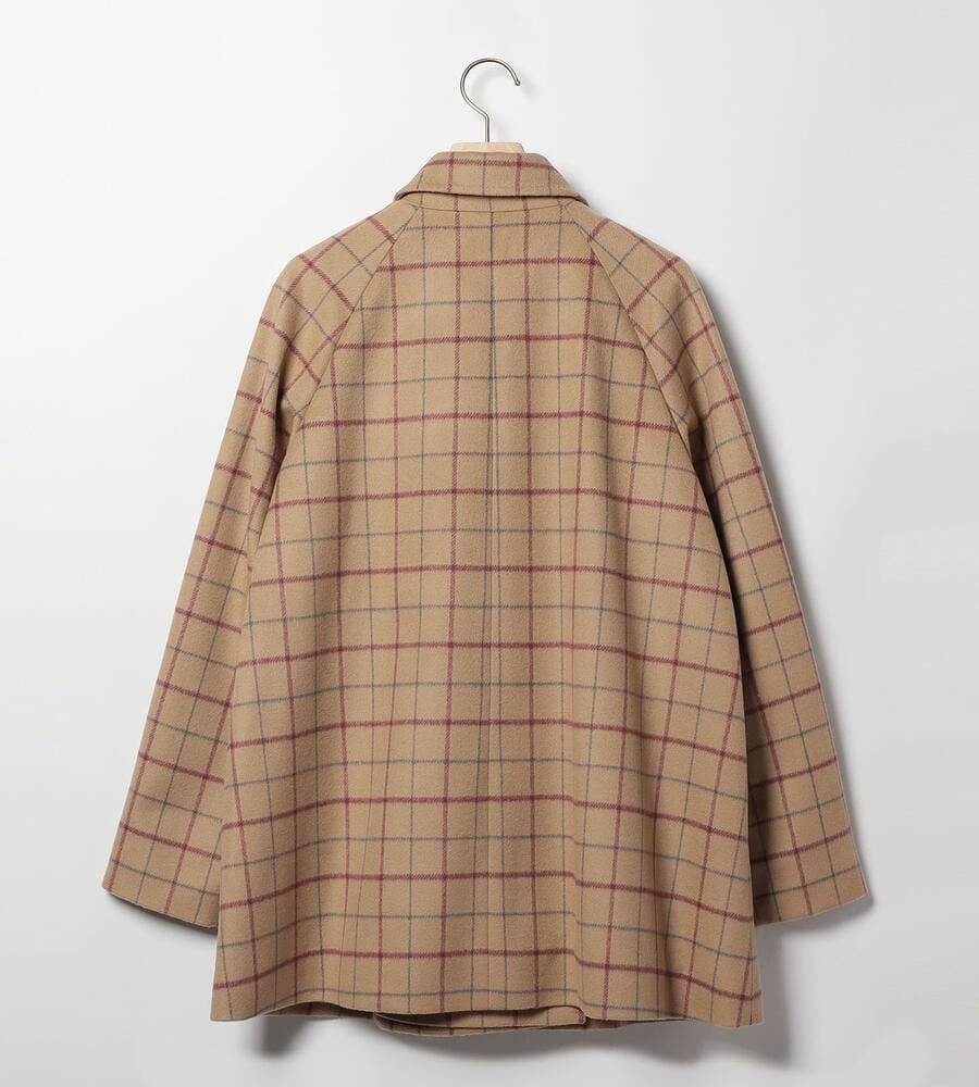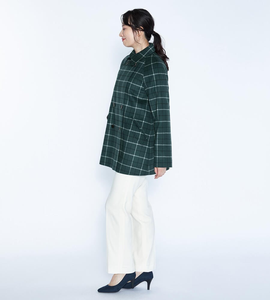 ウール100%で仕立てた、あたたかな肌触りのコート。着こなしやすいミディ丈。総チェック柄が暗くなりがちな秋冬シーズンのスタイリングのさりがないアクセントになるデザイン。丸みのある襟が愛らしさのあるディティール。便利なフラップポケット付き。スタイリッシュなお出かけコーディネートが叶うアイテムです。
