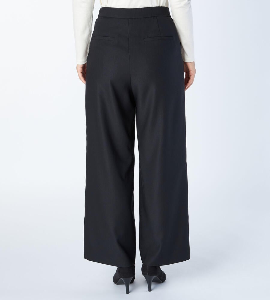 程よくゆとりのあるシルエットからコンフォートなムードが漂うパンツ。サイドにファスナーを配置することでフロントがすっきりとした印象に。ポケットはサイドとバックに配置し、フロントウエストにはステッチを施しました。同素材のジャケットとセットアップで着こなせるアイテムです。