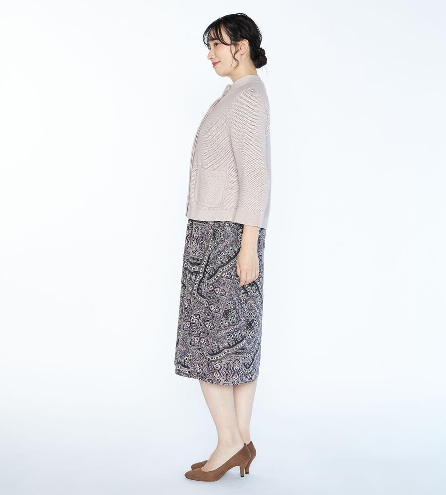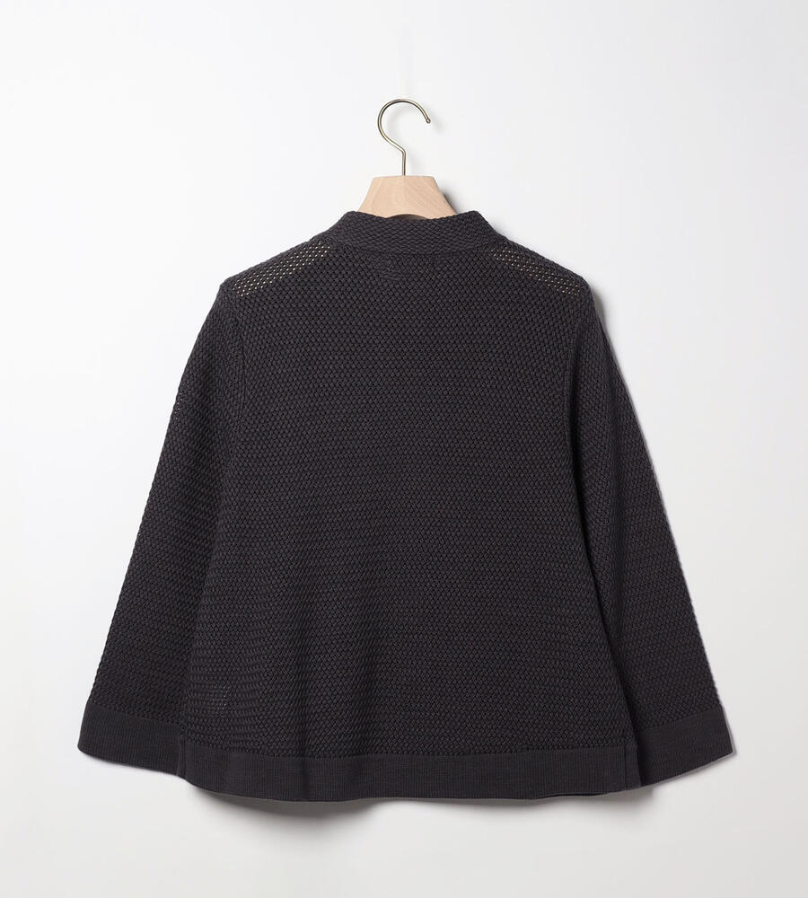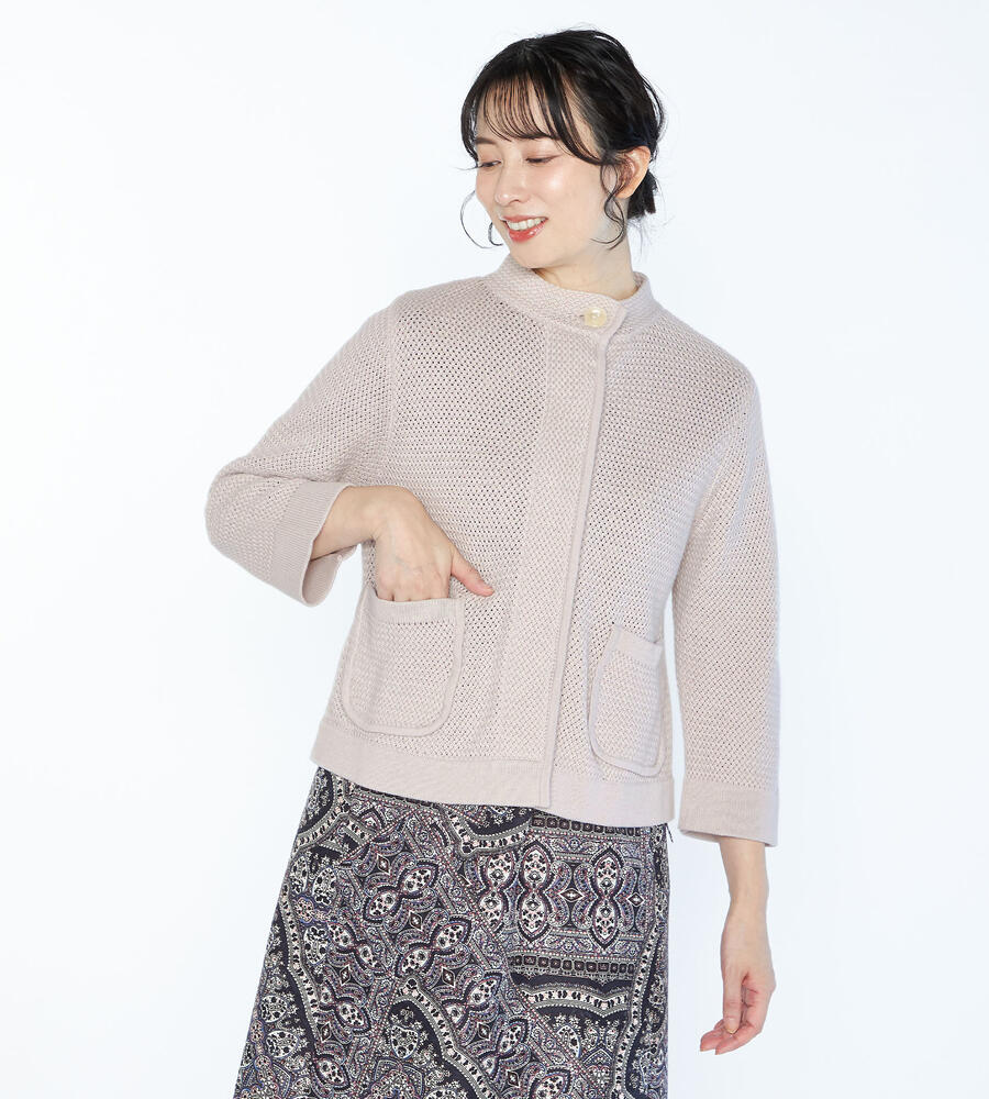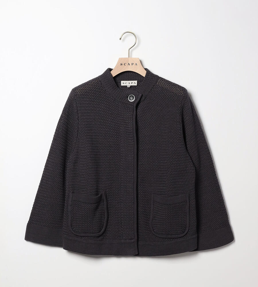 フロントポケットがアクセントになったカスタルニットジャケット。コットン100%素材のやわらかな肌触りが心地良く、1つボタンがワンポイントに。手首の見える袖丈が軽やかな印象です。コンパクトな丈感はボトムのデザインを選ばず、幅広いコーディネートに活躍します。