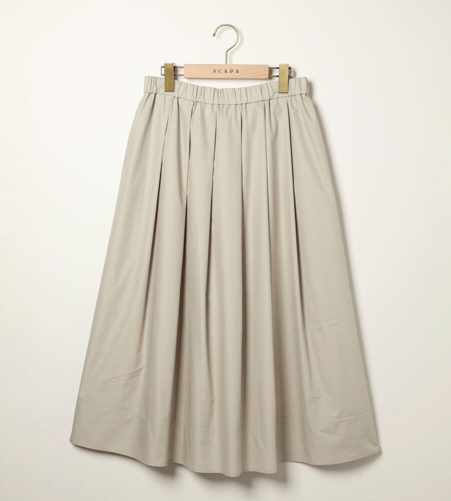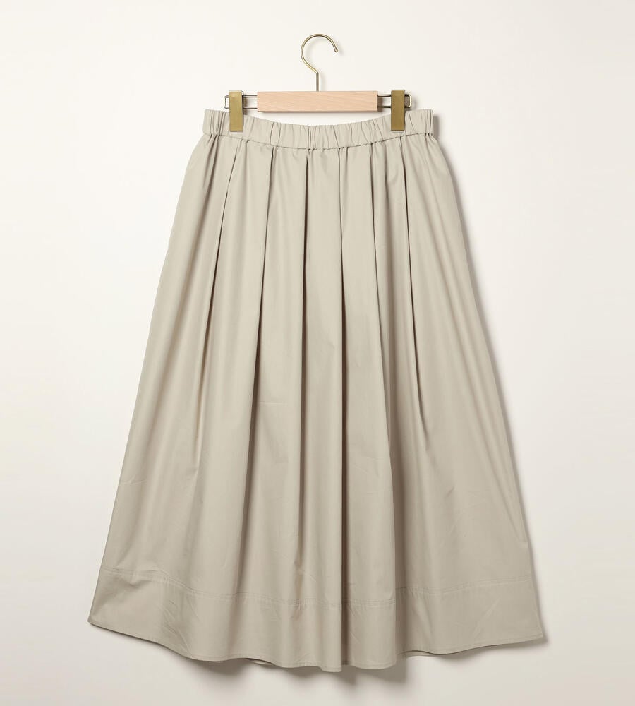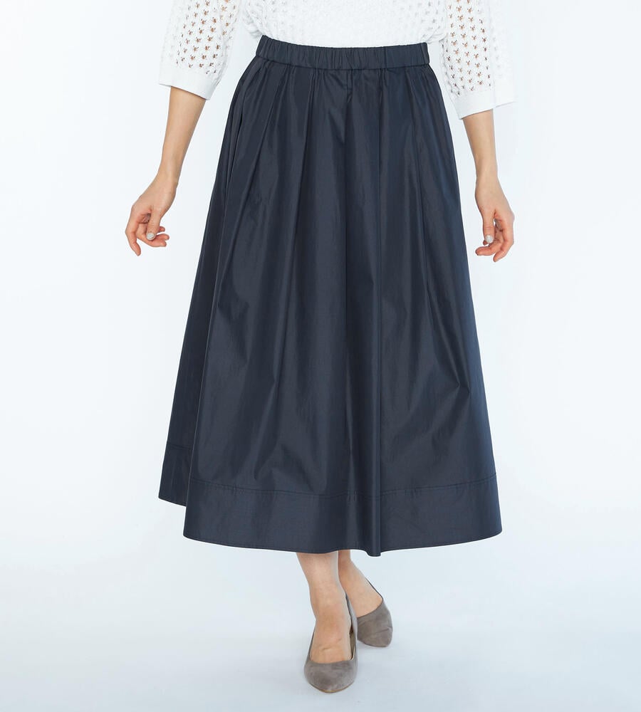 大人の気品と可愛らしさを持ち合わせた無地デザインのスカート。上品なハリと微光沢のある生地感、ふわりと広がるタックフレアシルエット、長めの着丈などがポイントです。ウエストは心地よいゴム仕様。それぞれの魅力が合わさり、特別な一枚に仕上がっています。カジュアルからキレイめまで着まわし力も抜群です。