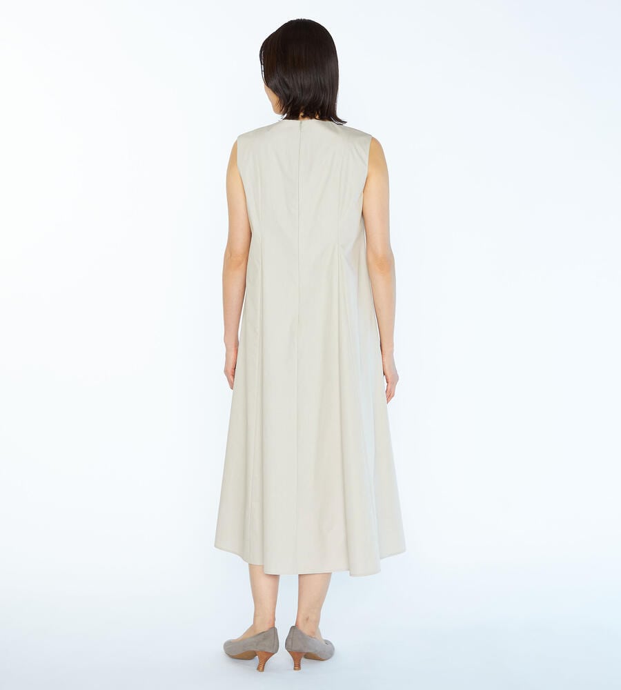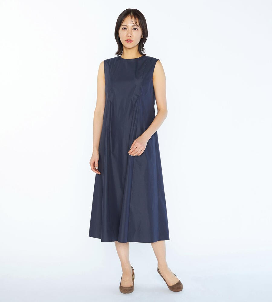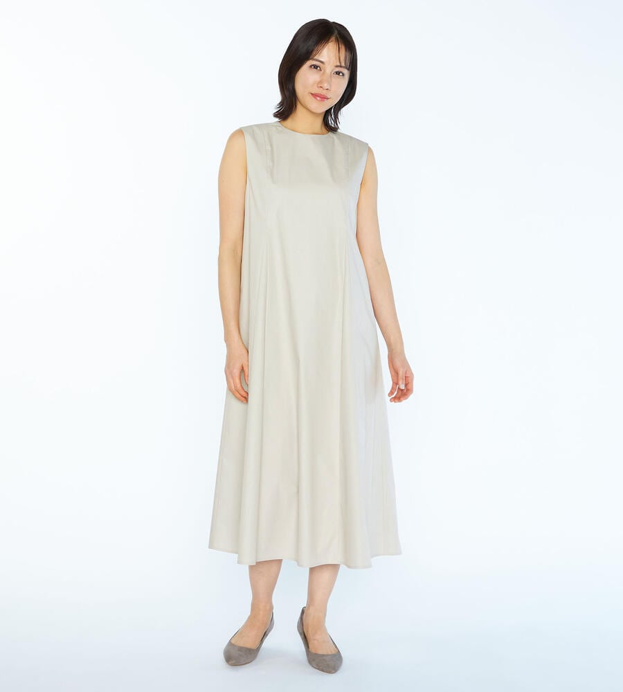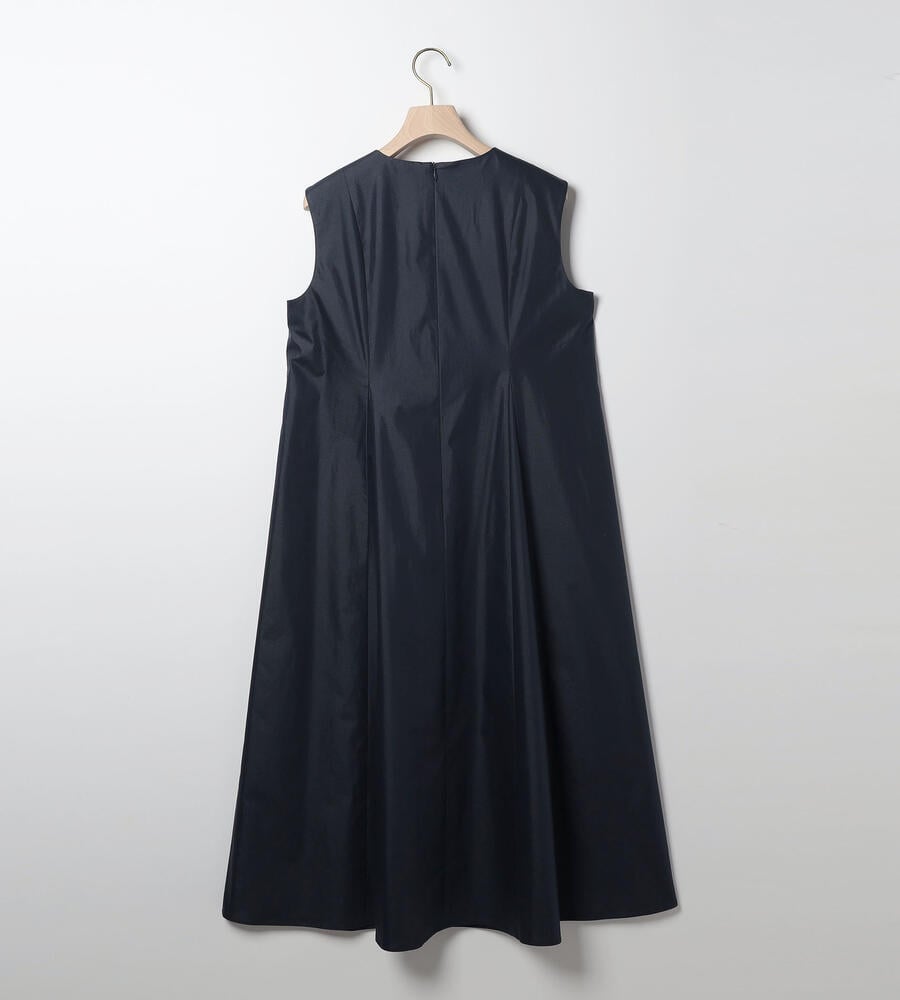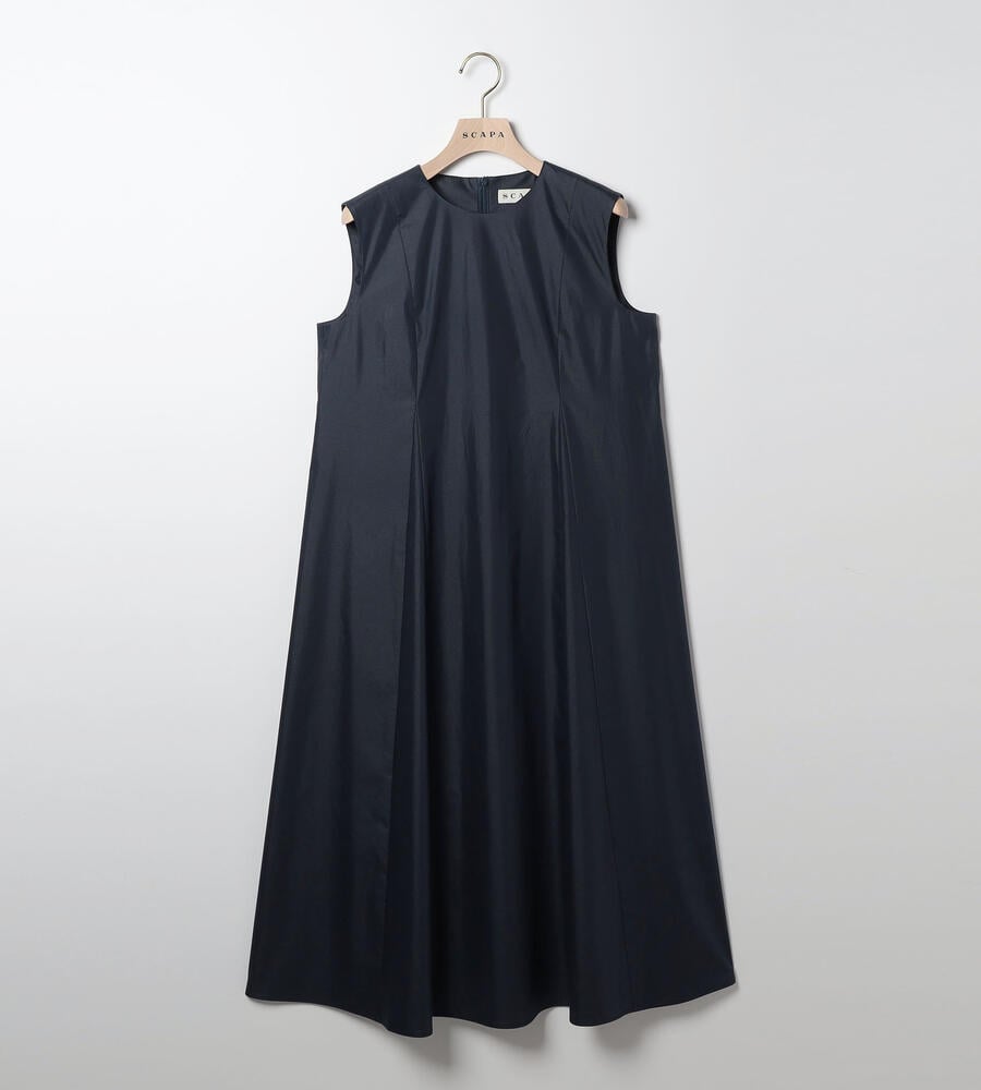 洗練された無地デザインのノースリーブワンピース。シンプルながら、ハリと微光沢のある生地感が気品を漂わせます。胸下のダーツ部分からふわりと広がるフレアシルエットは、体型をカバーしつつ大人の可愛らしさを演出。一枚着はもちろん、様々な羽織りや小物と相性がよく、幅広いスタイリングが楽しめます。