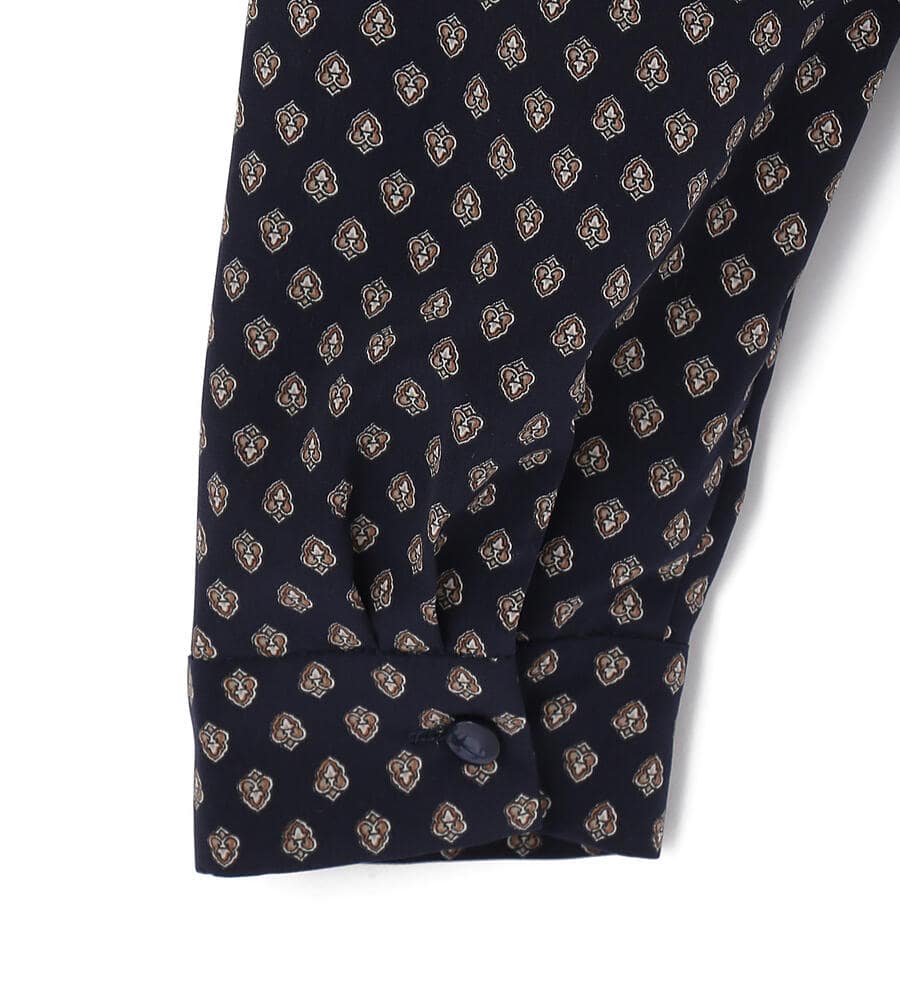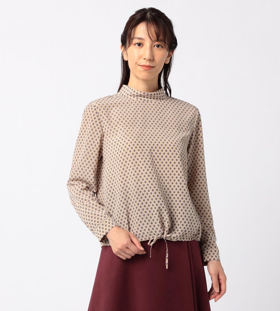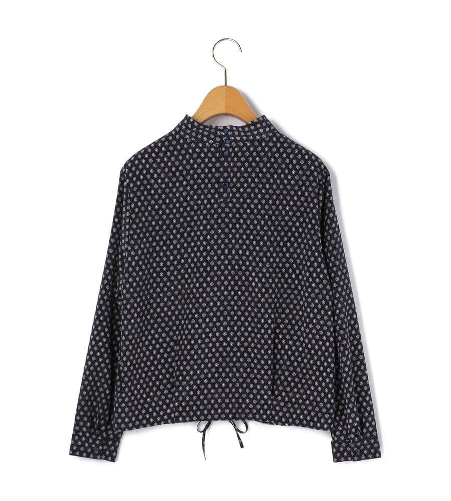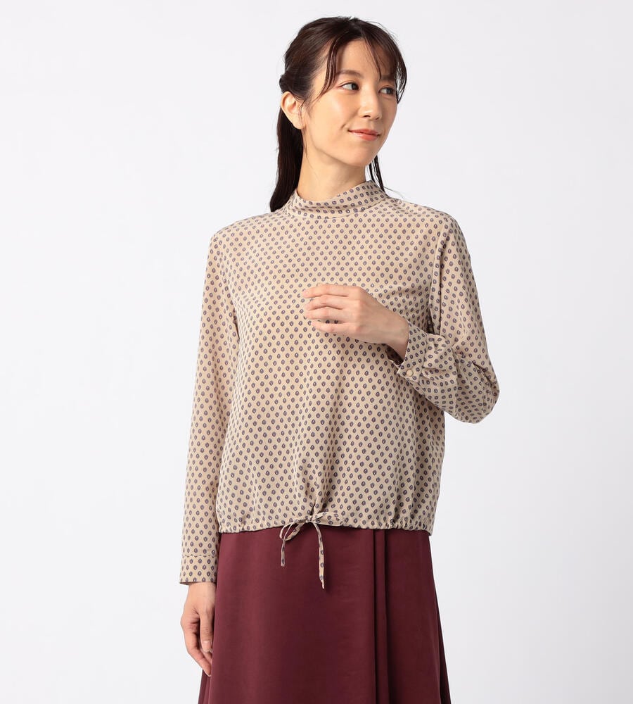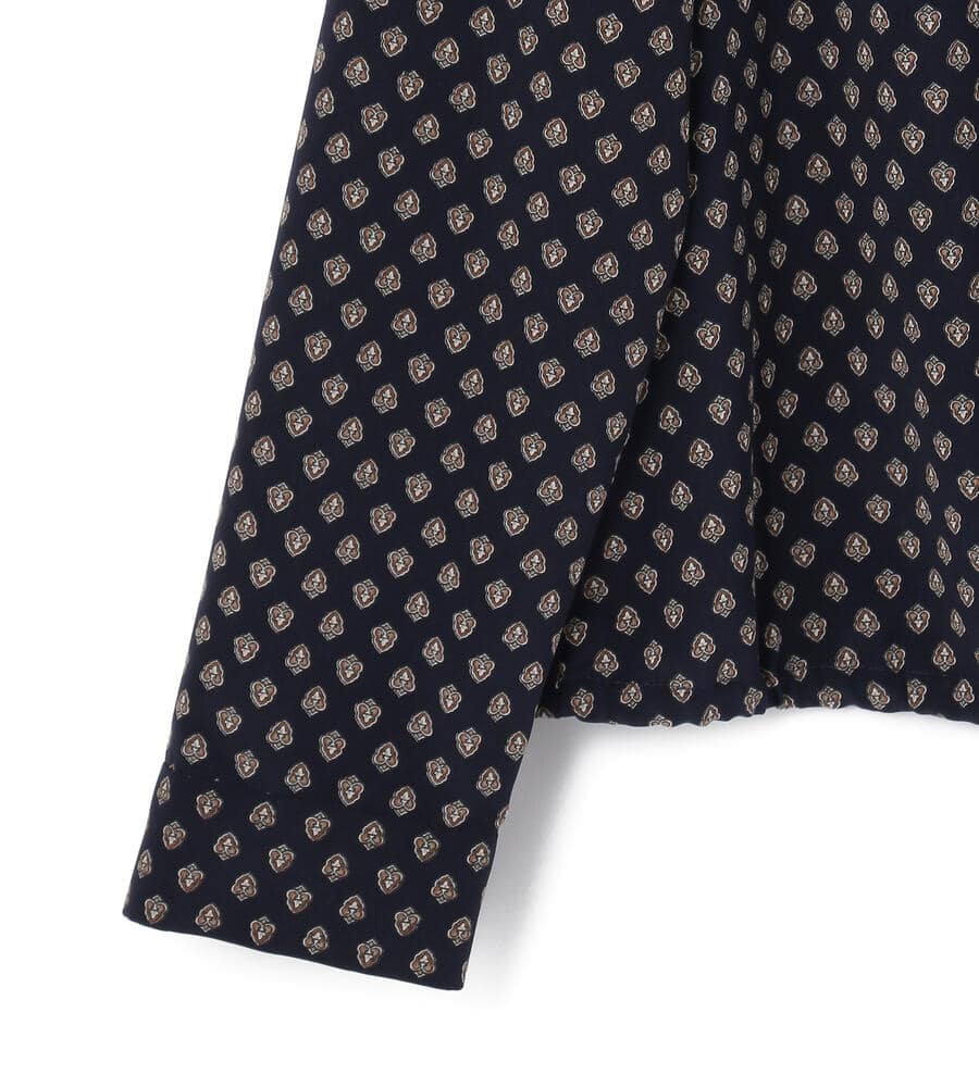 クレスト柄のプリントが、トラディッショナルな雰囲気を醸し出すロングスリーブブラウスです。裾にはドローコードをあしらっており、シルエットに変化をつけることができます。バックネックにはボタンをあしらいました。ジャケットやカーディガンを重ね着しても、プリントが上品な存在感を主張してくれます。また、しなやかなパウダータッチの風合いと優しい膨らみを持った上質なデシンは、程よいドレープ感があり美しいシルエットを表現します。
