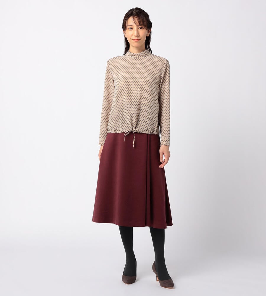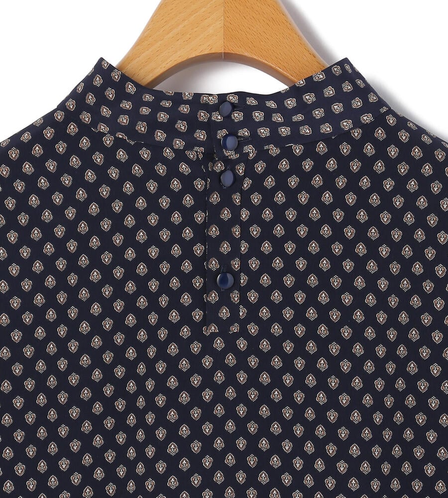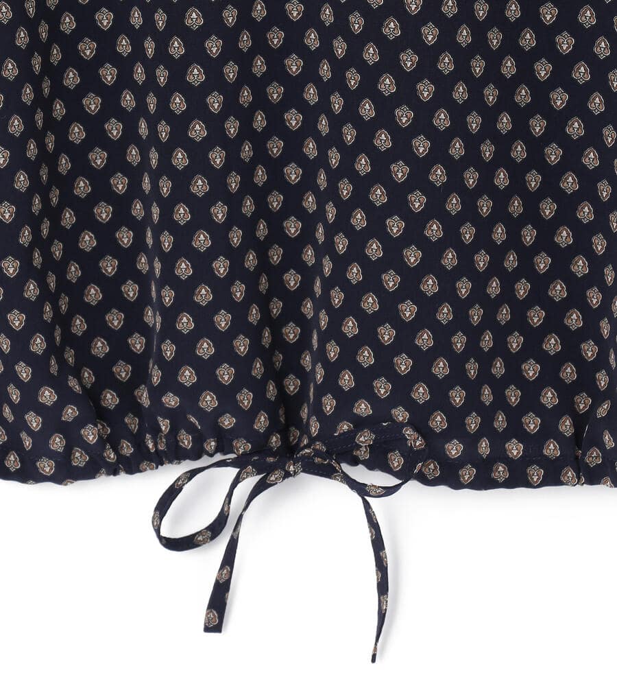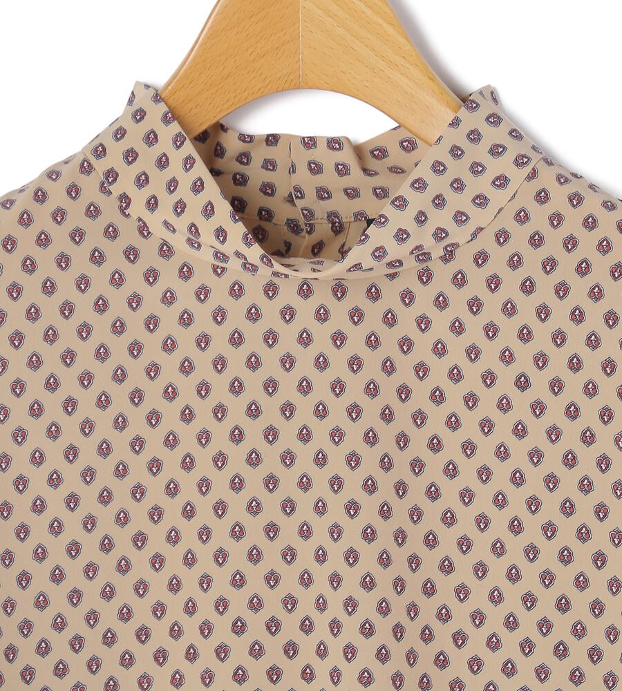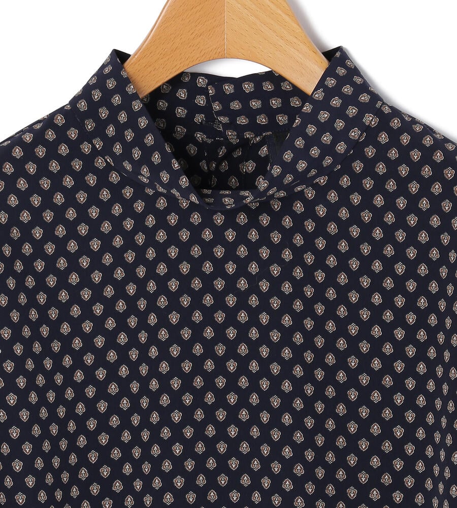 クレスト柄のプリントが、トラディッショナルな雰囲気を醸し出すロングスリーブブラウスです。裾にはドローコードをあしらっており、シルエットに変化をつけることができます。バックネックにはボタンをあしらいました。ジャケットやカーディガンを重ね着しても、プリントが上品な存在感を主張してくれます。また、しなやかなパウダータッチの風合いと優しい膨らみを持った上質なデシンは、程よいドレープ感があり美しいシルエットを表現します。