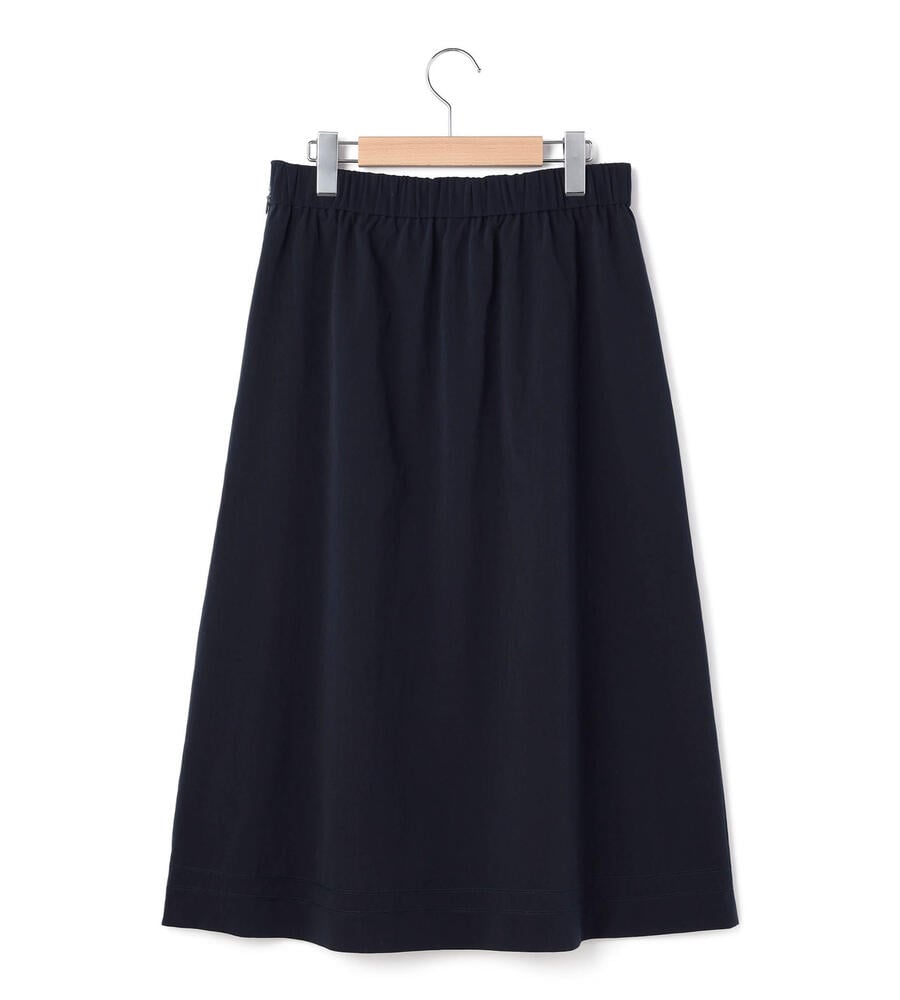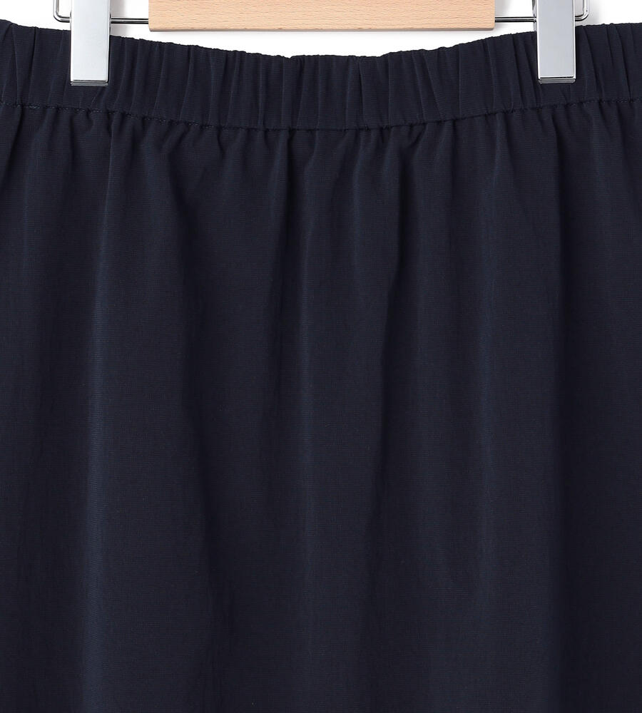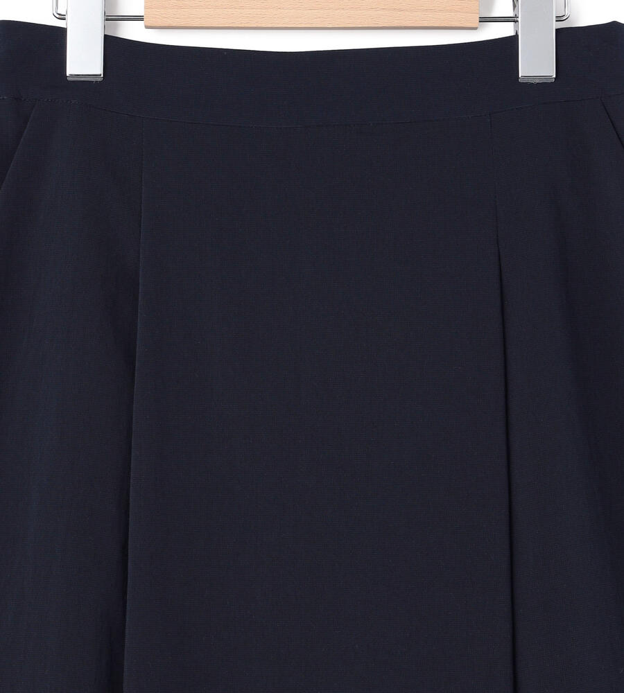 仄かな光沢と軽やかなハリを持つポリエステル素材を用いたスカート。フロントには2つのタックを施し、きちんとした印象に仕上げています。背面はゴム仕立てでドレープが揺れるデザイン。サイドから見た時のシルエットの綺麗さも格別です。膝が隠れる程度のエレガントな丈は、きれいめからカジュアルスタイルまで幅広く活躍します。