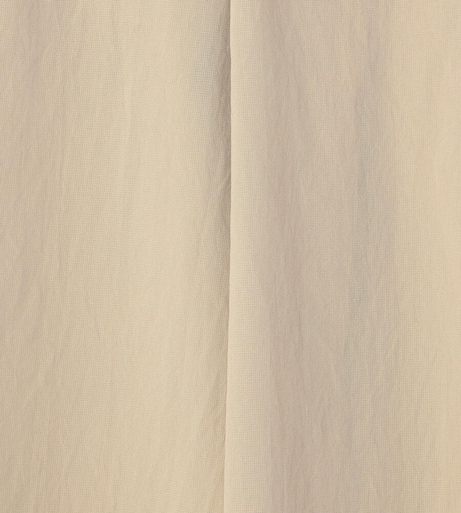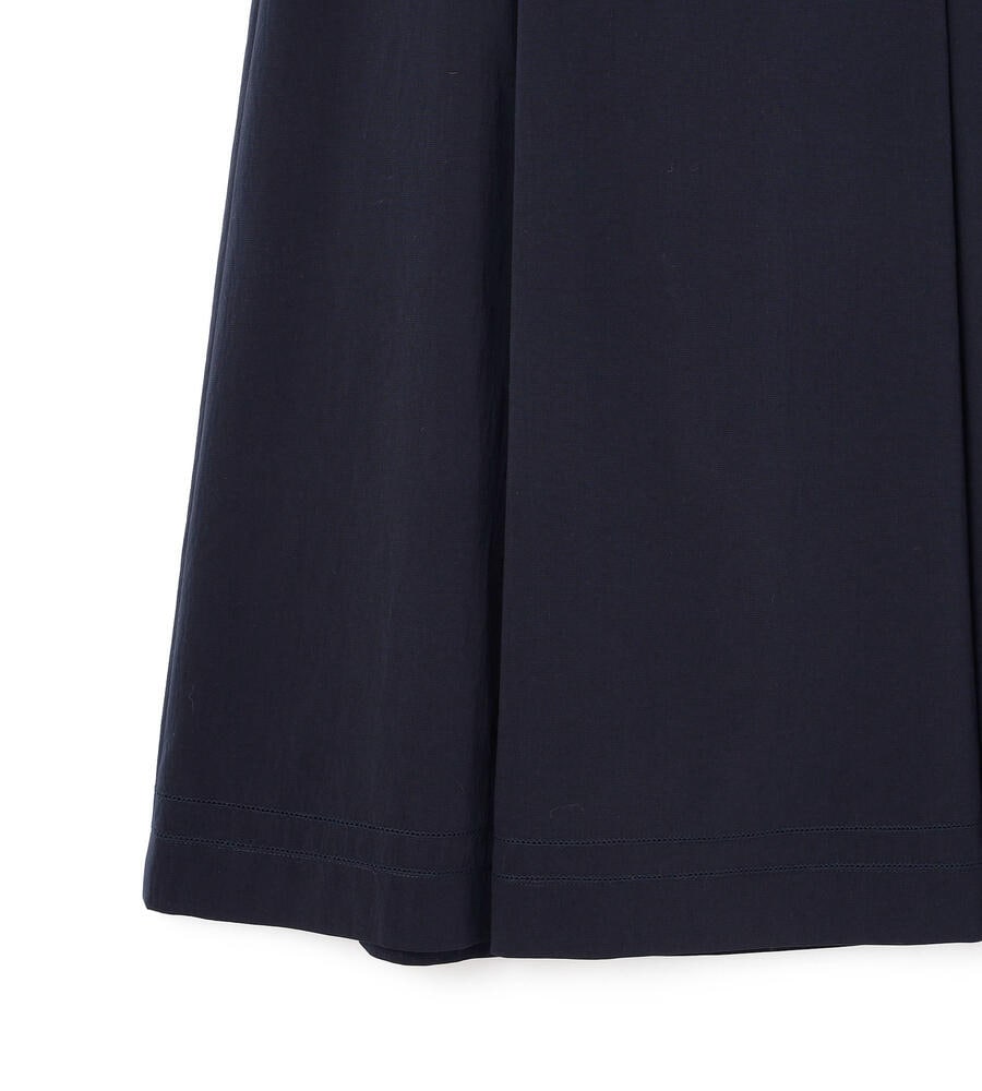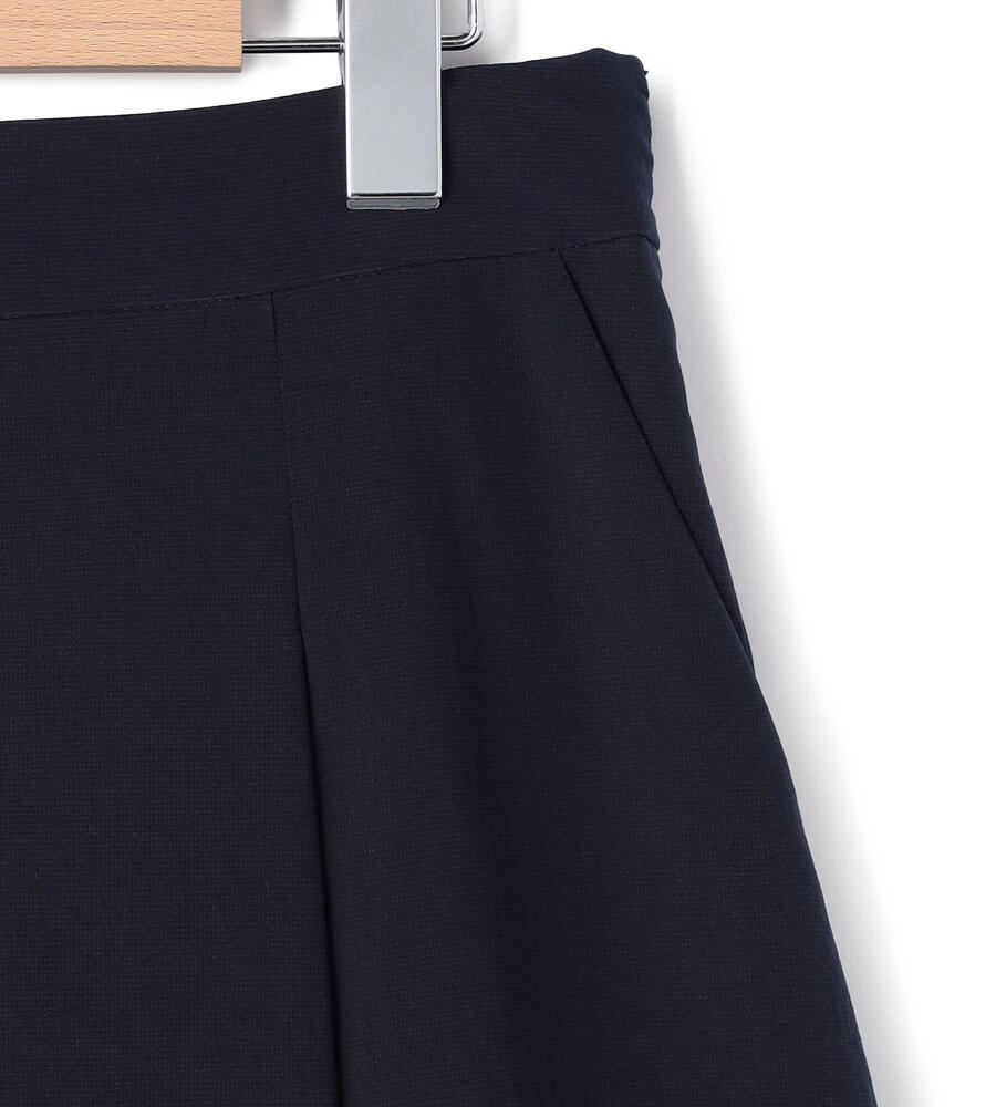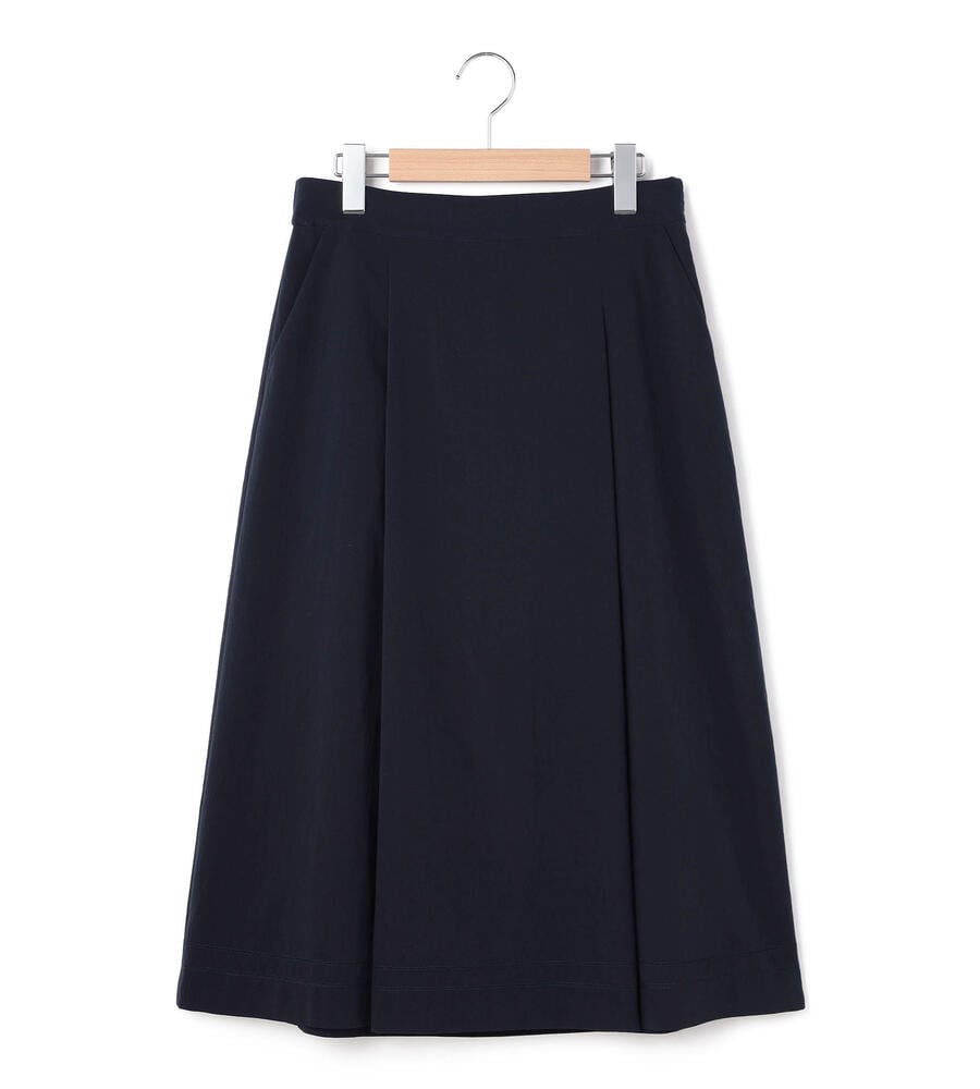 仄かな光沢と軽やかなハリを持つポリエステル素材を用いたスカート。フロントには2つのタックを施し、きちんとした印象に仕上げています。背面はゴム仕立てでドレープが揺れるデザイン。サイドから見た時のシルエットの綺麗さも格別です。膝が隠れる程度のエレガントな丈は、きれいめからカジュアルスタイルまで幅広く活躍します。