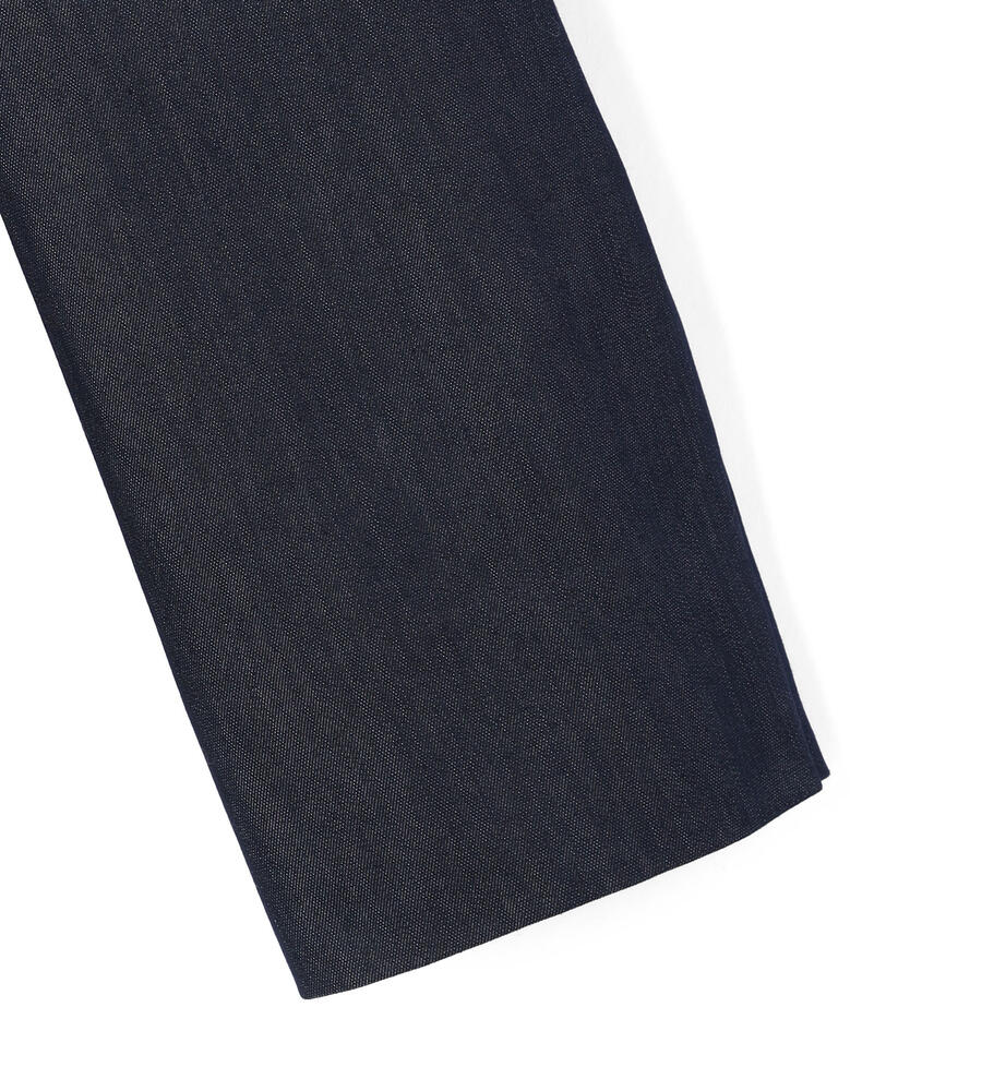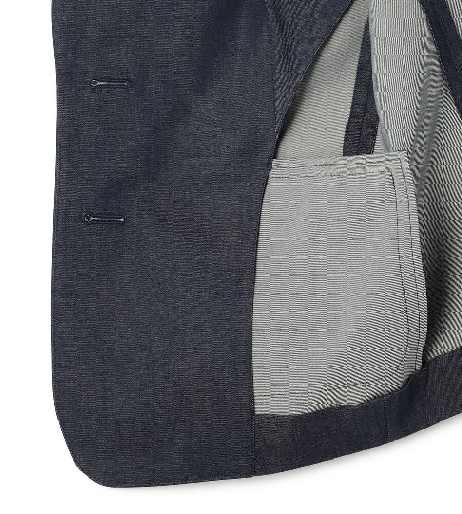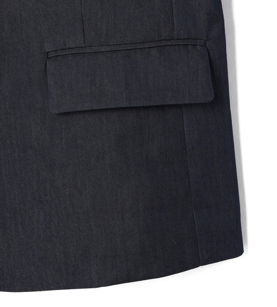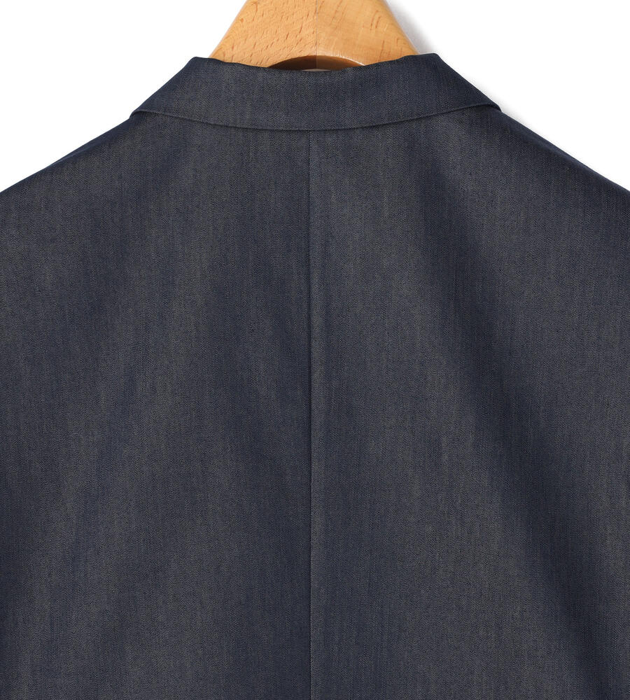すっきりとしたレングスで、女性らしく着こなせるよう仕上げたテーラードジャケット。コットンポリエステルの軽やかなデニム地を使った一重仕立てで、動きやすく快適な着心地です。フロントはエンブレム入りの金ボタンを用いることで、トラッドなエッセンスをプラスしています。オンオフ兼用でき、ワードローブに一着あると便利な羽織です。