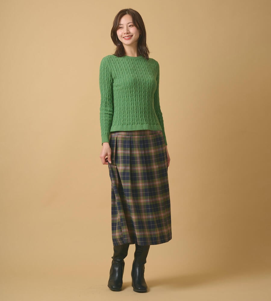 細やかなケーブル編みでエレガントな表情に仕上げたクルーネックニット。シンプルなデザインはボトムスを選ばず、秋冬スタイルのベーシックとして活躍するアイテムです。毛とナイロンのブレンド素材を採用。同シリーズのカーディガンとアンサンブルでコーディネートしていただけます。