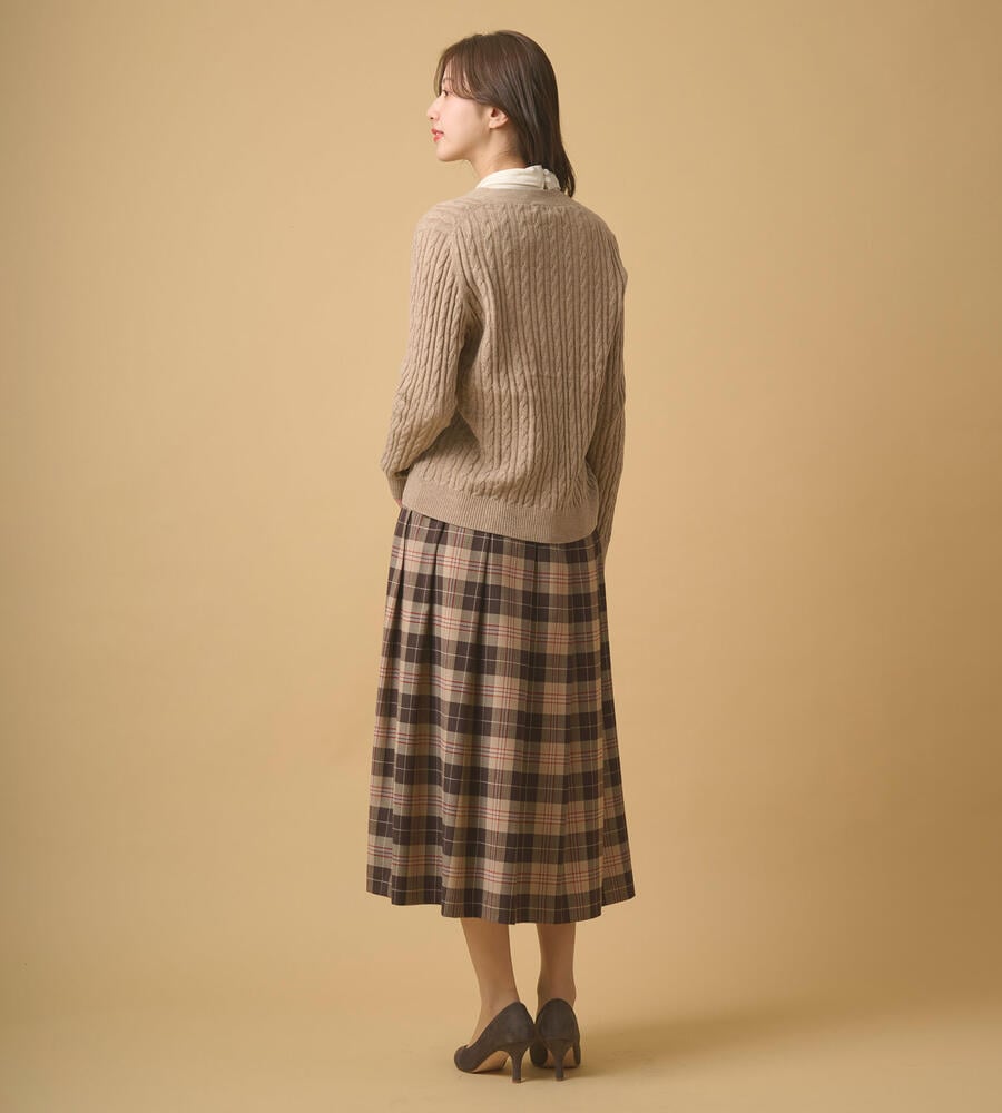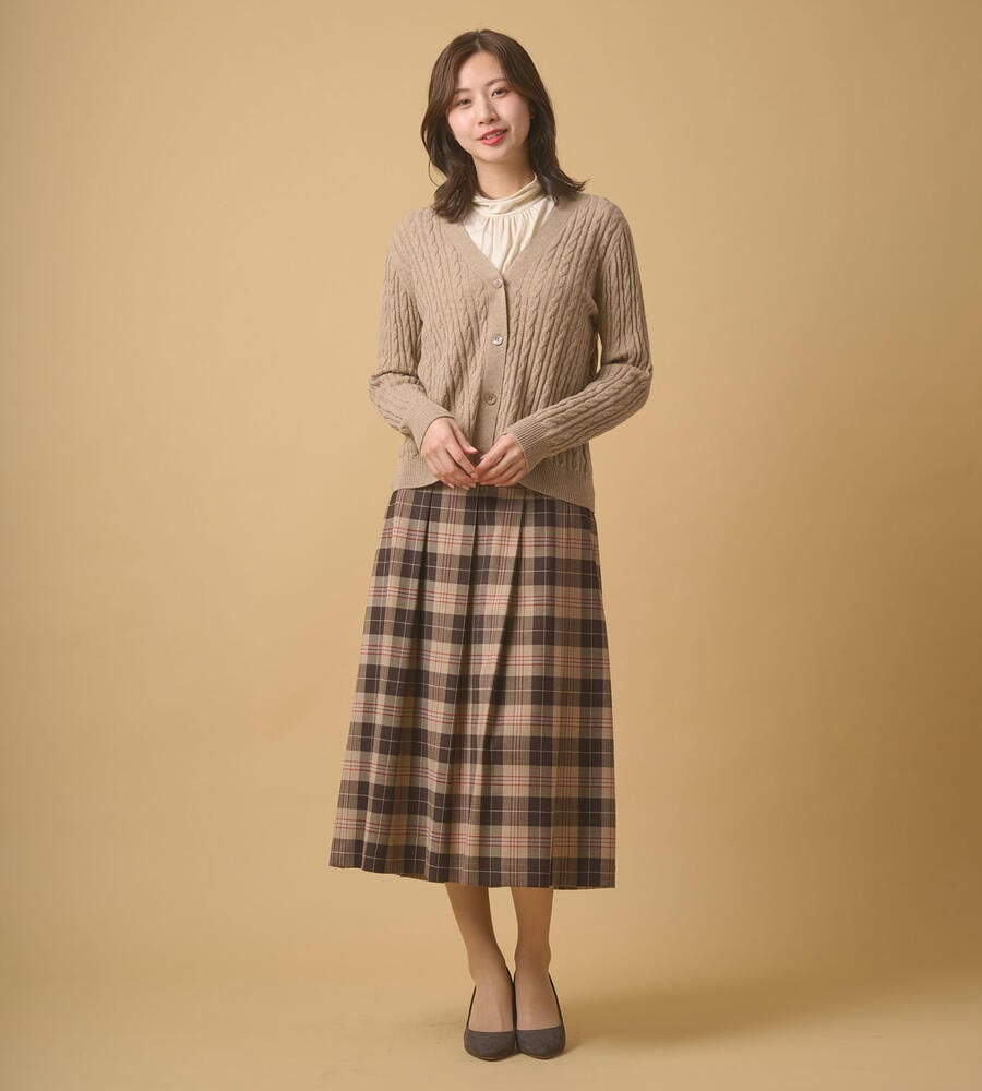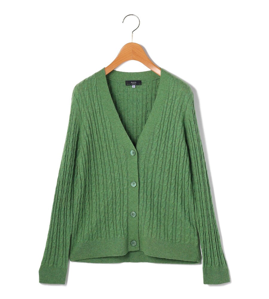 細やかなケーブル編みでエレガントな表情に仕上げたニットカーディガン。さらりと羽織れるアイテムは、季節の変わり目に備えておくと便利。毛とナイロンのブレンド素材を採用。シャツやブラウス、ハイネックトップスなど、インナーを選ばず様々なコーディネートに対応可能です。